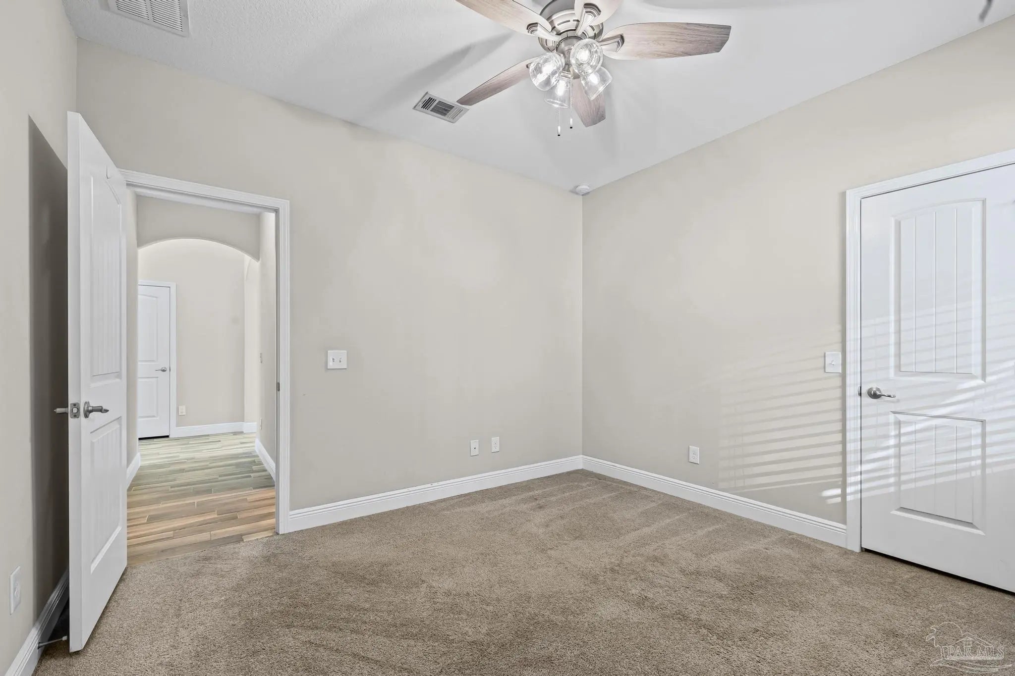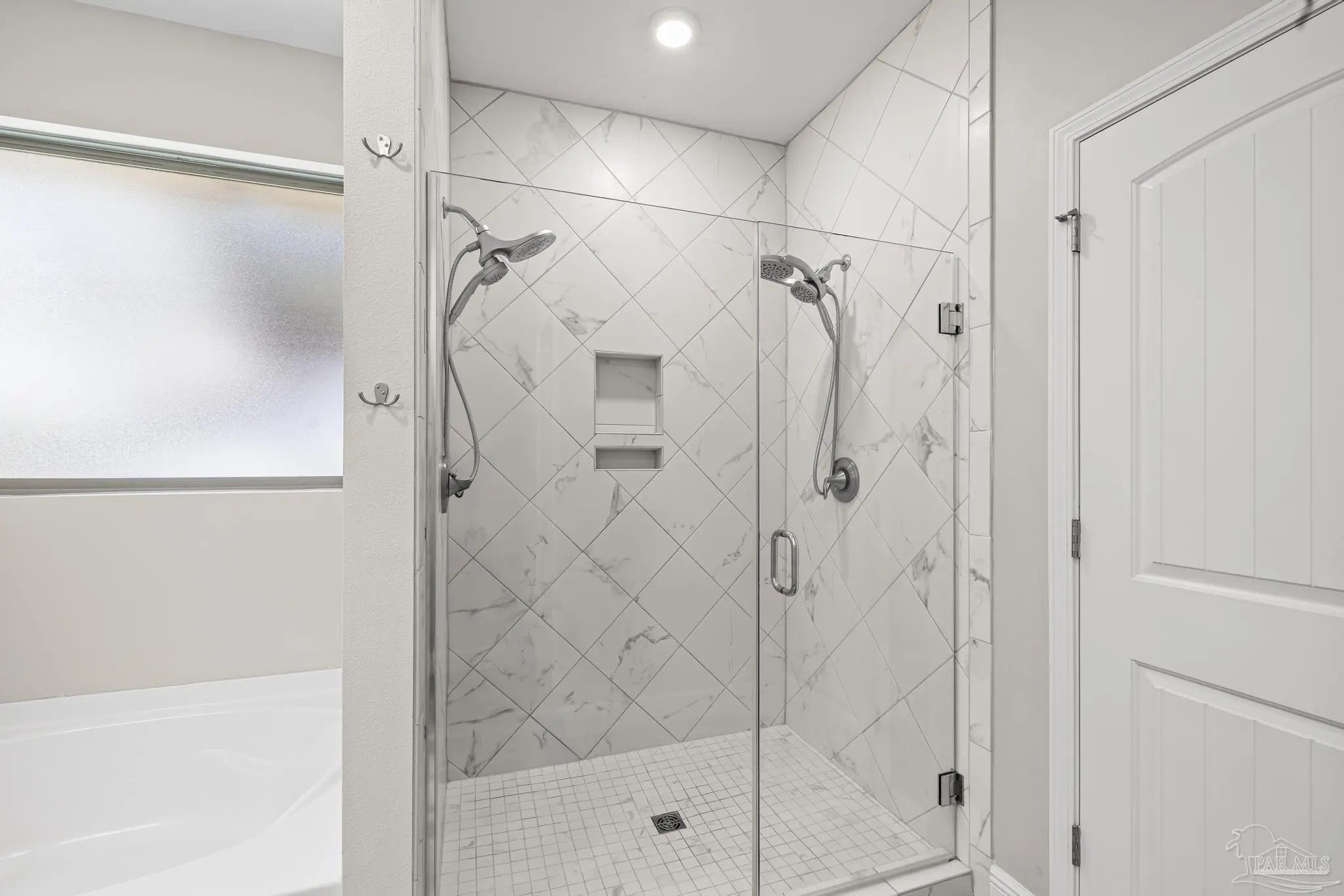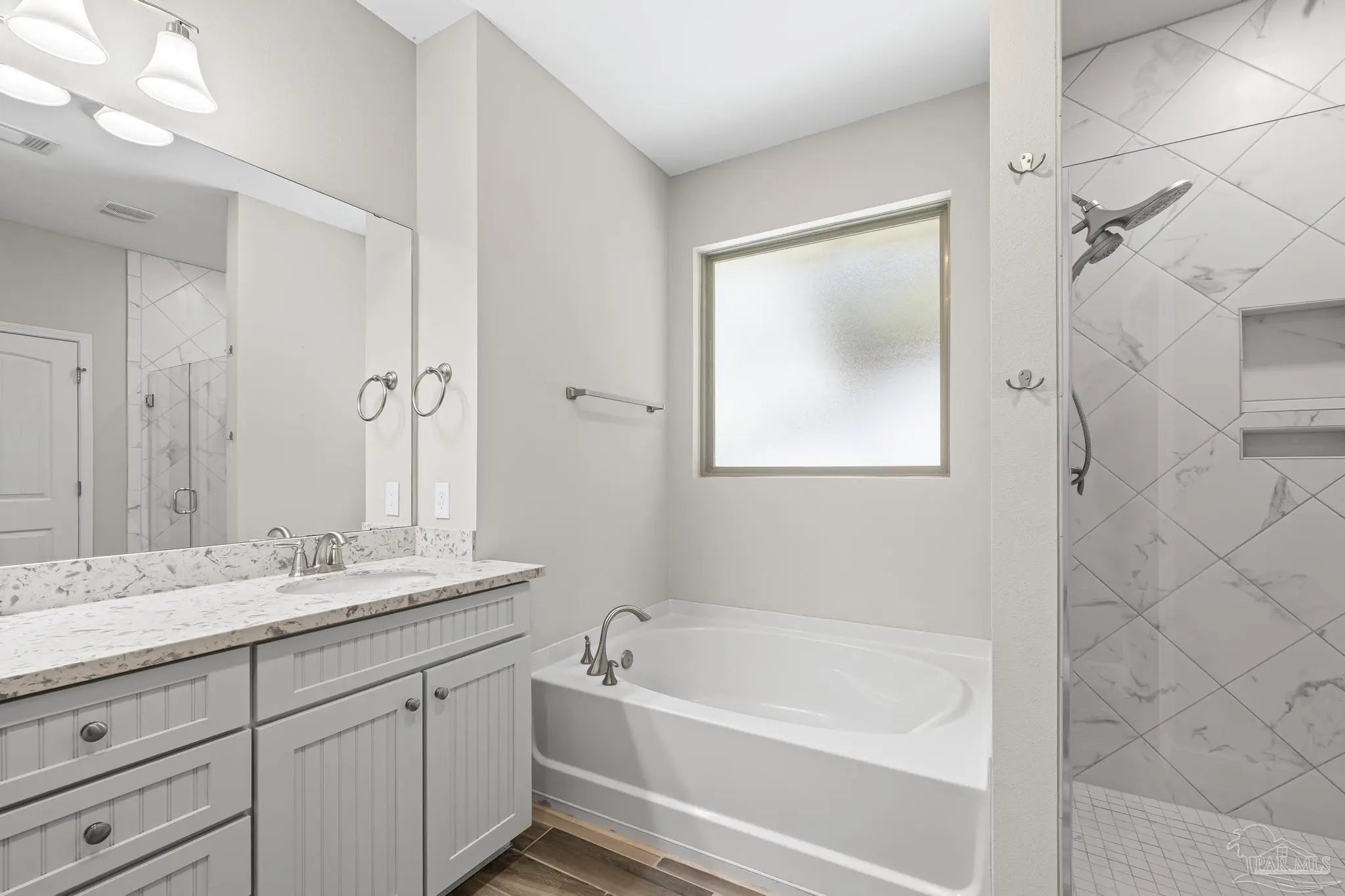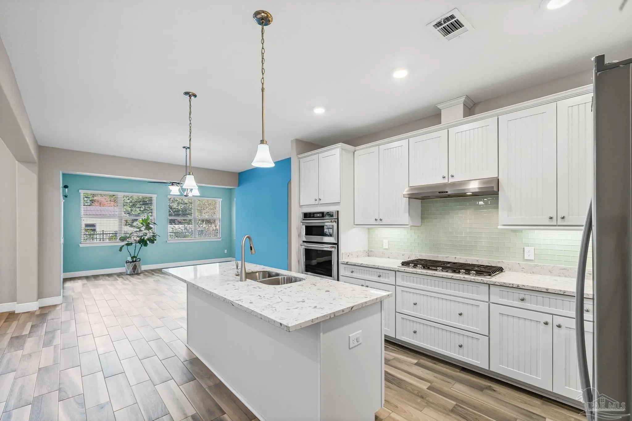 Welcome to this stunning nearly 3,000 sq. ft. all-brick home offering 4 bedrooms, 3 bathrooms, and a dedicated office that could easily serve as a fifth bedroom. Step inside to beautifully tiled floors throughout the main living areas, with plush carpet in the bedrooms for added comfort. The modern open-concept floor plan features a chef’s kitchen equipped with quartz countertops, gas cooktop, wall oven, microwave/convection oven, stainless steel appliances, and a brand-new refrigerator. An oversized island and large walk-in pantry complete this impressive space. The great room boasts elegant coffered boxed ceilings and recessed lighting, with a formal dining room just steps away—perfect for entertaining. The luxurious master suite includes a trey ceiling, a cozy sitting area, and a spa-like bath with a garden tub, tiled shower, double quartz vanity, and an oversized closet. Enjoy peace of mind with a whole-house gas generator. Outside, the two-car oversized attached garage is complemented by a detached two-car garage/workshop with electricity and its own concrete drive. Additional features include a powered shed with nearby water access and an RV pad with hookups. Your private backyard oasis awaits with an in-ground gunite pool featuring a tanning ledge, child safety fence, paver patio, gazebo, and fire pit. Situated on a corner lot over half an acre, this home offers exceptional privacy while being conveniently close to Navarre Beach. Located in the sought-after Holley by the Sea community, you'll enjoy access to resort-style amenities including multiple pools, a recreation center, tennis courts, a picnic area, and more.
