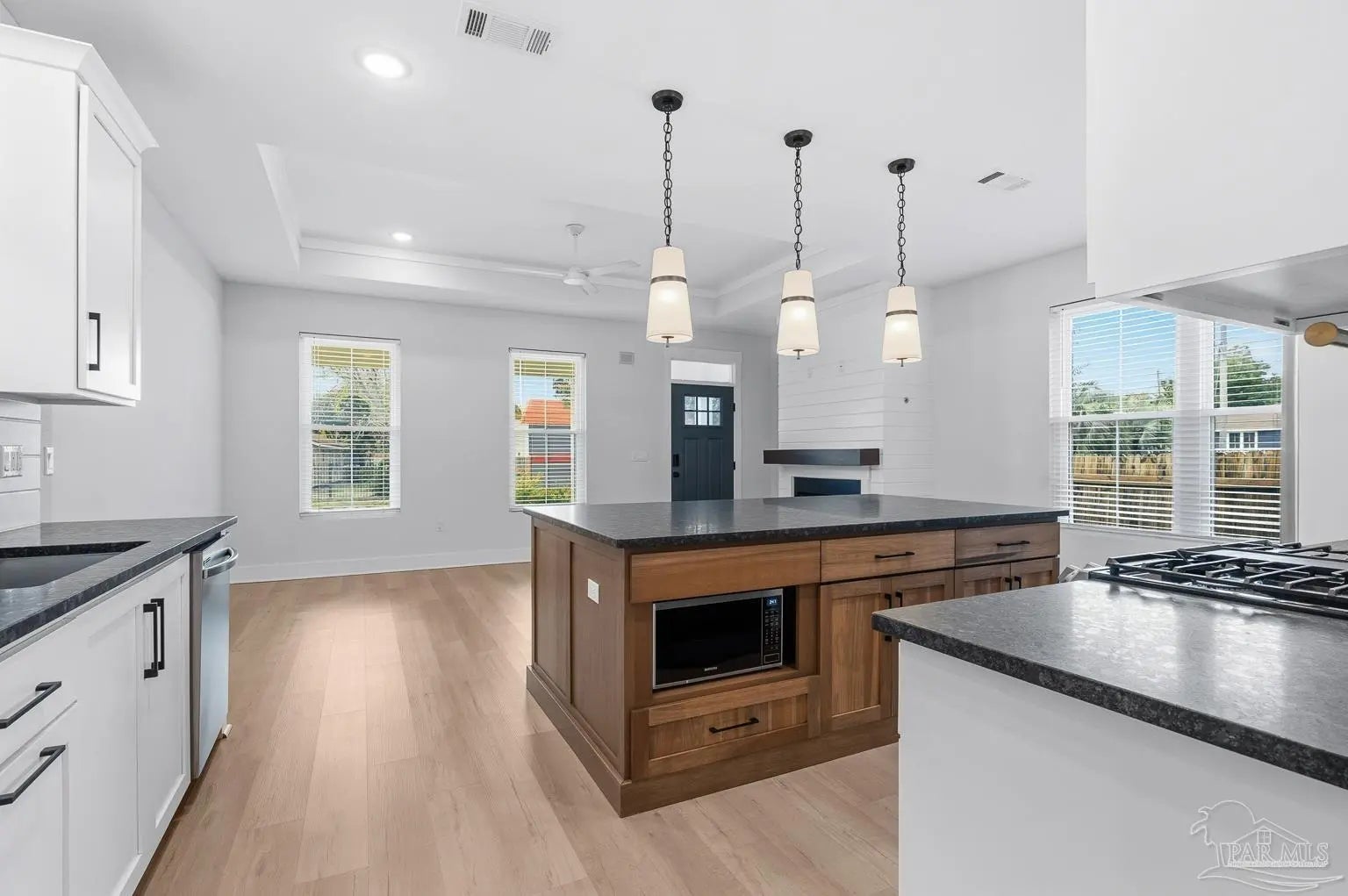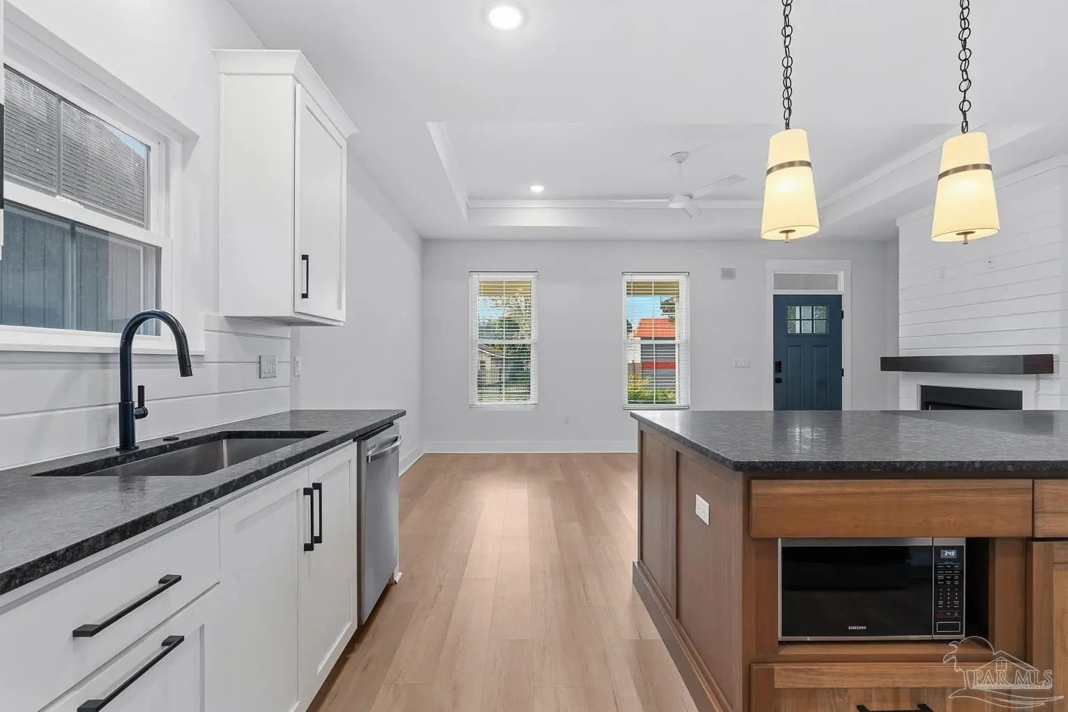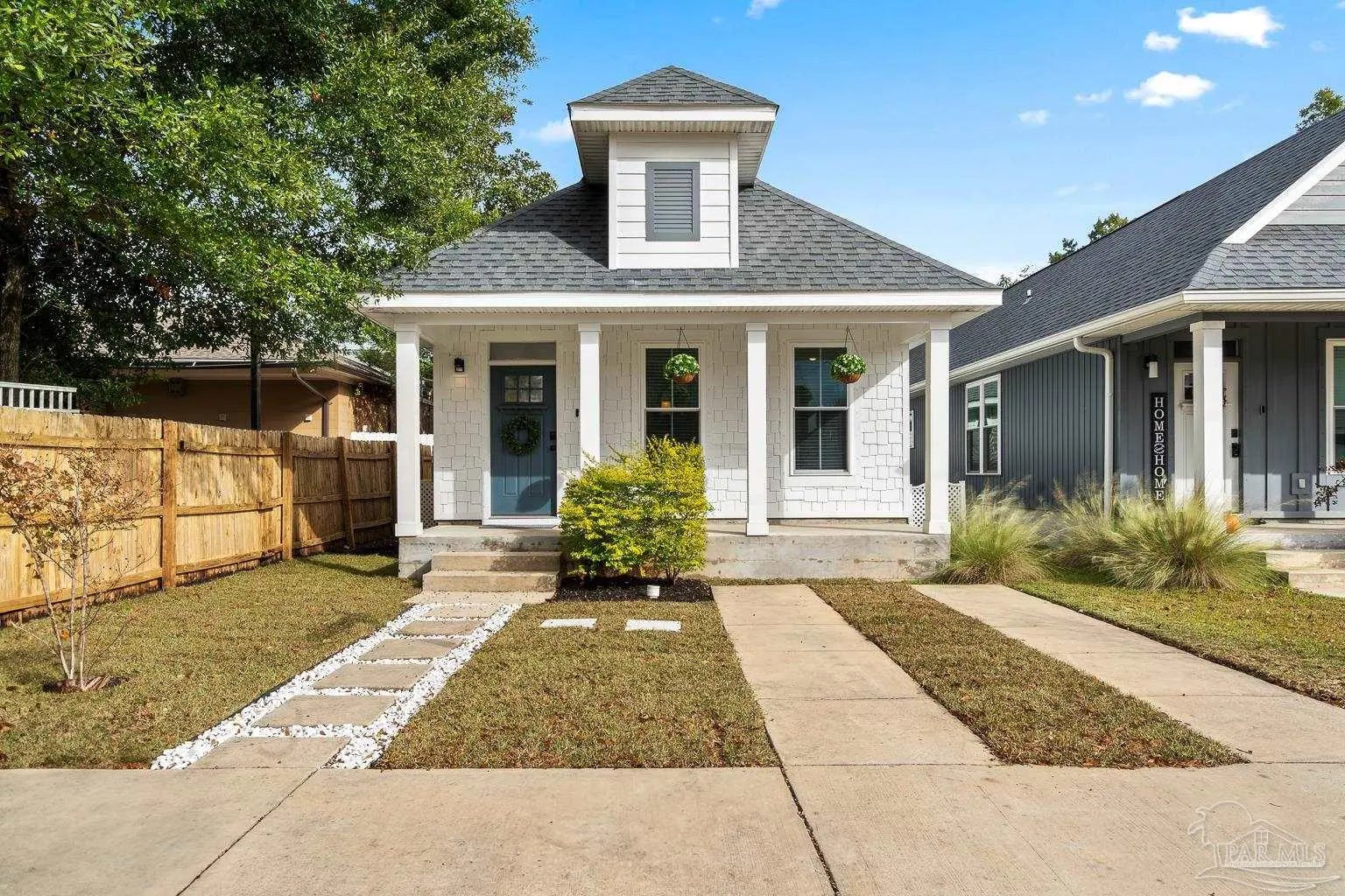 Pristine 2022 construction and priced to sell, This 3-bedroom, 2-bath shotgun-style home is perfectly tucked between North Hill and Downtown Pensacola. This versatile property is ideal as an investment opportunity, primary residence, or first-time home for those seeking easy access to everything Pensacola has to offer. Step inside to a warm and welcoming living space highlighted by a cozy fireplace—perfect for cool winter evenings. The open-concept kitchen features quartz countertops, custom cabinetry, high-end stainless steel Samsung appliances, and stylish designer lighting. Luxury plank vinyl flooring flows throughout the home, complemented by storm impact–resistant windows for peace of mind. The contemporary layout is ideal for entertaining, with thoughtfully chosen finishes that create a cohesive and modern aesthetic. Enjoy the convenience of walking or biking to some of the city’s most beloved attractions, including Blue Wahoos Stadium, Ever’man Cooperative, the Seville Historic District, and the vibrant nightlife of downtown. Plus, you’re just minutes from the sugar-white sands of Pensacola Beach. The living space opens to an inviting lanai and a covered patio overlooking a privacy-fenced backyard—perfect for gatherings, grilling, or simply relaxing outdoors. With exceptional craftsmanship and attention to detail throughout, this immaculate home truly must be seen to be appreciated. Schedule your showing today.