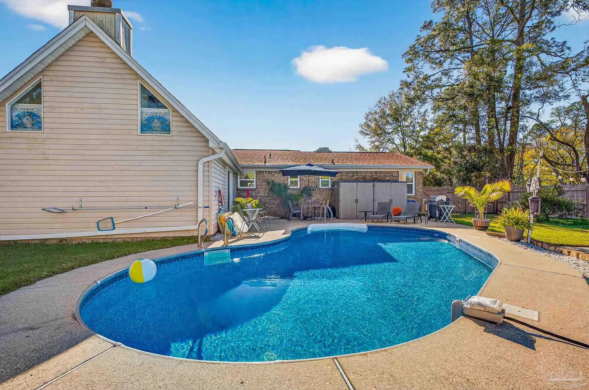 Beautiful fully remodeled home featuring an open floor plan, updated kitchen with granite countertops and stainless-steel appliances, spacious living areas, and a unique loft overlooking the main living room. The private backyard is a true oasis with a sparkling in-ground pool, mature palms, and multiple lounging areas—perfect for outdoor entertaining. This property is currently operated as a high-traffic Airbnb and has performed exceptionally well due to its modern updates, large layout, and resort-style pool area. Ideal for buyers seeking a turnkey residence or investment opportunity. Conveniently located just minutes to NAS Pensacola, Perdido Key beaches, Big Lagoon State Park, Downtown Pensacola, and nearby shops and dining. Move-in ready and beautifully maintained—this home offers comfort, style, and excellent potential.