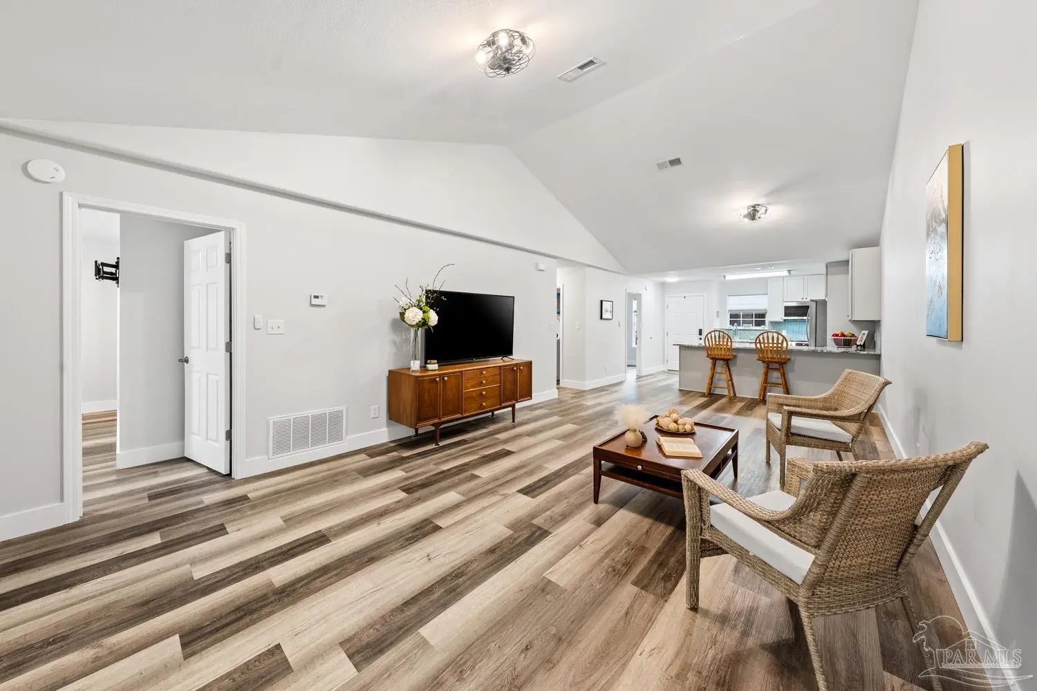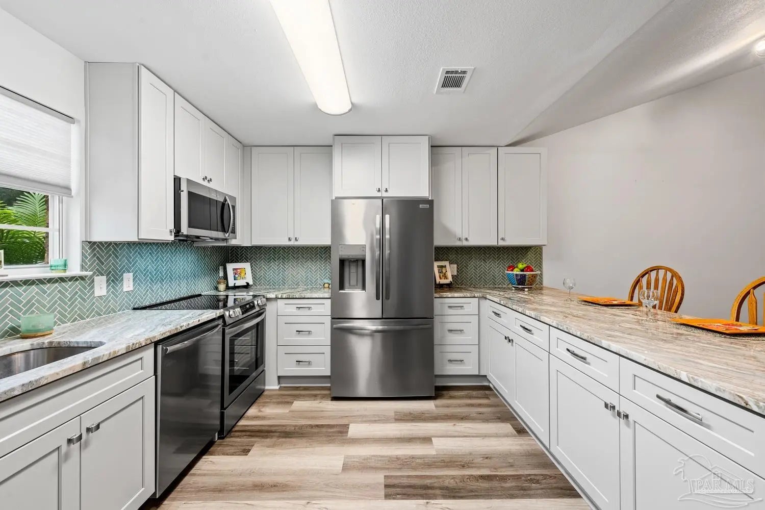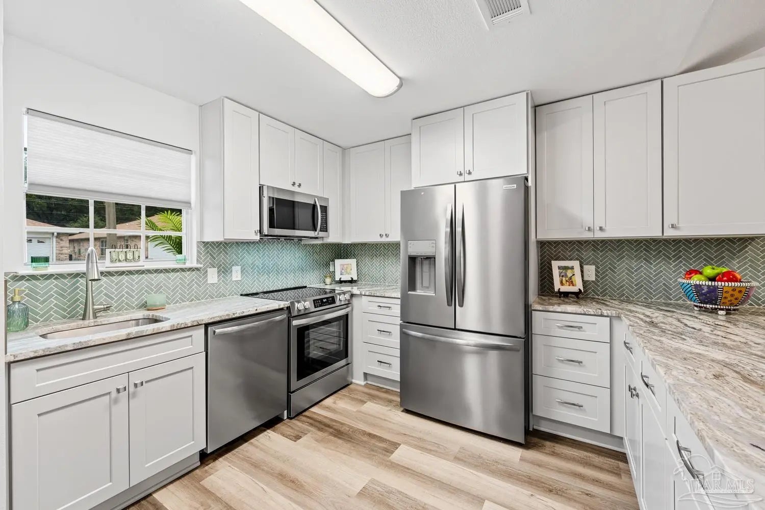 Completely renovated interior—this one delivers the “new home” feel without the new construction price tag. Step inside and experience a stunning open-concept design anchored by soaring cathedral ceilings and a showpiece kitchen that truly commands attention. Brand-new cabinetry, granite countertops, designer tile backsplash, updated lighting, and stainless-steel appliances create a space that feels current, polished, and ready for entertaining. With approximately 1,400 square feet of thoughtfully designed living space, the split-bedroom layout offers privacy for everyone. Three separate bedroom zones, two fully renovated baths featuring new tubs with tiled surrounds, and durable laminated plank flooring throughout mean style meets practicality—no carpet anywhere. Every detail has been addressed in 2024 -2025: • All-new interior finishes • Tankless water heater • Cabinets, countertops, backsplash & fixtures • Updated lighting & stainless appliances • Added concrete driveway and back patio Outside, enjoy the simplicity of an all-brick exterior with vinyl soffit and trim for long-term durability. HOA dues cover front lawn maintenance, edging, and irrigation—making everyday living effortless. The dimensional roof was replaced in 2018, adding additional peace of mind. HVAC 2020. Located minutes from Interstate 10 and Naval Air Station Whiting Field, with convenient access to shopping, dining, and everyday essentials, this property offers both lifestyle and location. If you’ve been waiting for a move-in-ready home that feels fresh, modern, and low-maintenance—this is it. Schedule your private showing today before someone else claims it.