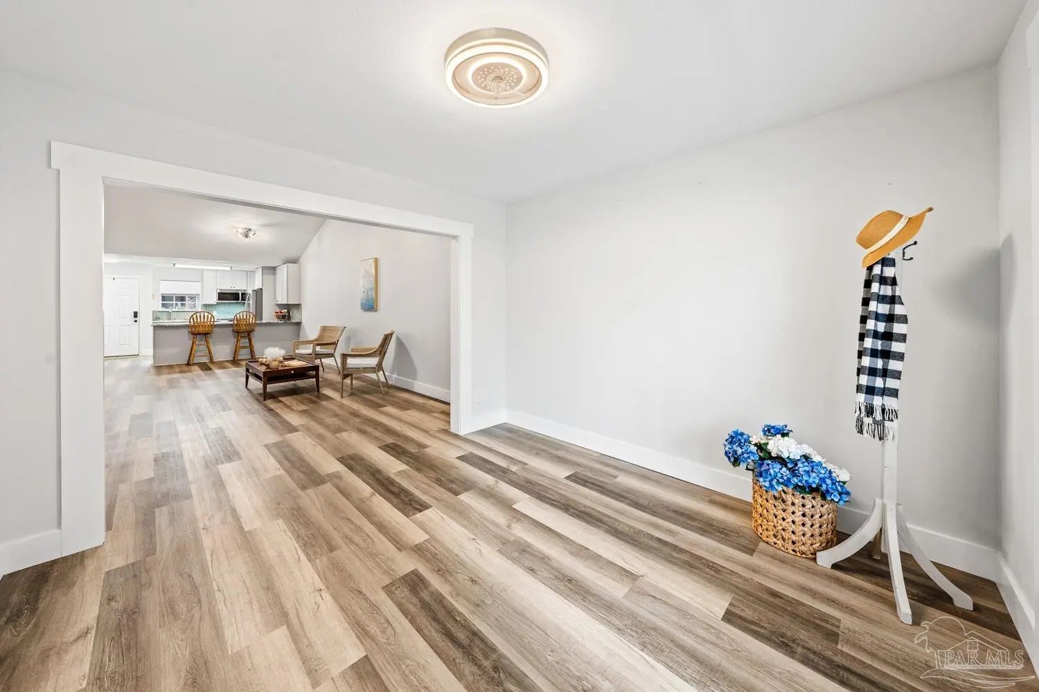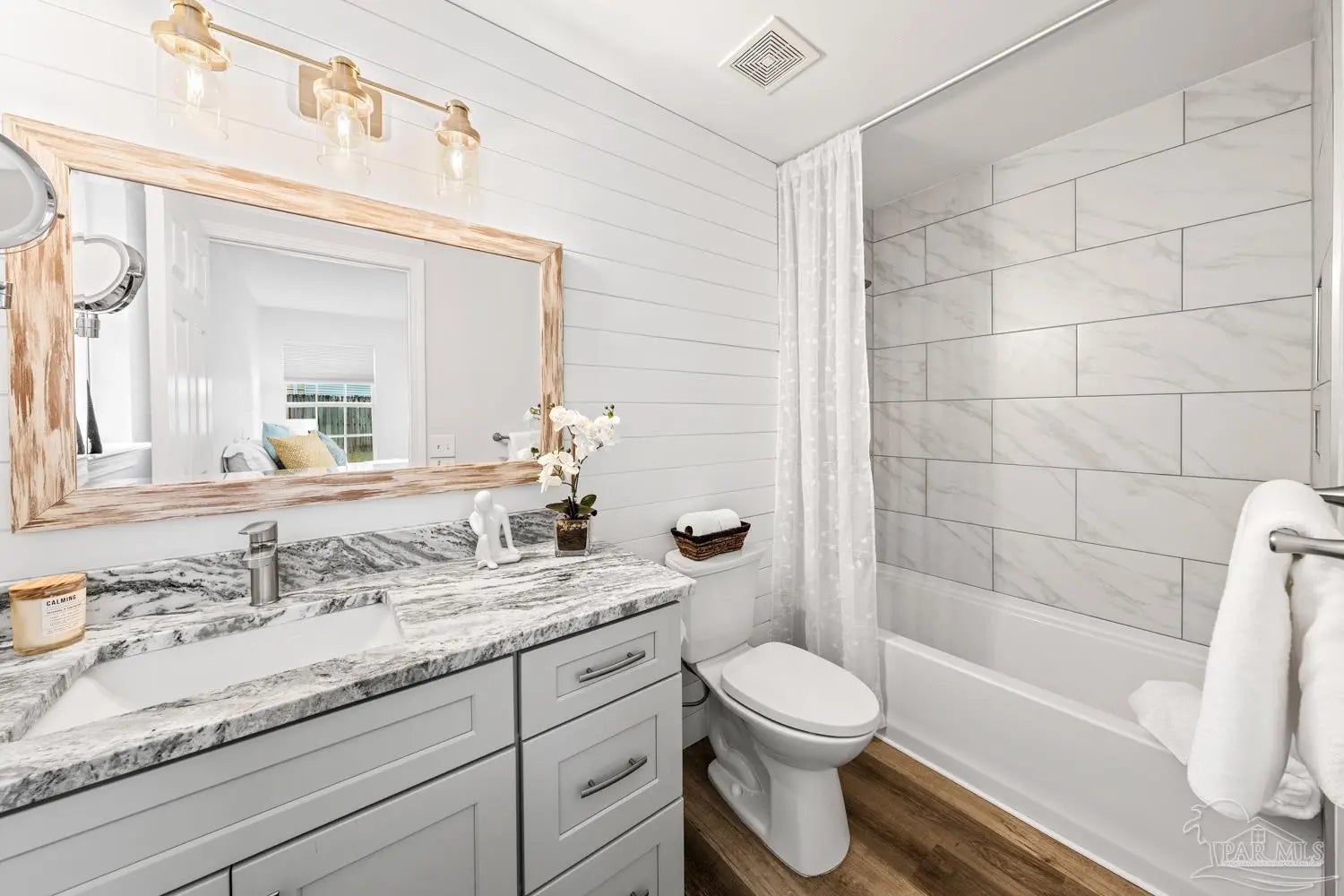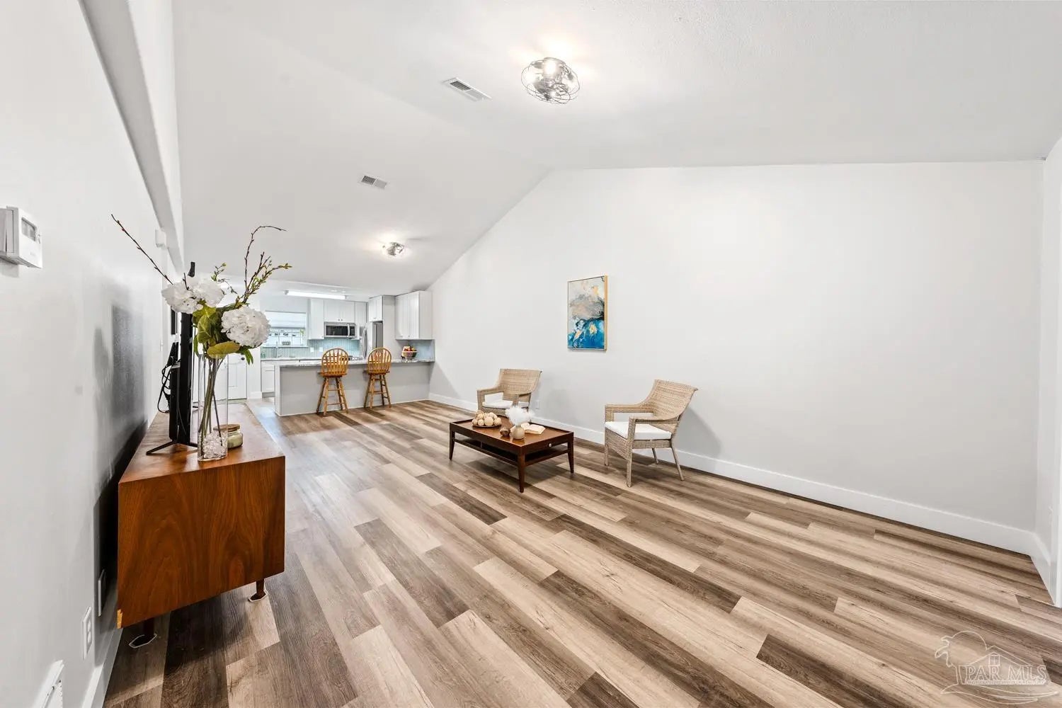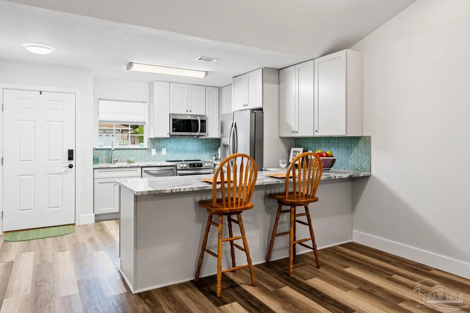 Completely renovated interior—this one delivers the “new home” feel without the new construction price tag. Step inside and experience a stunning open-concept design anchored by soaring cathedral ceilings and a showpiece kitchen that truly commands attention. Brand-new cabinetry, granite countertops, designer tile backsplash, updated lighting, and stainless-steel appliances create a space that feels current, polished, and ready for entertaining. With approximately 1,400 square feet of thoughtfully designed living space, the split-bedroom layout offers privacy for everyone. Three separate bedroom zones, two fully renovated baths featuring new tubs with tiled surrounds, and durable laminated plank flooring throughout mean style meets practicality—no carpet anywhere. Every detail has been addressed in 2024 -2025: • All-new interior finishes • Tankless water heater • Cabinets, countertops, backsplash & fixtures • Updated lighting & stainless appliances • Added concrete driveway and back patio Outside, enjoy the simplicity of an all-brick exterior with vinyl soffit and trim for long-term durability. HOA dues cover front lawn maintenance, edging, and irrigation—making everyday living effortless. The dimensional roof was replaced in 2018, adding additional peace of mind. HVAC 2020. Located minutes from Interstate 10 and Naval Air Station Whiting Field, with convenient access to shopping, dining, and everyday essentials, this property offers both lifestyle and location. If you’ve been waiting for a move-in-ready home that feels fresh, modern, and low-maintenance—this is it. Schedule your private showing today before someone else claims it.