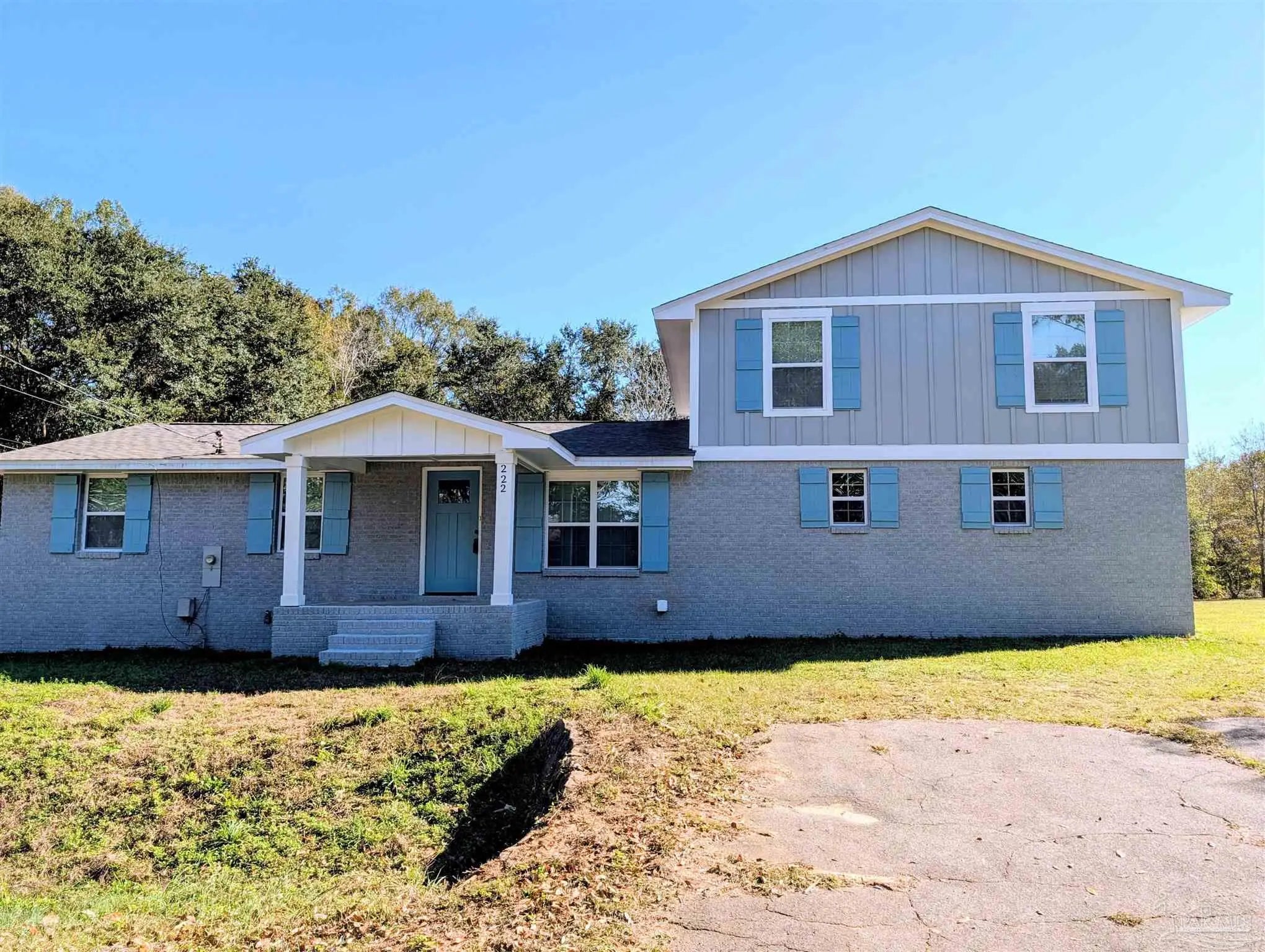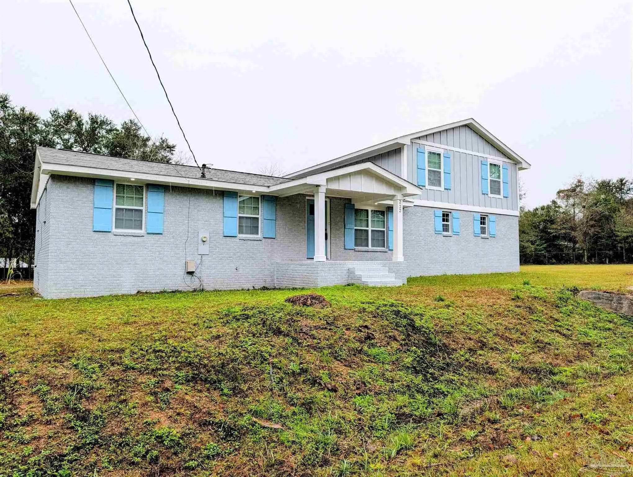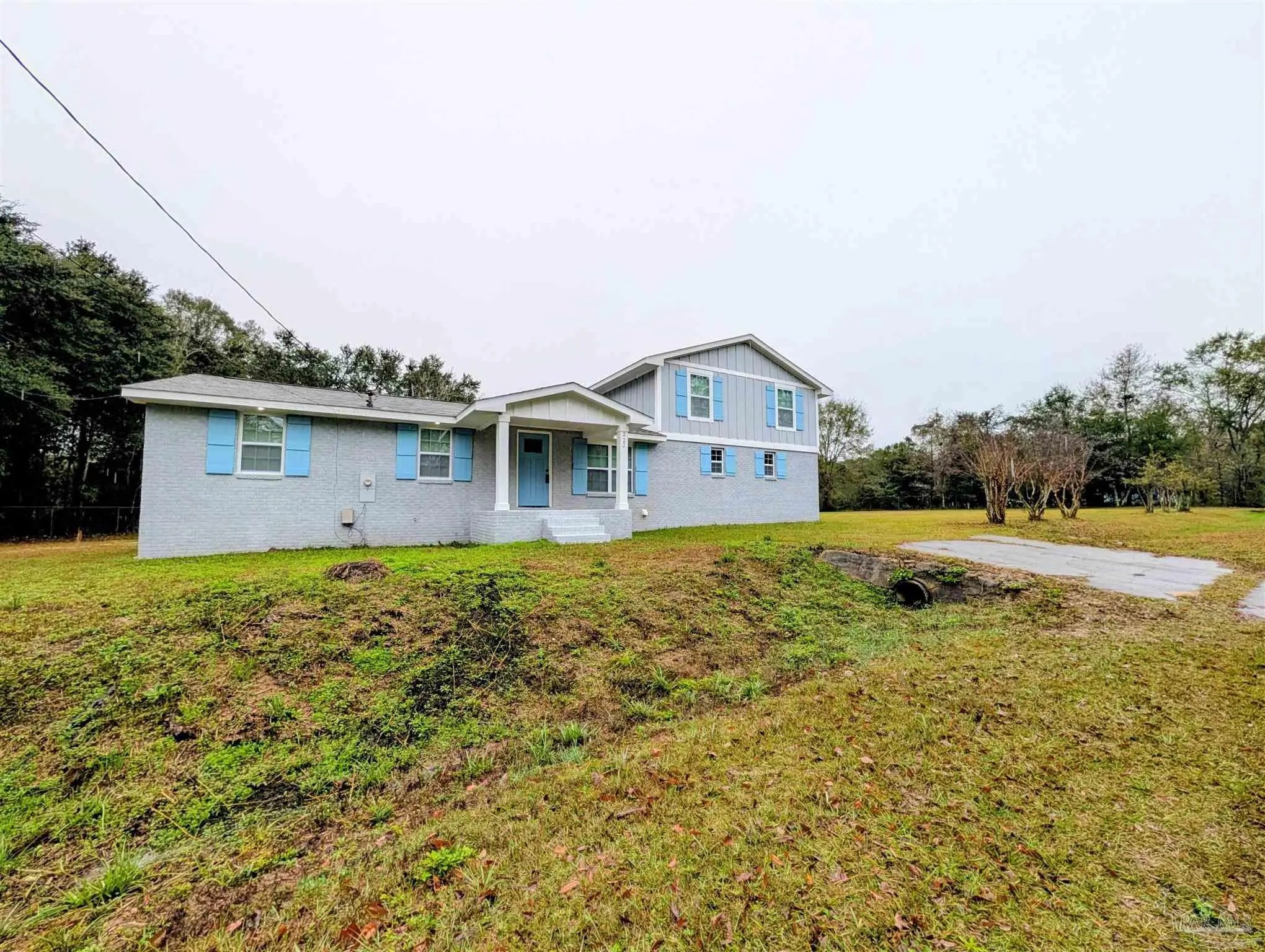COMPLETELY remodeled - just finished Nov 2025. Brand new everything inside the home: kitchen, bathrooms, bedrooms. A complete overhaul. Brand new roof on the outside as well with fresh coat of paint on the brick and redone wood on second floor portion. Kitchen absolutely elevated with new everything from the floor to the ceiling. Brightly lit with all new LED lighting through the home. Appliances are top notch including an Induction stove top with oven. ALL brand-new impact resistant windows (all included with new blinds) with the kitchen window overlooking the sizeable property/yard as you wash dished in the farmhouse type black ceramic sink. Living/Dining Room combo area as you come through front door greets you with a chic electric fireplace. Bathrooms all remodeled. Master bathroom with approx 4x6 tiled shower. Same for the other two bathrooms with one having a tub/shower combination. All of them with all new lighting, tile, quality vanity, light fixtures. New contemporary doors all around and fixtures as well as vent registers and smooth finish ceilings. New LVT floors throughout, except the bathrooms (elegant tiles), framed by the modern 5" baseboards. Garage is super long and is a step down from the kitchen - new garage door opener, water heater and washer and dryer. Floor is treated and painted flakes for easy cleaning and grip. Outside enjoy the blank canvas where you can do what you like with 1.3 acres that has been cleared and relatively flat. Or enjoy from the covered back area with 6 LED recessed lights for major lighting. If you want a piece of land and a move-in ready home, this is it! Don't hesitate - come and check it out and be impressed with the transformation.