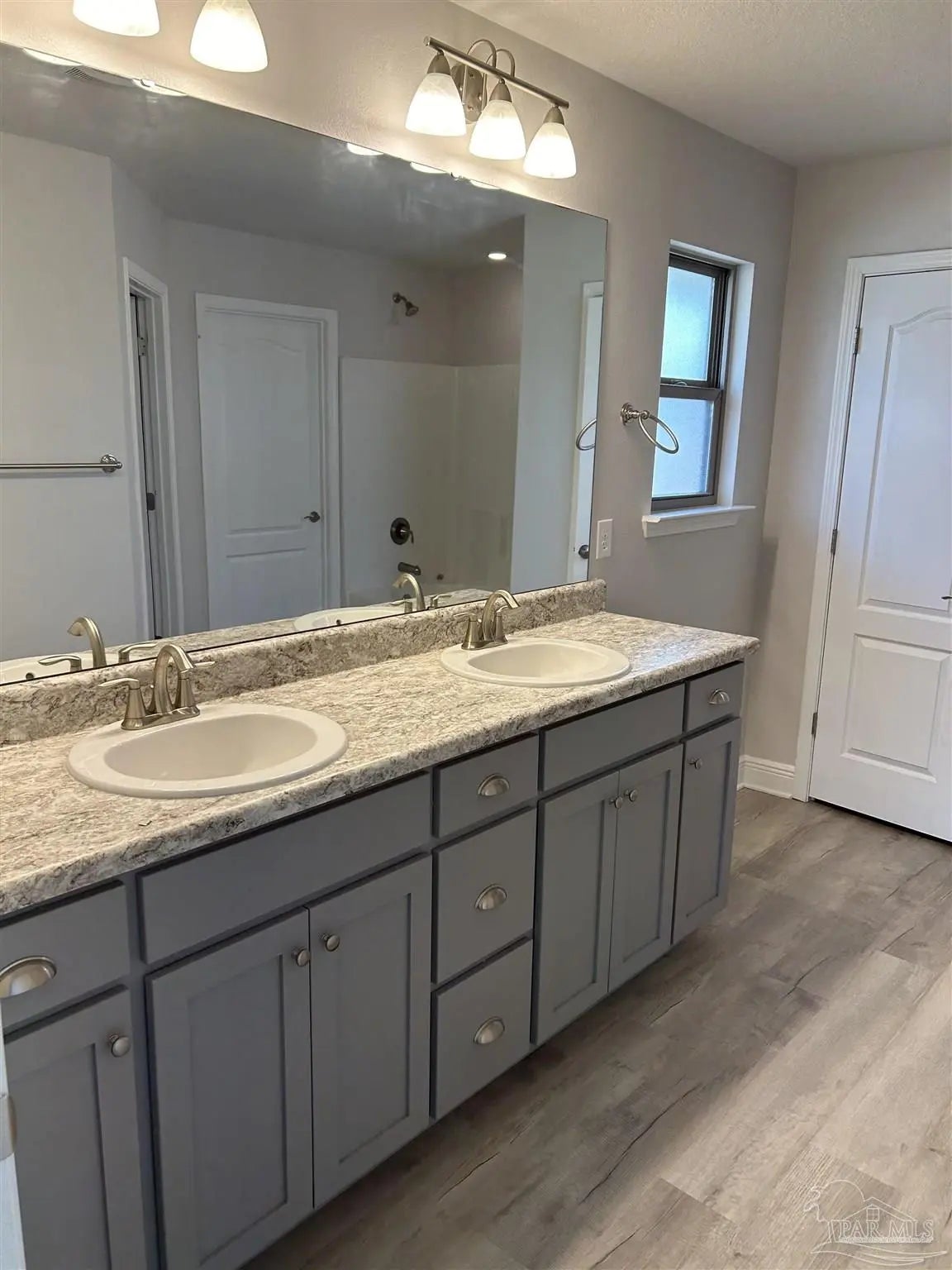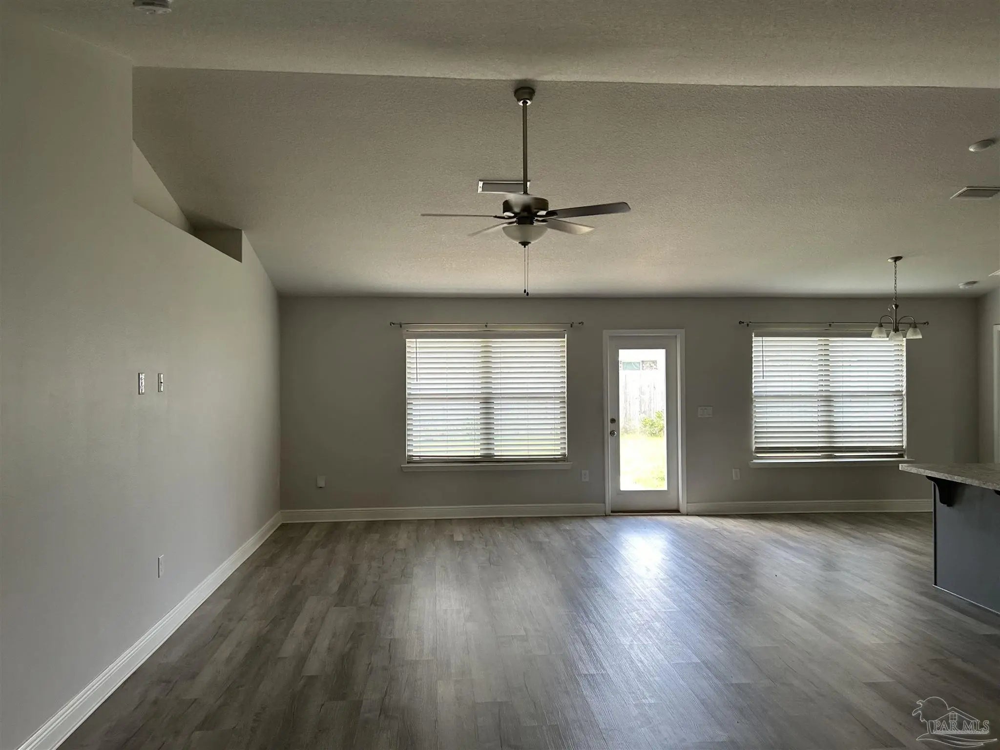 Easy access to interstate, bases & shopping! Open floor plan. Wood-look vinyl plank flooring in main living areas with carpet in bedrooms. Great room with cathedral ceiling, ceiling fan & plant ledge. Breakfast nook off kitchen plus formal dining room. Fully equipped kitchen with large island & pantry. Split master suite with ceiling fan, double vanity, garden tub & walk-in closet. Two guest bedrooms share a Jack-n-Jill bath. Ceiling fans in all bedrooms. Inside laundry. Privacy fenced backyard with large open patio. Sprinkler system. Small dogs considered with owner approval