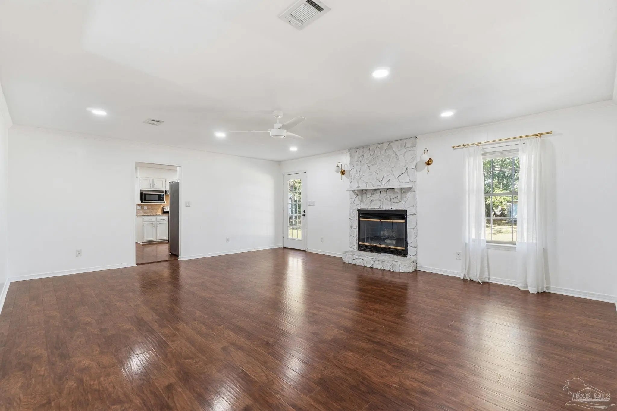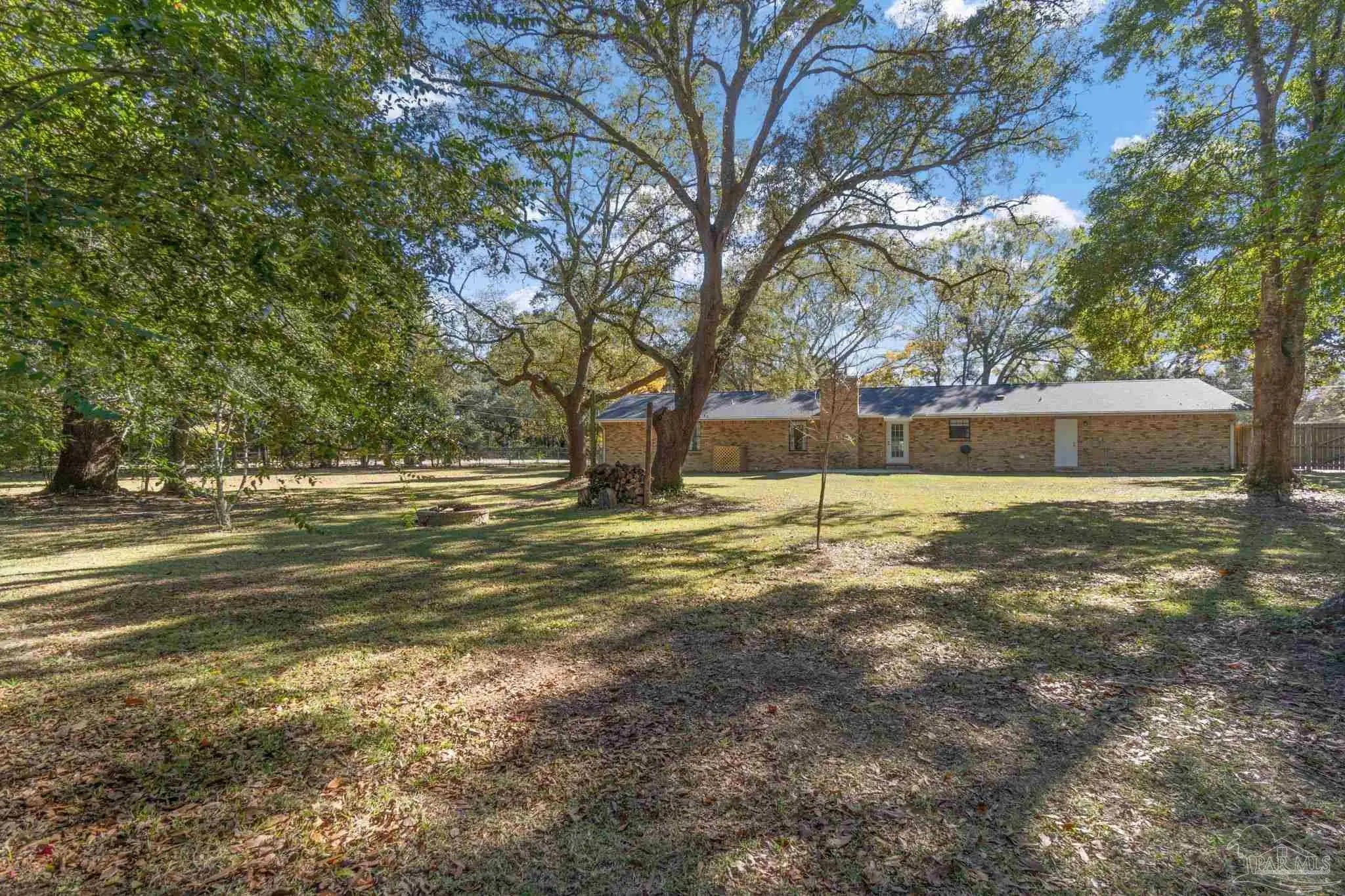 Welcome to this beautiful, well-maintained 4-bedroom, 2.5-bath ranch-style home, perfectly situated on a spacious, ONE ACRE corner lot. As you drive up to the oversized garage, you'll notice the brand new hurricane-rated garage doors. Inside, the well-appointed kitchen has been updated with granite countertops, a backsplash, and stainless steel appliances, and connects to a formal dining room. The spacious living room features a beautiful fireplace and plenty of natural light. The primary bedroom includes a walk-in closet and private bath, featuring a double vanity with quartz countertops. Step outside to enjoy the expansive yard—nearly an acre of room to garden, play, or simply unwind. Well maintained and move-in ready, this home delivers the perfect blend of comfort, space, and convenience.