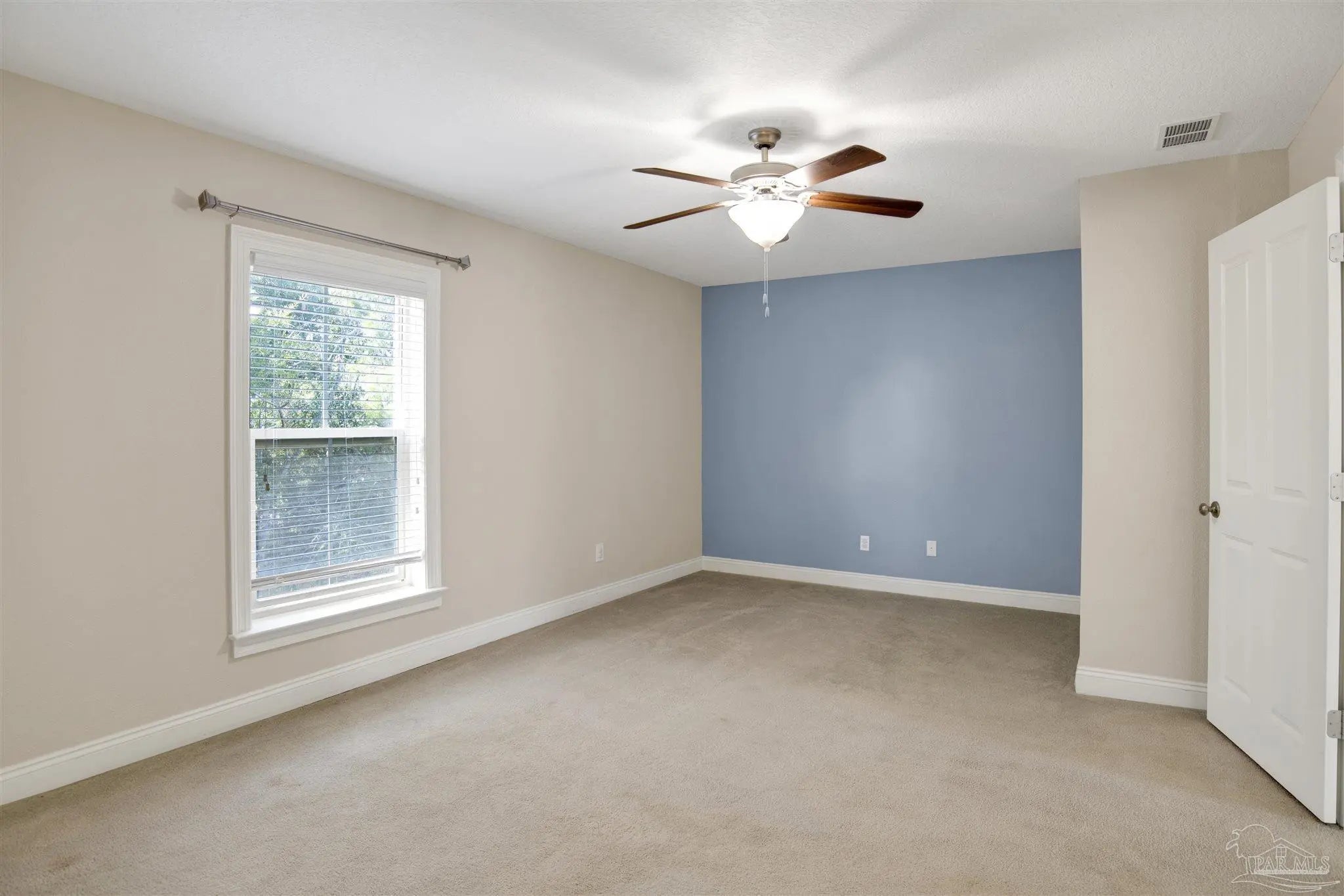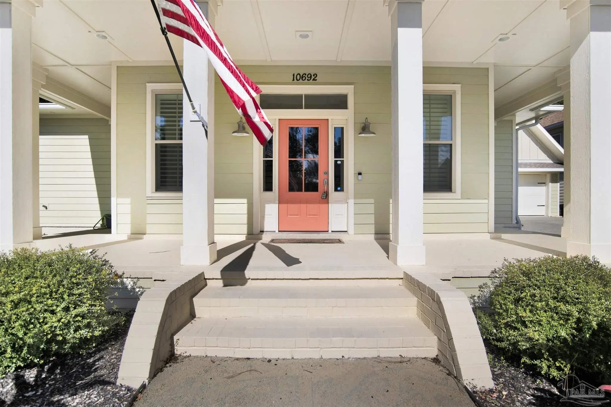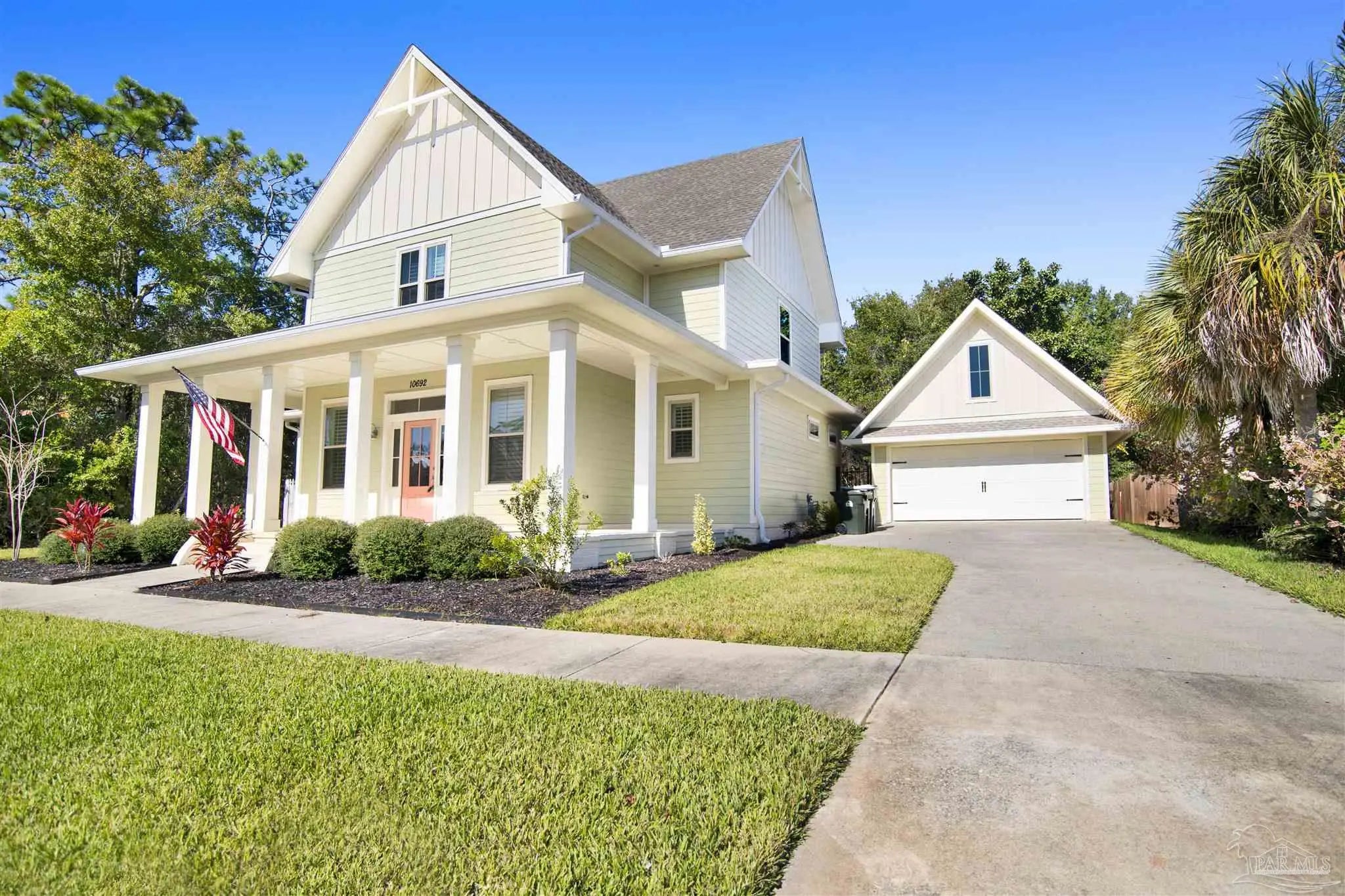 Welcome to this beautiful custom home in the desirable Leeward subdivision perfectly situated just minutes from NAS Pensacola's back gate and the stunning white sands of Perdido Key. This spacious 4-bedroom, 3.5-bath home offers comfort, convenience, and style in the Leeward subdivision. The open-concept floor plan features hardwood, tile, and plush carpet flooring throughout, along with granite countertops, stainless steel appliances, and a large kitchen island overlooking the living and dining areas. Enjoy cozy evenings by the gas fireplace, or unwind in the serene primary suite with vaulted ceilings, dual vanities, and a walk-in shower. The half bath on the main level is ideally located for guests and easy access from the common areas. Outside, you'll love the fully fenced backyard, oversized detached two-car garage, and beautifully maintained landscaping. The Leeward community provides a true resort-style experience with access to a sparkling pool, walking parks, sand volleyball courts, and sidewalks for leisurely strolls. Added features include a premium whole-house water filtration system valued at $7,000 offering extra comfort and peace of mind for everyday living. Property will be held off market up to 14 days with Property Holding Fee with approved app. Lease Prep Fee of $75 is due prior to move in. Renters insurance is required. Sorry, this property is not pet friendly.