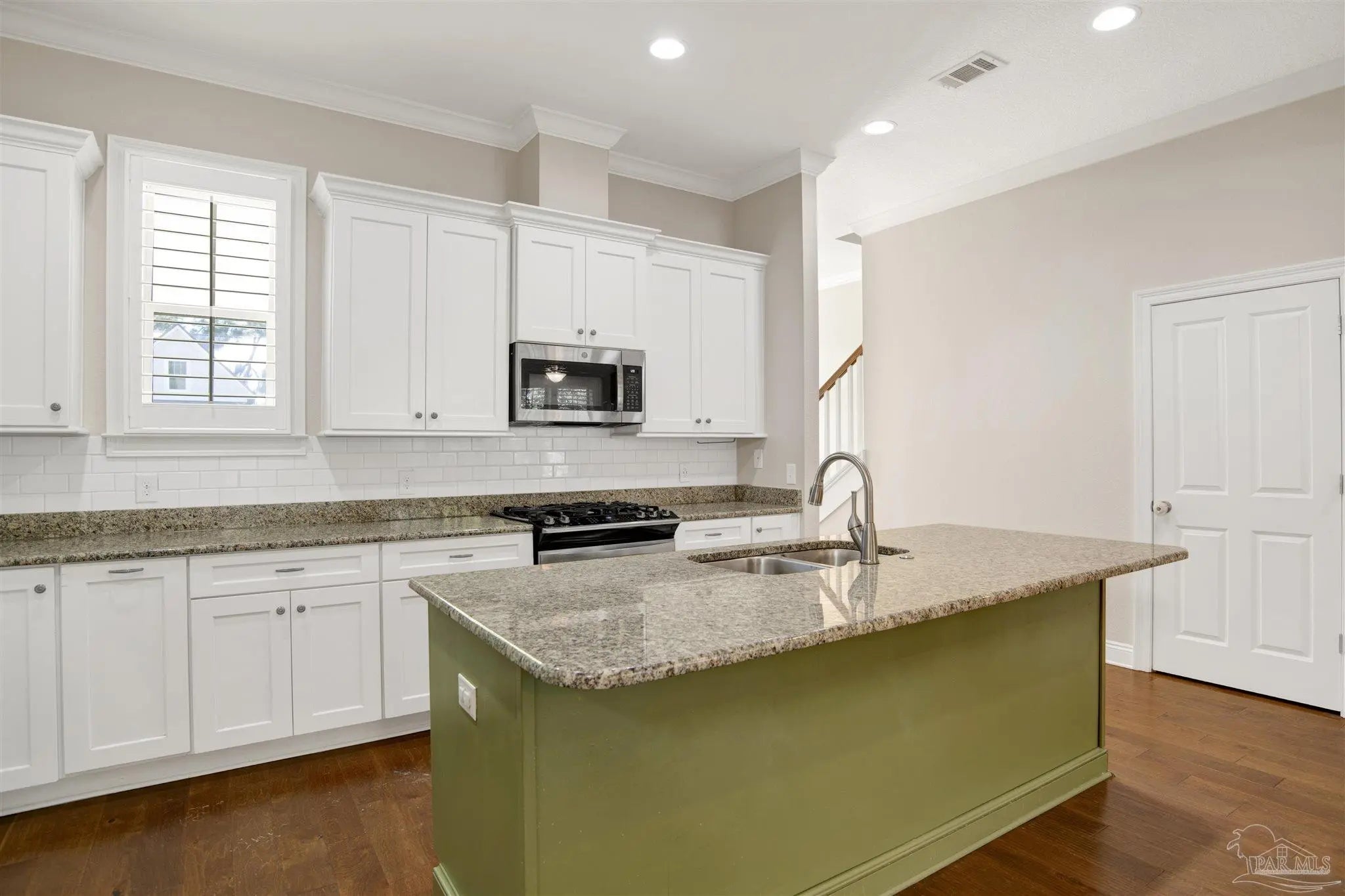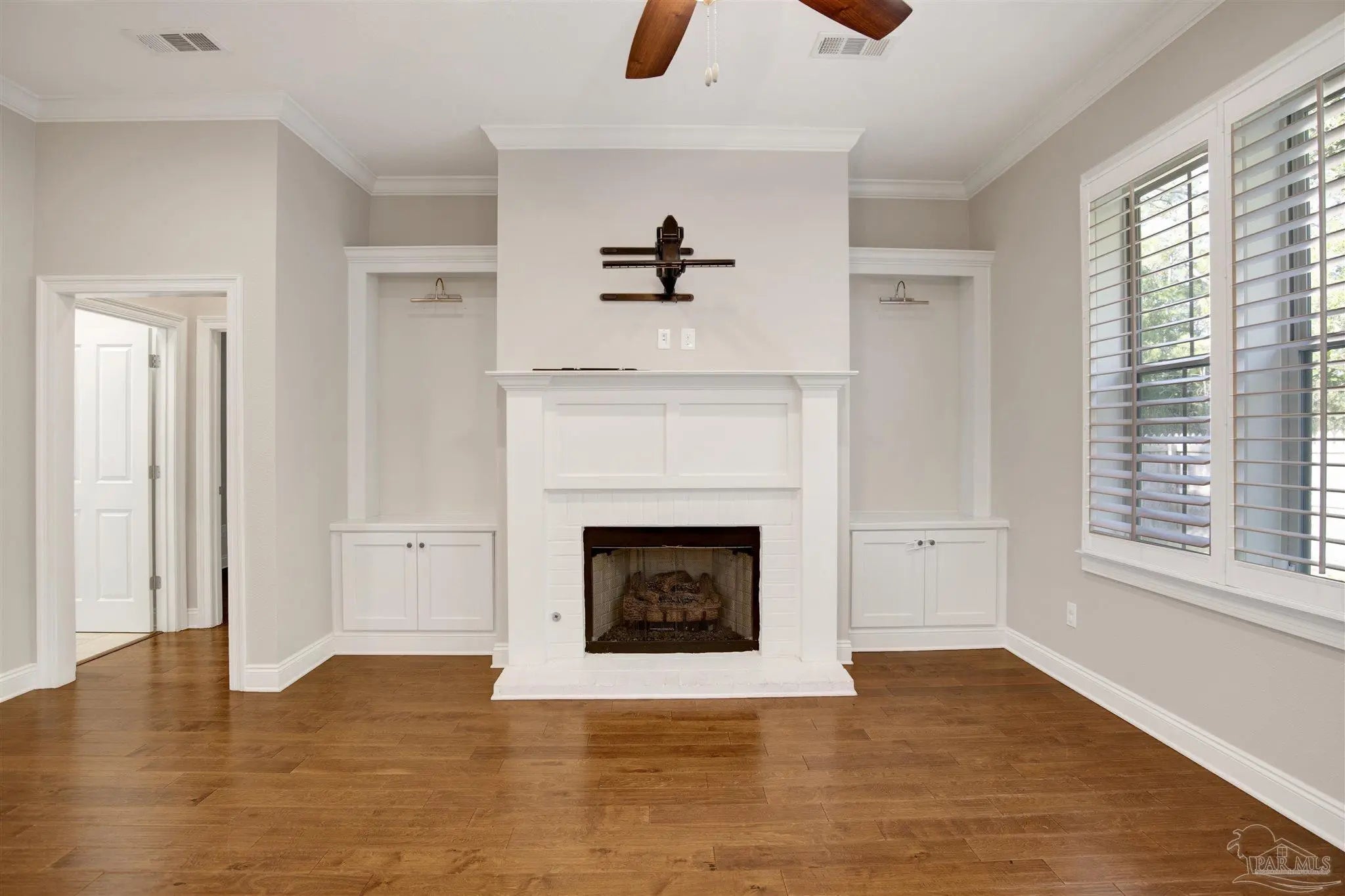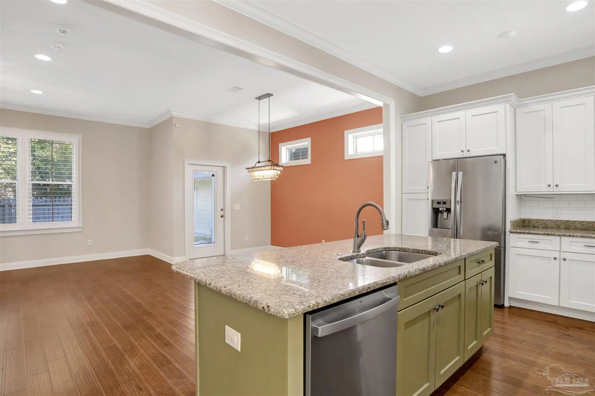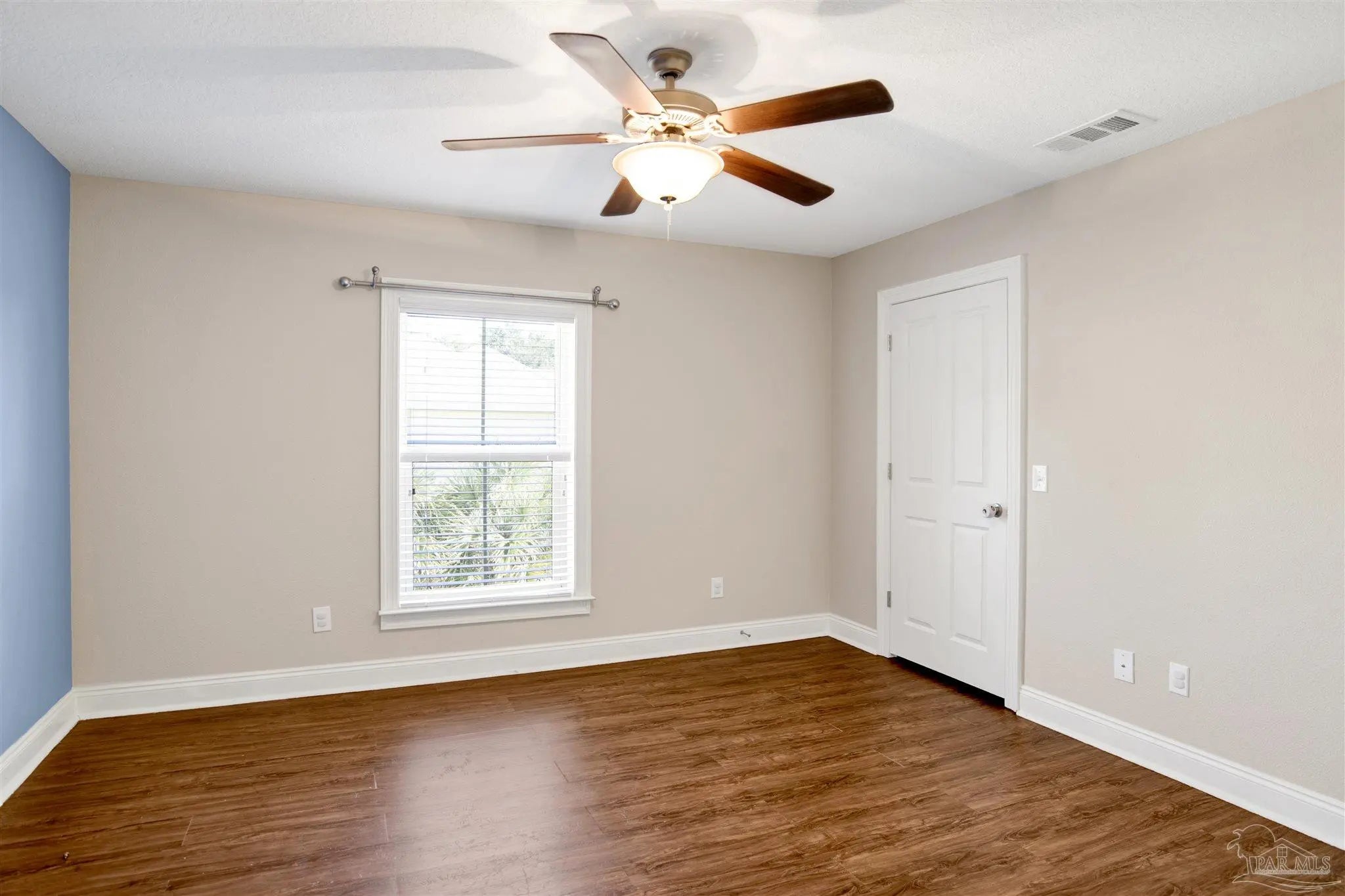 Welcome to this beautiful custom home in the desirable Leeward subdivision perfectly situated just minutes from NAS Pensacola's back gate and the stunning white sands of Perdido Key. This spacious 4-bedroom, 3.5-bath home offers comfort, convenience, and style in the Leeward subdivision. The open-concept floor plan features hardwood, tile, and plush carpet flooring throughout, along with granite countertops, stainless steel appliances, and a large kitchen island overlooking the living and dining areas. Enjoy cozy evenings by the gas fireplace, or unwind in the serene primary suite with vaulted ceilings, dual vanities, and a walk-in shower. The half bath on the main level is ideally located for guests and easy access from the common areas. Outside, you'll love the fully fenced backyard, oversized detached two-car garage, and beautifully maintained landscaping. The Leeward community provides a true resort-style experience with access to a sparkling pool, walking parks, sand volleyball courts, and sidewalks for leisurely strolls. Added features include a premium whole-house water filtration system valued at $7,000 offering extra comfort and peace of mind for everyday living. Property will be held off market up to 14 days with Property Holding Fee with approved app. Lease Prep Fee of $75 is due prior to move in. Renters insurance is required. Sorry, this property is not pet friendly.