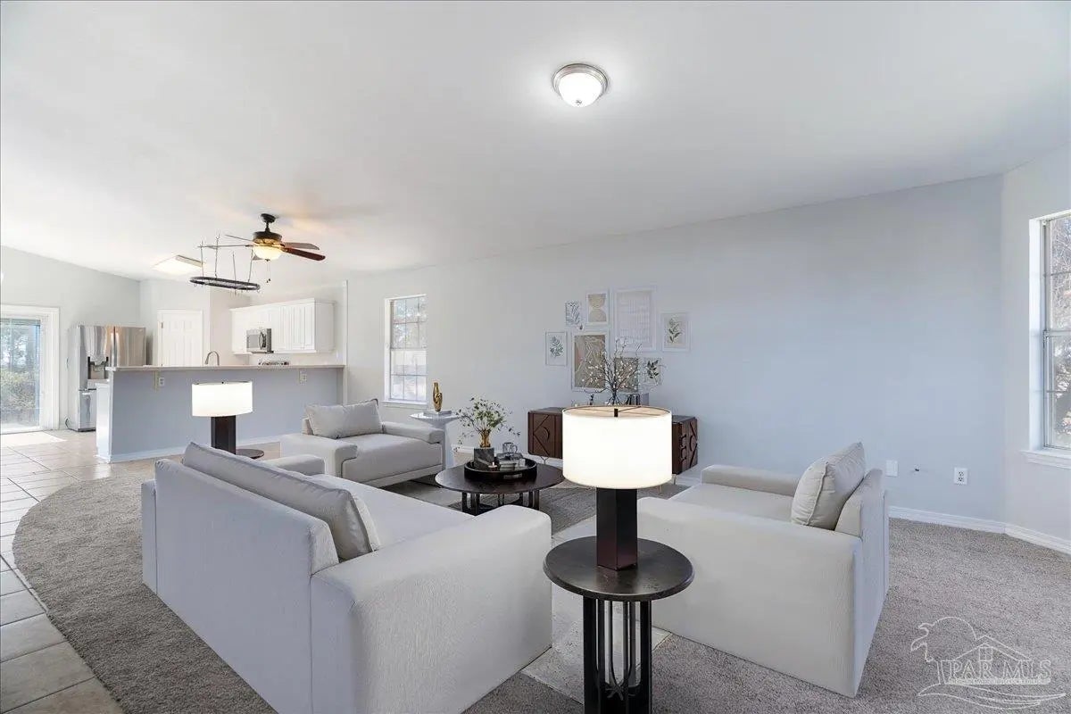 Price Improvement! Possible VA Assumable loan! Seller concessions available for new roof or rate buy down with accepted offer! Welcome to this beautifully updated 1,626 sq ft, single-story home offering comfort, convenience, and no HOA. This property features an attached two-car garage and has been thoughtfully refreshed throughout with fresh interior paint, scraped acoustic ceilings replaced with modern knockdown texture, new lighting, and brand-new carpet. The kitchen shines with brand-new, never-used appliances, including a stove, microwave, dishwasher, and garbage disposal, plus a recently replaced refrigerator. A new HVAC system installed in June 2020 provides efficient and reliable climate control year-round. Step into the backyard and enjoy rare views of both the Sound and the Gulf, a standout feature that’s becoming increasingly hard to find. The home is ideally located within 5 miles of Hurlburt Field and approximately 6 miles from the Navarre beaches, offering quick access to some of the area’s most beautiful white-sand shoreline—perfect for military buyers, commuters, or investors. The home is equipped with 35 solar panels, and with an approved offer, the seller will pay off the remaining solar loan at closing, allowing the buyer to enjoy long-term energy savings with no added financial burden. Move-in ready, centrally located, and packed with value—this home is a must-see.