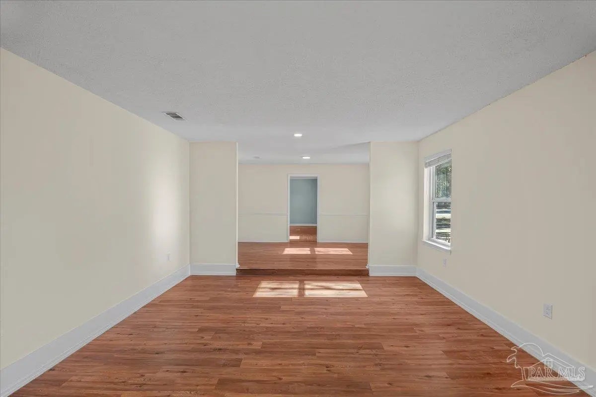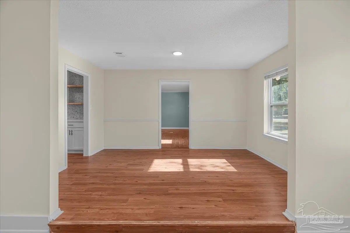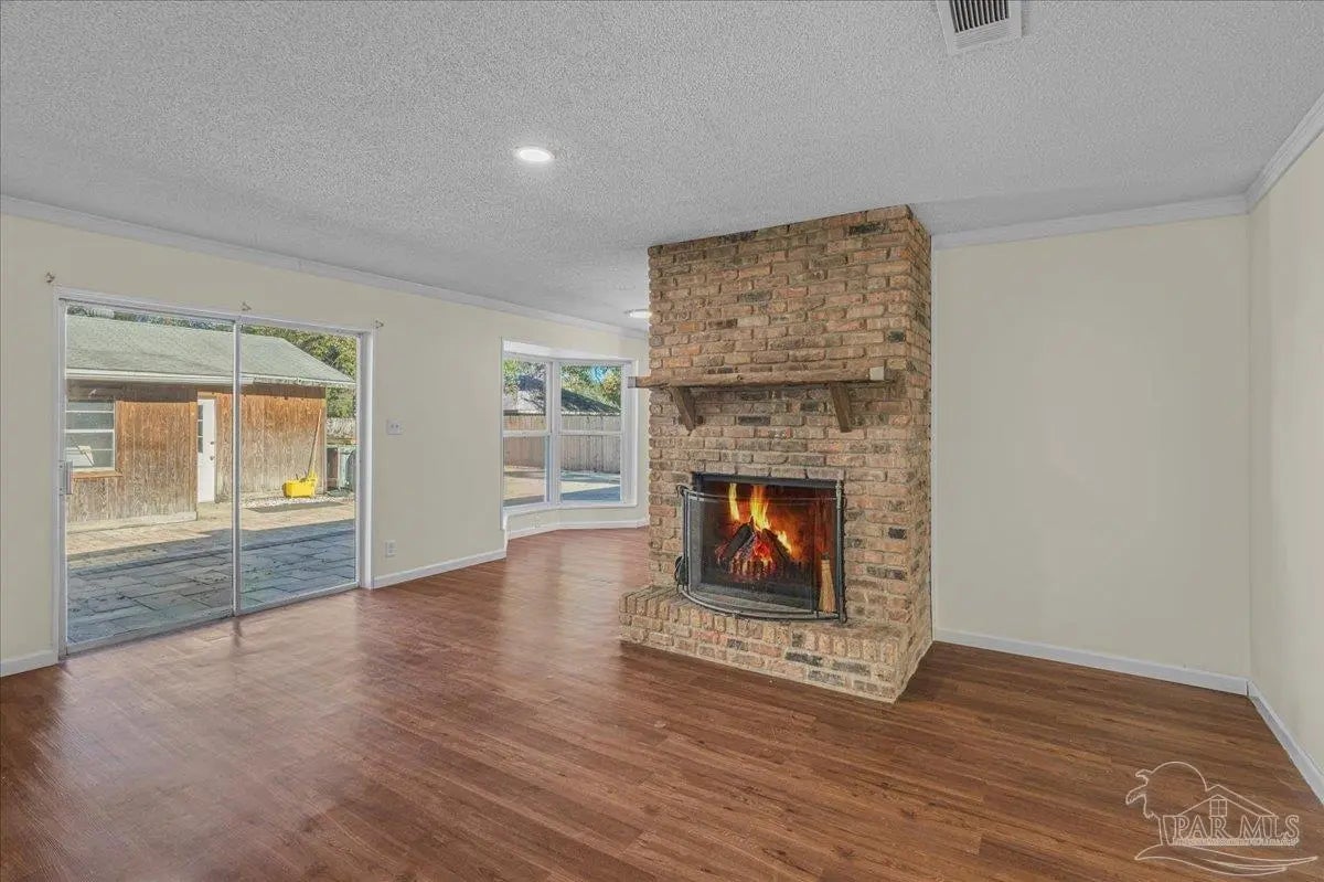 Welcome to this fabulous, and Remodeled 4-bedroom, 2-bath Brick home that offers great location—minutes from I-110, Sacred Heart Hospital, Baptist Hospital, top-rated restaurants, shopping, and all that Pensacola has to offer. A custom flagstone walkway takes you to 19' x 6' COVERED FRONT PORCH, perfect for enjoying morning coffee or greeting guests. Step inside to find wood laminate and tile flooring throughout—NO CARPET—making it stylish and low maintenance. To the right of the foyer, the spacious living room flows seamlessly into the dining room. The dining room connects directly to the kitchen, making it easy to serve meals and entertain. The adjoining family room features a cozy wood-burning FIREPLACE, setting the tone for warm evenings at home. The Brand New kitchen is equipped with Quartz Countertops, STAINLESS STEEL appliances, crisp white cabinetry and Breakfast Nook. The massive 24x12 PRIMARY bedroom features a dedicated sitting area—ideal for a reading nook or home office setup. The primary bath features a WALK-IN CLOSET, GRANITE counters, and an oversized WALK IN shower with Custom Tiles. All additional bedrooms are impressively large, each with EXTRA-SIZED CLOSETS, and they share a REMODELED full bath in the hallway. A true highlight of the home is the expansive 20' x 20' BONUS ROOM, ideal for a playroom, media room, home office, gym, or anything your lifestyle requires and has a direct access to a 19' x 9' WALK IN PANTRY and Laundry room—that provides exceptional storage and functionality. This home also comes equipped with NEW DOUBLE-PANE energy-efficient WINDOWS and a NEW HEAT PUMP with a variable-speed handler (13.5 SEER) for year-round comfort and utility savings. Step outside to enjoy the 23' x 9' COVERED BACK PATIO , perfect for outdoor dining, relaxing, or hosting gatherings. The backyard includes a 20' x 20' detached garage with Storage. Also featuring Privacy Fence, New Paint through out and Huge back yard. Call today for your private showing.