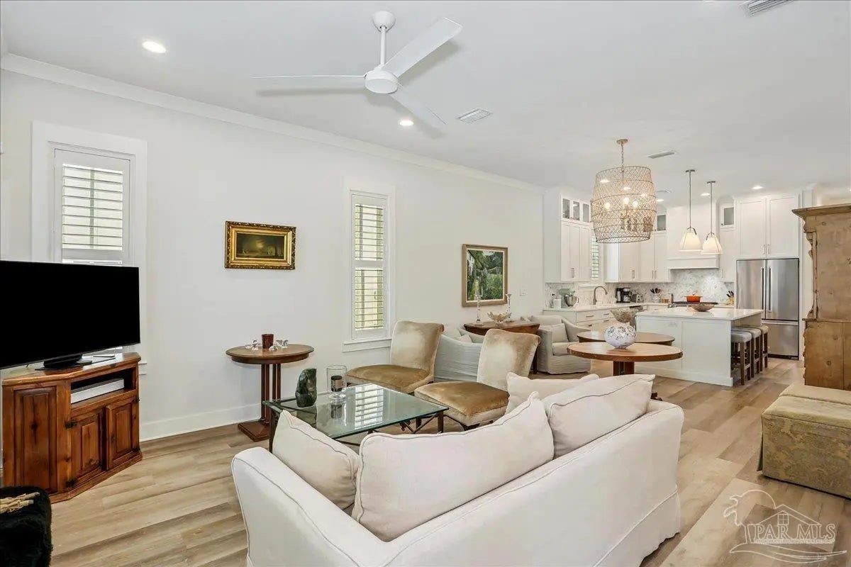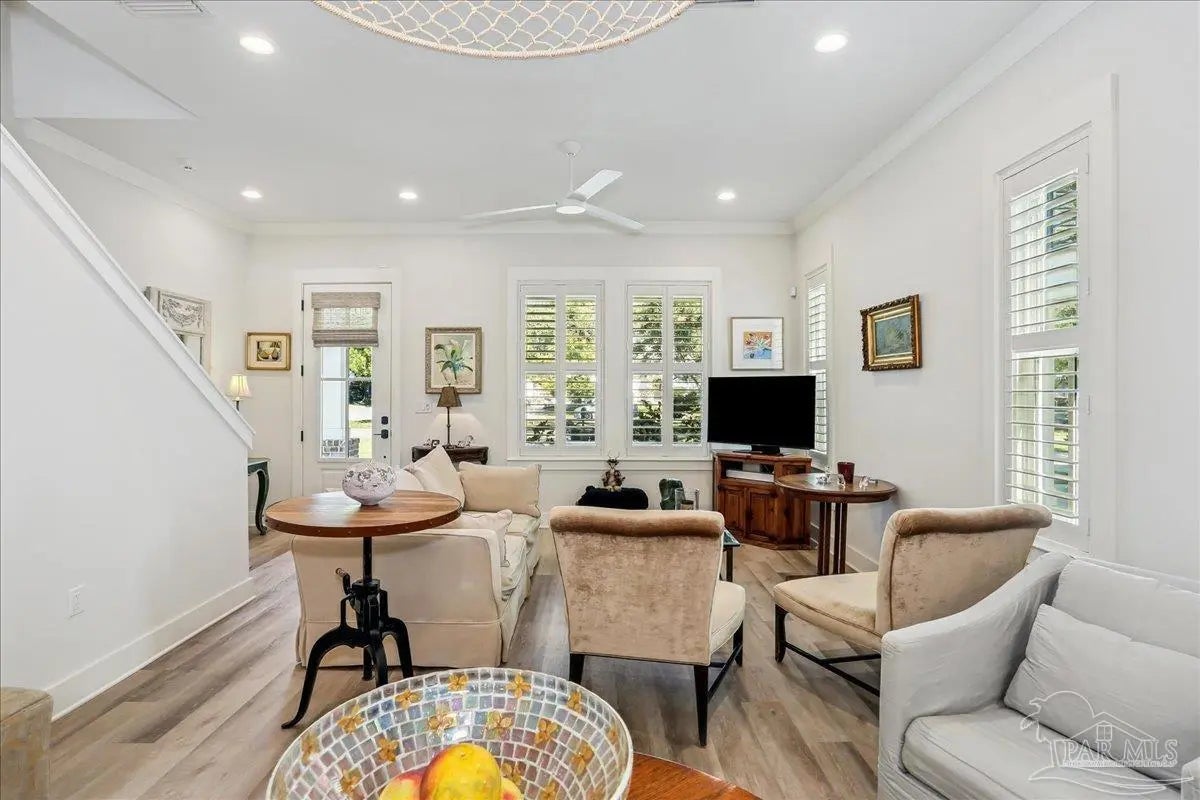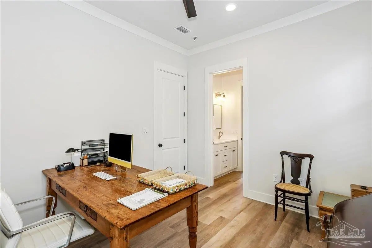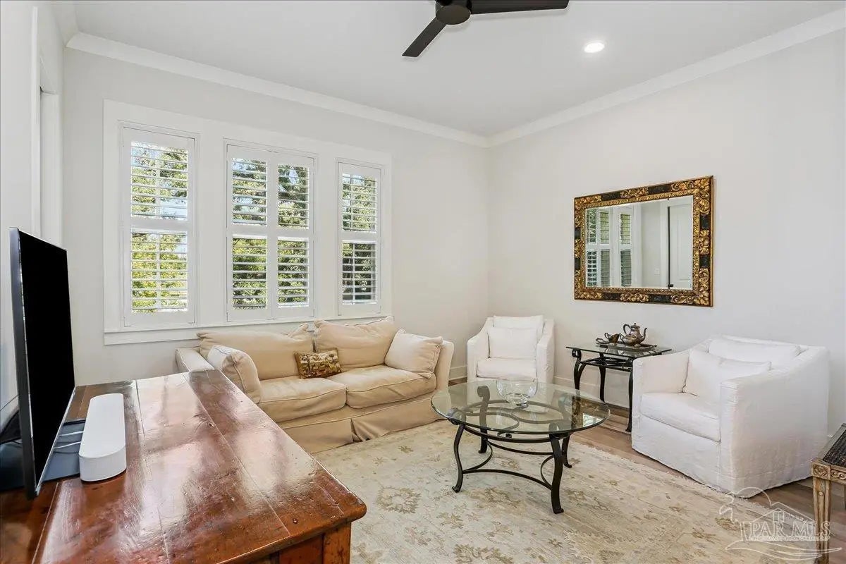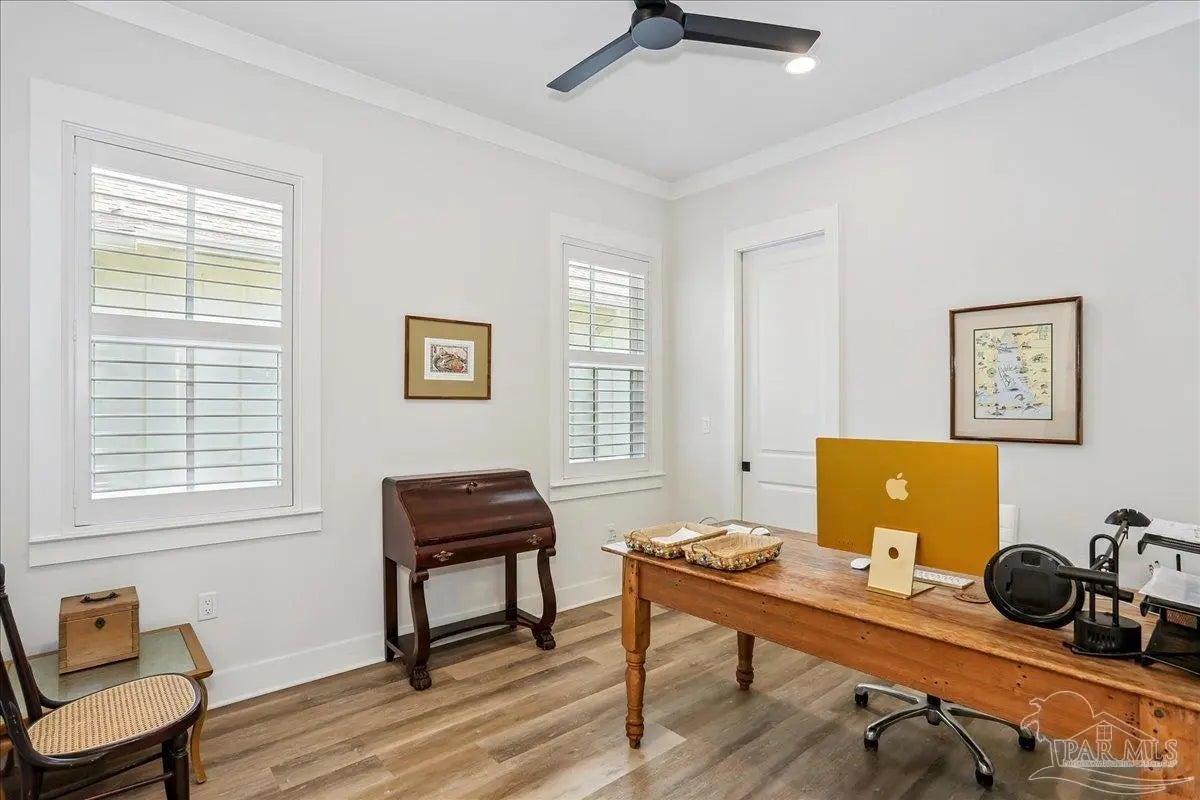 - Baseboards, Ceiling Fan(s), Crown Molding, High Ceilings