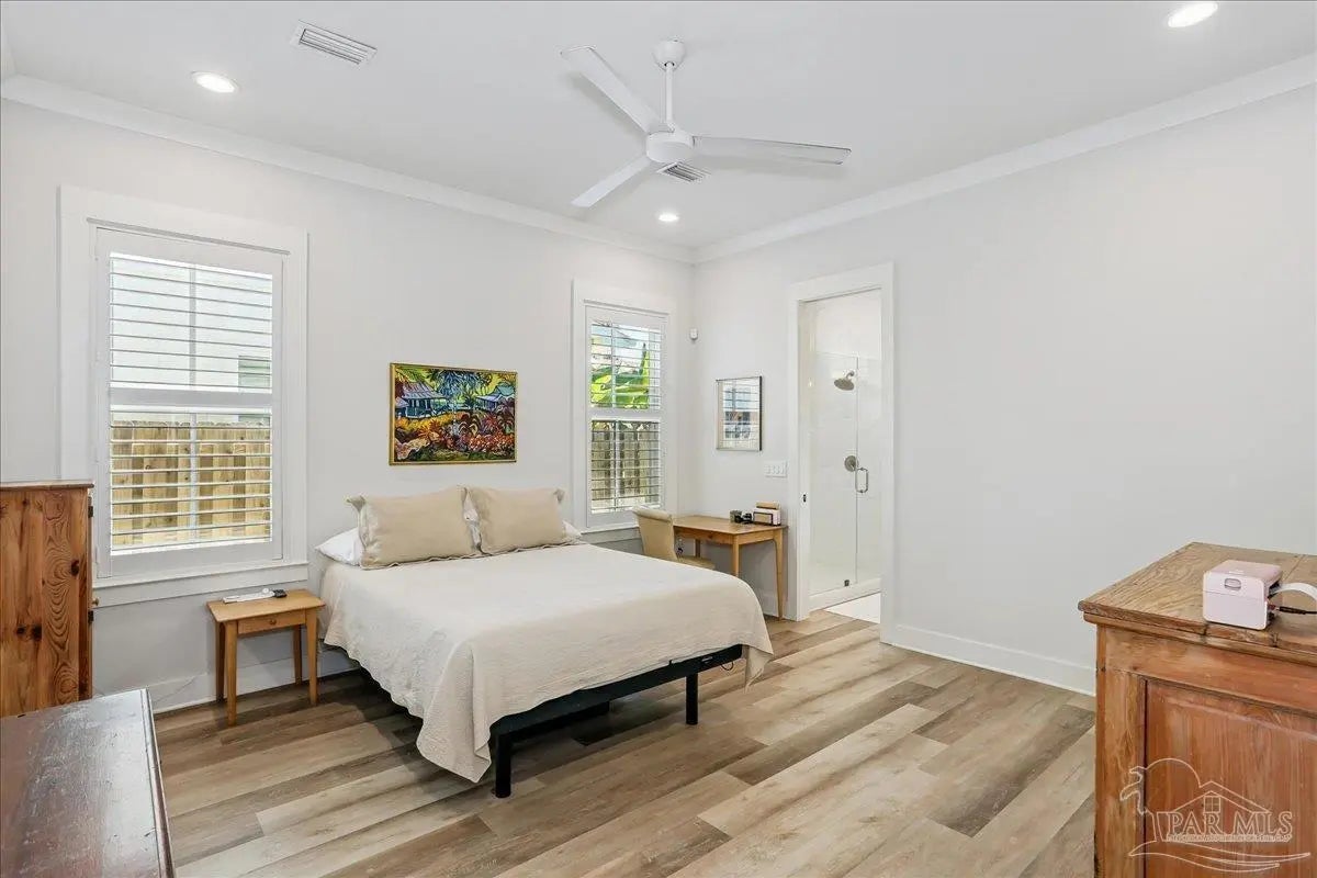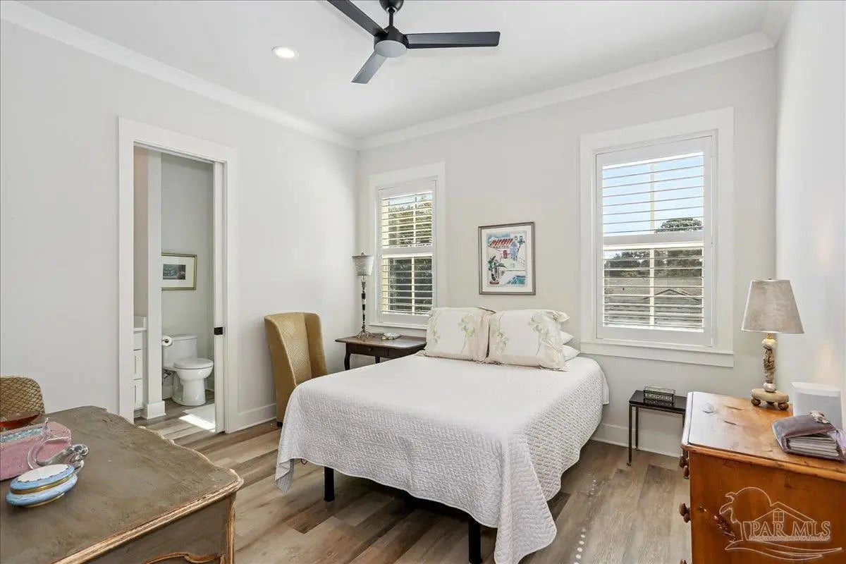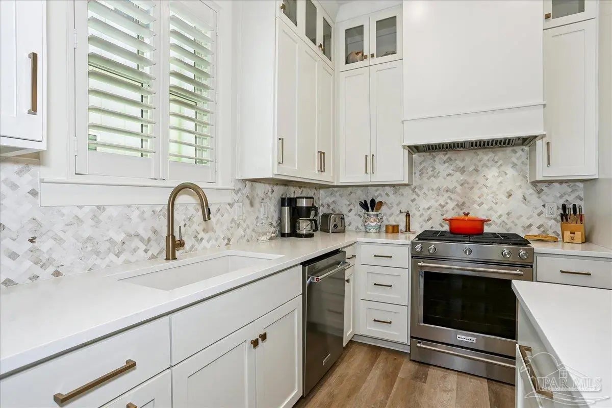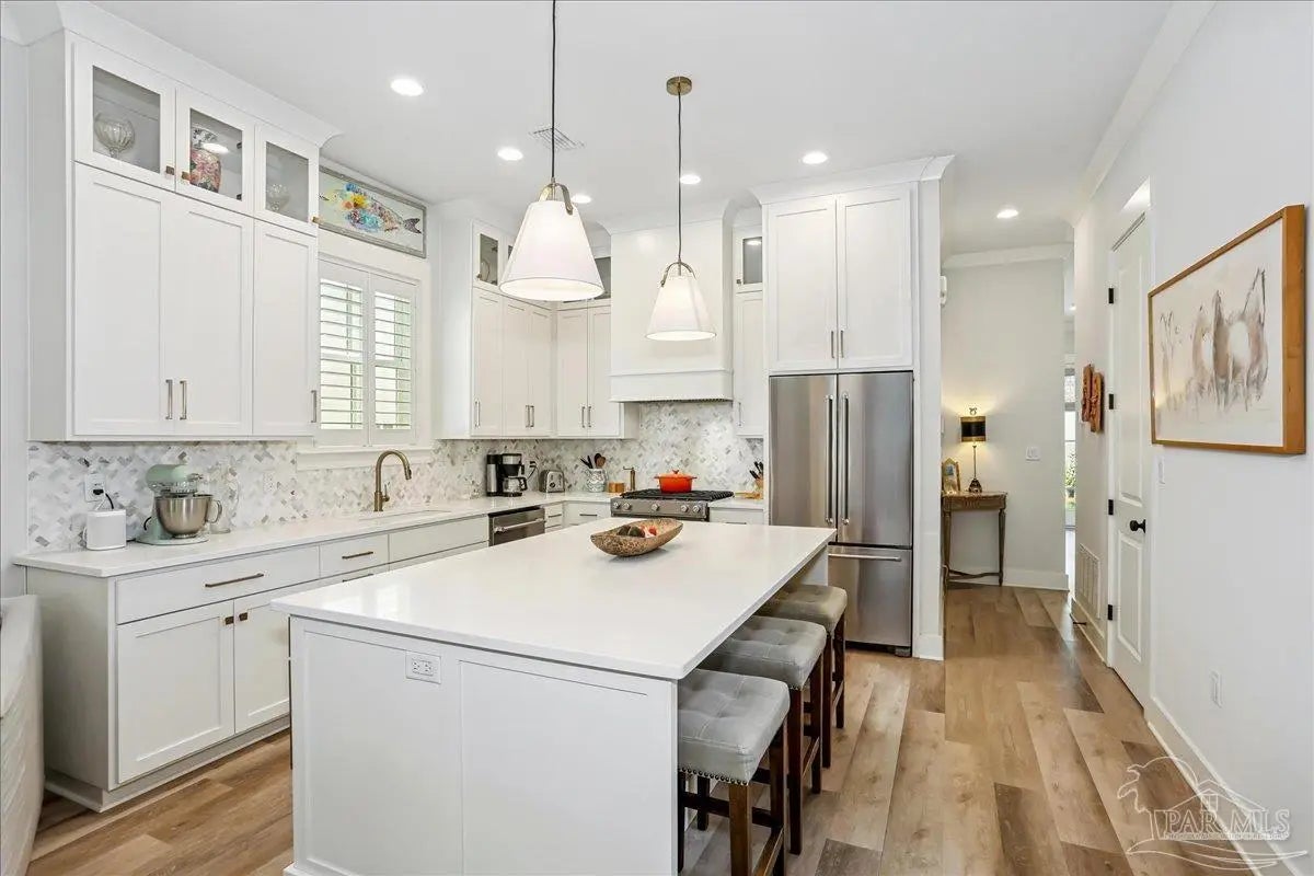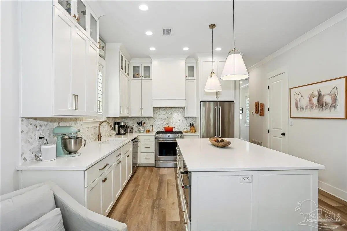 Discover the beauty and charm of East Hill while living in one of the city's most desirable neighborhoods. Located on Lakeview Avenue, otherwise known as the famed tree tunnel drive, this 4-bedroom, 3.5 baths home sits on a large corner lot that was custom built in 2021 by Sitton Homes. It offers walkability to parks, coffee shops, restaurants, breweries, plus quick access to downtown and only 20 minutes to the white sands and emerald waters of Pensacola Beach. A covered front porch accented by a classic gas lantern offers a warm welcome and reflects the character of East Hill. The foyer leads you into the spacious kitchen that boasts 10 ft. ceilings, a large island for entertainment, quartz countertops, a gas range and floor-to-ceiling cabinets. Not only in the kitchen but throughout the home, you’ll find high-end custom finishes, LVP flooring and crown molding. The first-floor primary suite provides a beautiful floor-to-ceiling tiled shower and a custom-built walk-in closet. All three guest rooms feature 9 ft. ceilings that are sizable with large closets. Additional convenience comes with a side entry garage. Location and charm await you in this custom-built home located in historic East Hill.