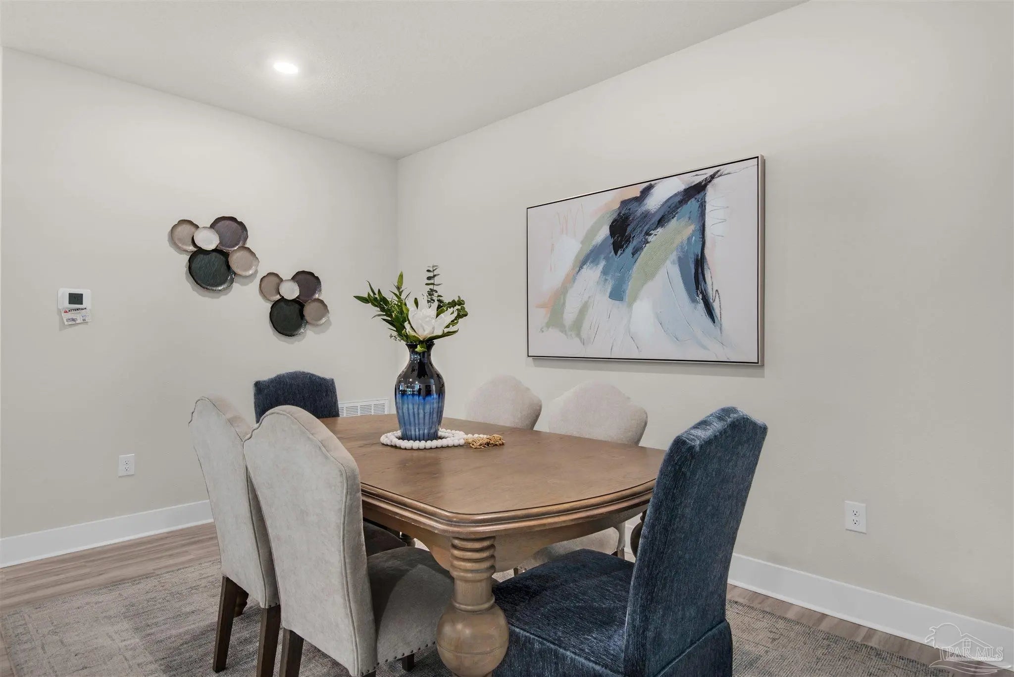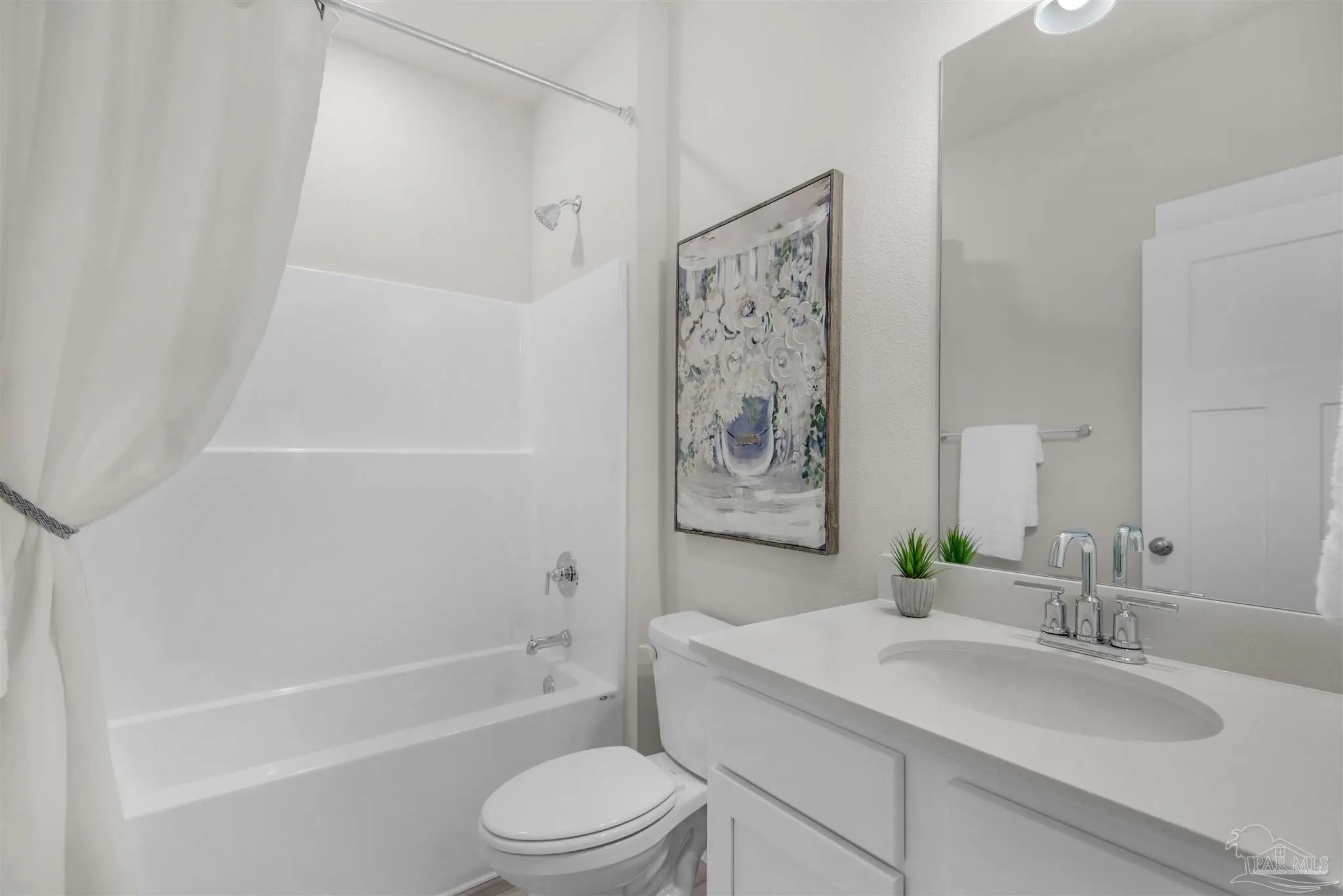 Welcome to The Grove at Berryhill – in the Heart of Milton! The Destin floor plan offers 4 bedrooms, 3 full bathrooms, and just over 2,300 square feet of space. The kitchen is the centerpiece, with quartz countertops, stainless steel appliances, and a large island that flows seamlessly into the dining and living areas. Tall 9’ ceilings and luxury vinyl plank flooring create a bright, modern feel throughout the main living space. The primary suite is tucked away for privacy and includes a generous walk-in closet, and a luxurious en-suite bath complete with a shower, soaking tub, and dual quartz vanities. Three additional bedrooms and two full baths offer flexible space for family, guests, or a home office. Enjoy outdoor living with a covered back porch, and peace of mind with a built-in Smart Home technology package. Located near top-rated schools, everyday conveniences, and Blackwater River, a natural gem perfect for outdoor activities such as kayaking, canoeing, and fishing. For those who enjoy beach days and coastal living, you are just 30 miles from the sugar-white sands of the Gulf Coast.