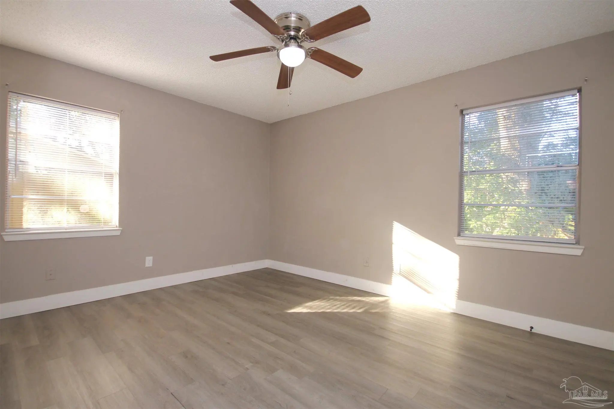 This beautifully renovated 3-bedroom, 1.5-bath home offers two spacious family rooms and a screened-in porch overlooking a large, fenced backyard. The home features LVP flooring throughout with tile in the converted garage space, and an updated kitchen with stainless steel appliances including a refrigerator, built-in microwave, electric stove, and dishwasher, along with a tile backsplash and pantry. The primary bedroom offers two windows providing abundant natural light and includes a private half bathroom, while the full hallway bathroom features a tile tub/shower combo. Located at the end of the street with minimal traffic, this home is in a highly desirable Pace location close to shopping, restaurants, and more. Pet-friendly with owner approval and a $250 non-refundable pet fee per pet, this home is available for immediate move-in. Residents are required to have renter liability insurance, which can be added for $11.95/month, or you can opt into the Resident Benefits Package (RBP) for $45/month, which includes renter liability insurance, HVAC air filter delivery, and on-demand pest control. More details in the application. Ready for move-in on December 29th.