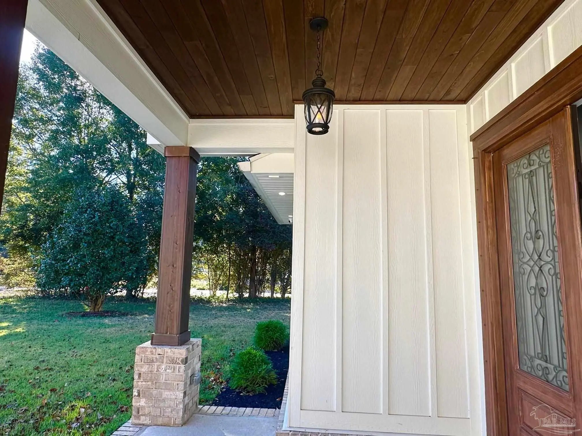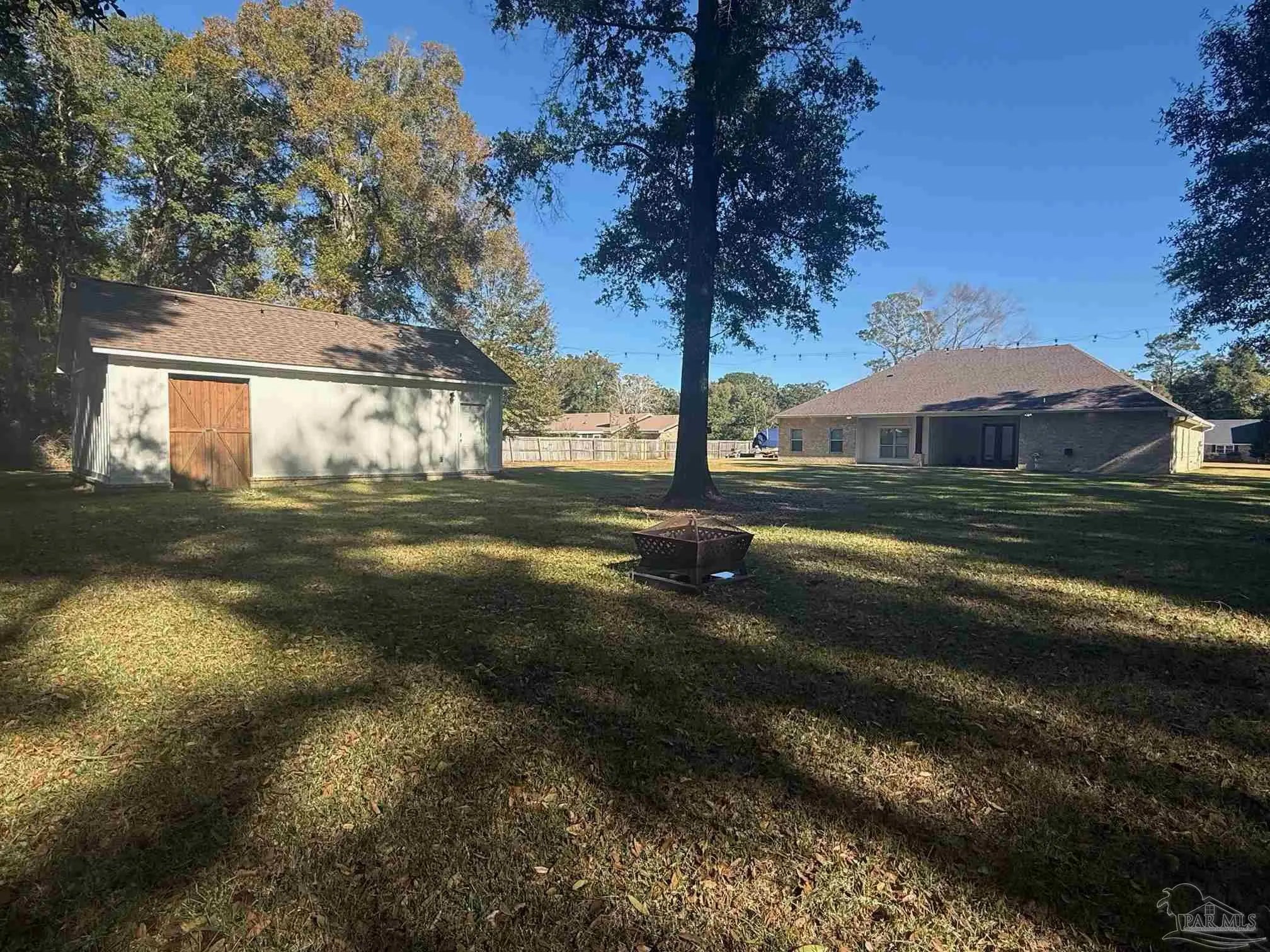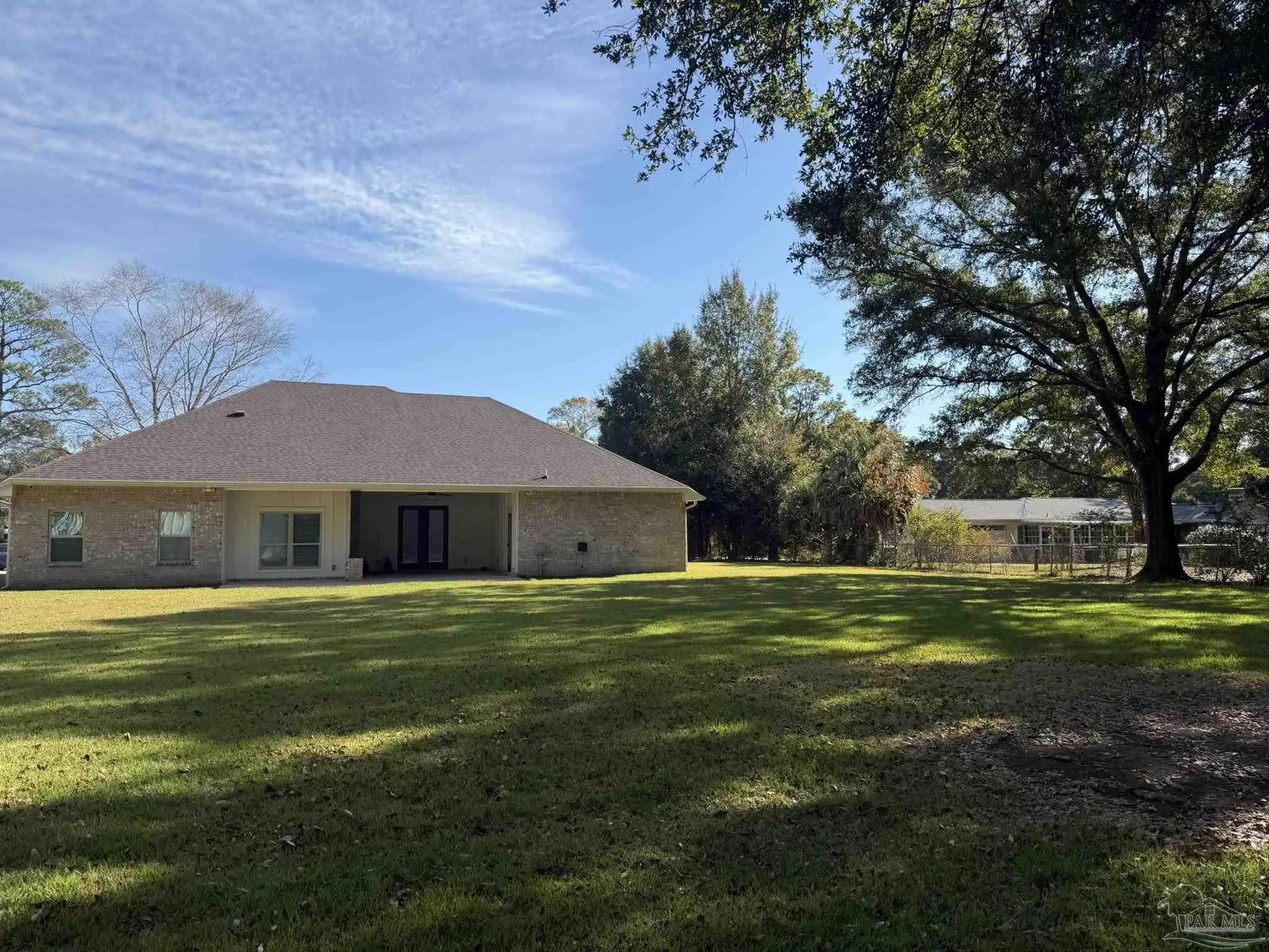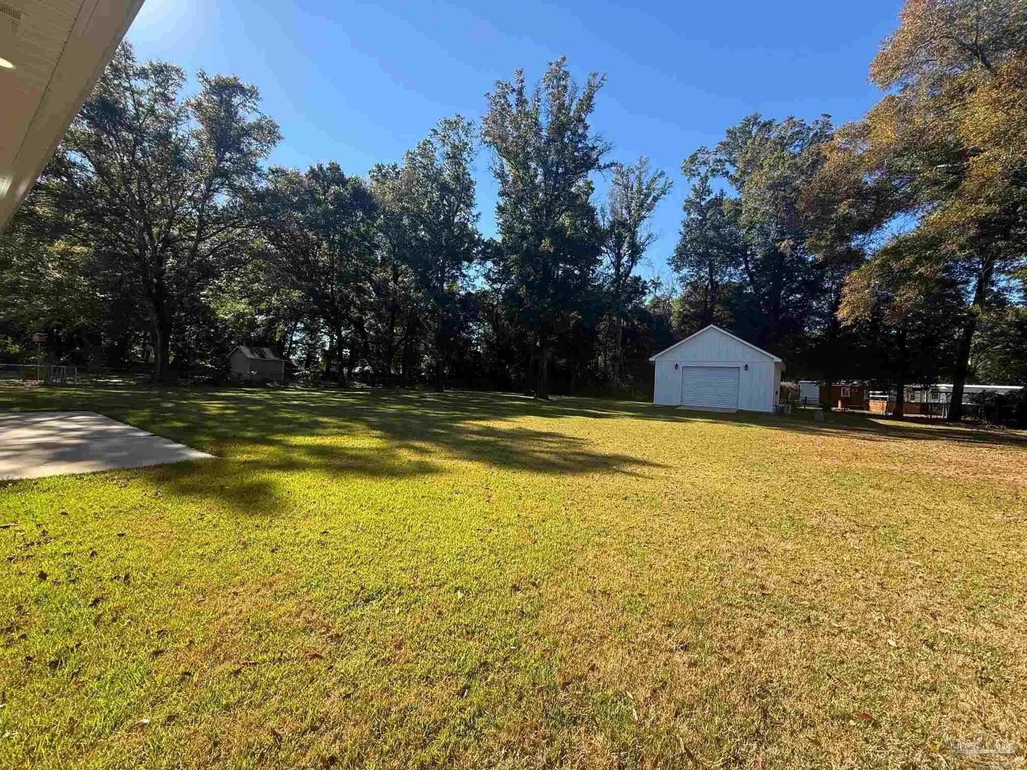 East facing, wonderfully planned home with 2 primary suites located on .98 acres!! The 2-car garage plus a detached garage (both have overhead storage) with 20x20 living area provide usage options. All bedrooms have walk-in closets with high grade shelving. Ornate nested-tray ceilings adorn the dining area, the great room and the main primary bedroom. This home has quality through-out and attention to detail! From brick archway, executive grade trim work & fixtures, window framing, chair rail to self-close pocket doors. Ceilings are all at least 9 feet and soar up to 12' in the crown of the tray. Windows have wood blinds; exit doors have built in blinds. Windows have impact resistant glass so you won't have to be putting up storm shutters every time the weather changes! Flooring is luxury vinyl plank (wood look) in most common areas, tile in baths and carpet in bedrooms. The floorplan is very flexible! Dining area could be repurposed because kitchen has a wonderful built-in marble top island & table (with deep sink) & Breakfast nook. The island marble was hand selected and quarried near New Orleans. There is a beverage bar & mounted pot filler over stove. The main bedroom connects to huge galley-style laundry room; laundry also connects to common area so the floorplan flows easily. Main bath has two dressing areas, a real tile shower, an amazing walk-in closet with built-ins and a garden tub! 2-car garage has pedestrian door, opener, large attic access and 8x20' floored storage above garage. Attic is foam sealed and HVAC is 20 seer, 3-zone, high efficiency heat pump hot water heater. Rear yard was planned around possibility of inground pool. The electrical is already in place and 16x18 covered rear porch has access to a full bath so it can transition to lanai. The porch ceilings are exquisite tongue-in-groove stained cypress. Driveway has extra parking pad; lawn is established carpet of luxurious Zoysia. Built in surround sound & programmable lighting convey.