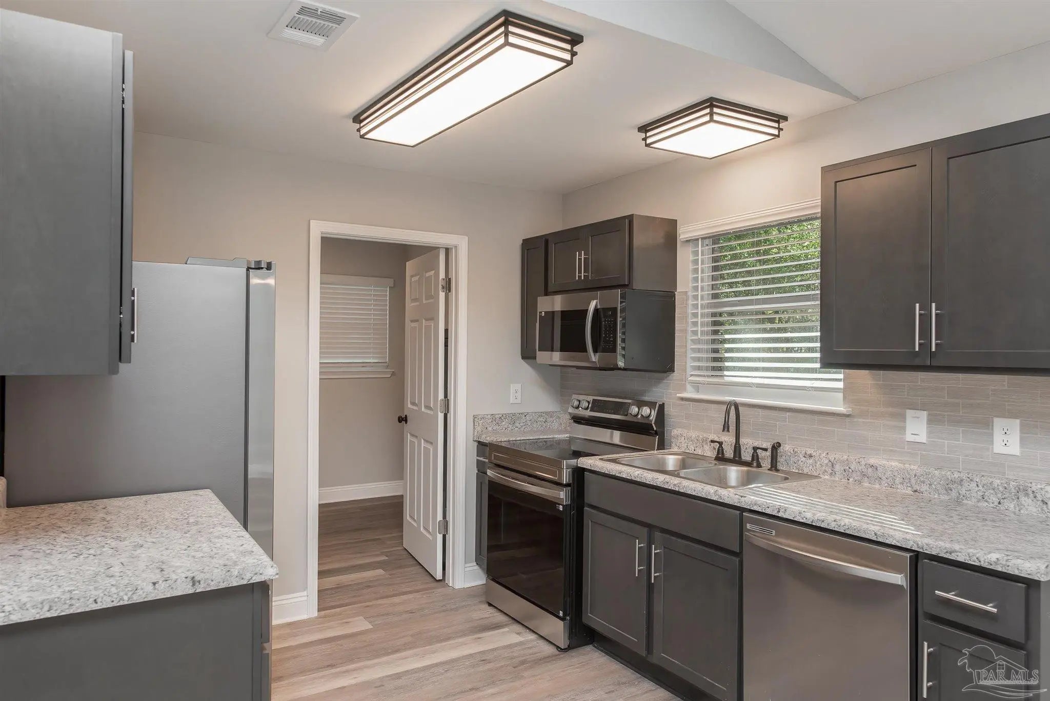 Experience comfort and style in this beautiful new brick home featuring 3 bedrooms and 2 bathrooms. The chef-ready kitchen showcases all stainless steel appliances and modern finishes. The spacious living and dining area boasts a vaulted ceiling, creating an open, airy feel. Durable LVP flooring runs throughout the home for easy cleaning and low maintenance. A convenient inside laundry room adds extra storage and practicality. Relax or entertain on the 12x12 screened back porch, overlooking a large private fenced backyard. Curb appeal is enhanced by a welcoming front porch and a 2-car driveway. Pet policy: small dogs allowed with a $200 pet fee; no cats.