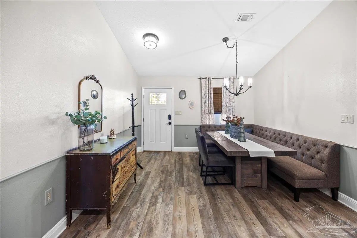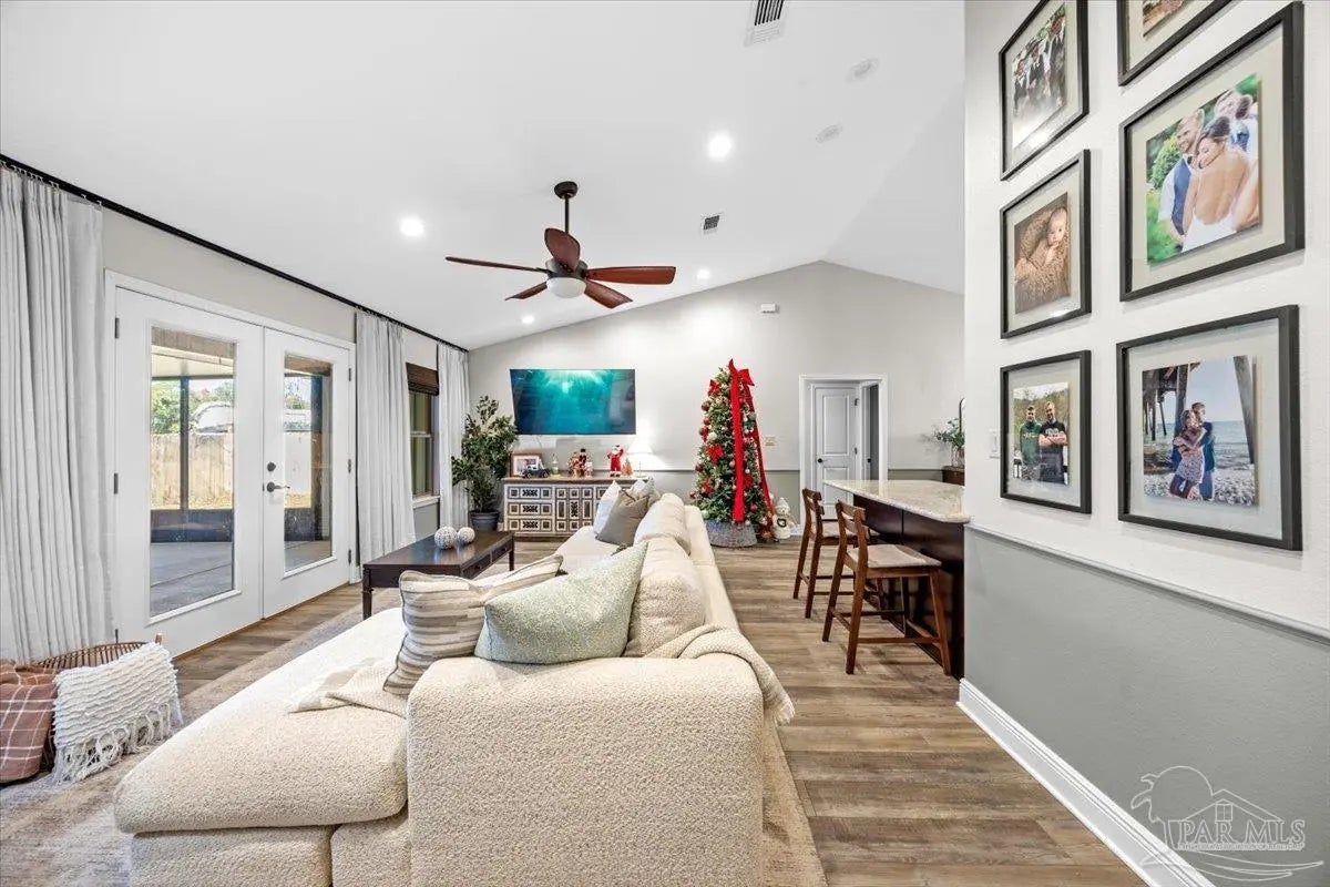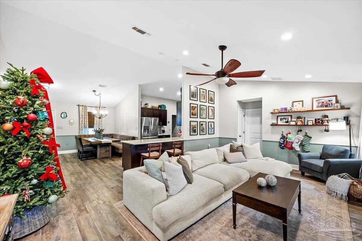 Welcome to this beautiful custom brick Craftsman home built in 2018 and perfectly located in the heart of Gulf Breeze. With 3 bedrooms, 2 bathrooms, and 1,763 square feet, this home offers a bright, open layout with vaulted ceilings that make the space feel light and inviting the moment you walk in. The kitchen is a standout, featuring granite countertops, stainless steel appliances, and soft-close cabinet doors and drawers, ideal for both everyday living and entertaining. Luxury vinyl plank flooring flows through the main living and dining areas, while tile floors in the bathrooms and laundry room add durability. The bedrooms are comfortably carpeted, creating cozy retreats. Step out back and enjoy your own privately fenced backyard, perfect for relaxing or hosting friends and family. The screened-in/enclosed patio makes outdoor living enjoyable year-round, and the sprinkler system with lawn pump keeps the yard looking great with ease. A 2-car garage provides plenty of storage and convenience. Energy efficiency is a bonus with solar panels that will be paid off at closing, offering long-term savings with no added cost to the buyer. Location is everything — this home is just 1.2 miles from the Woodlawn Beach Boat Ramp, 1.1 miles from Woodlawn Beach Middle School, and only 1.6 miles from the new Soundside High School set to open in 2026. Whether you love being near the water, value nearby schools, or want a move-in-ready home, this one truly checks all the boxes.