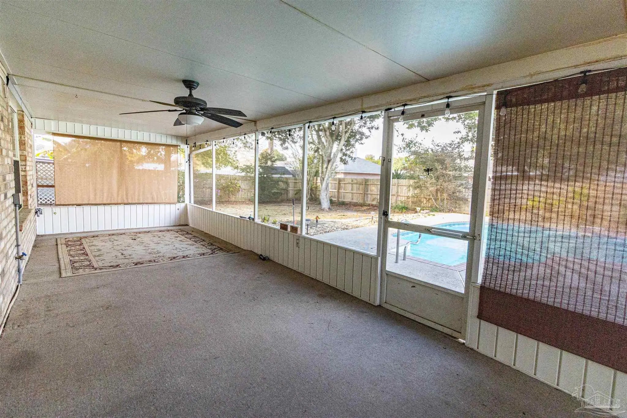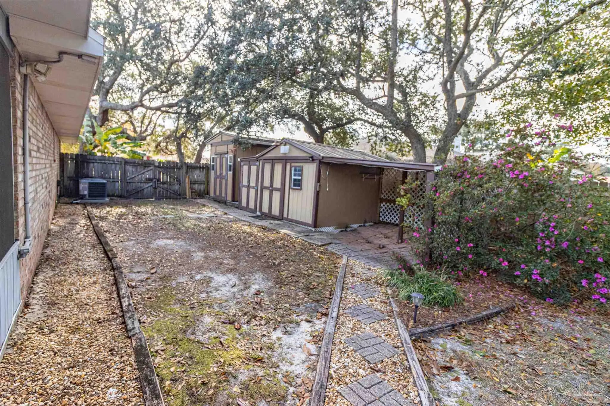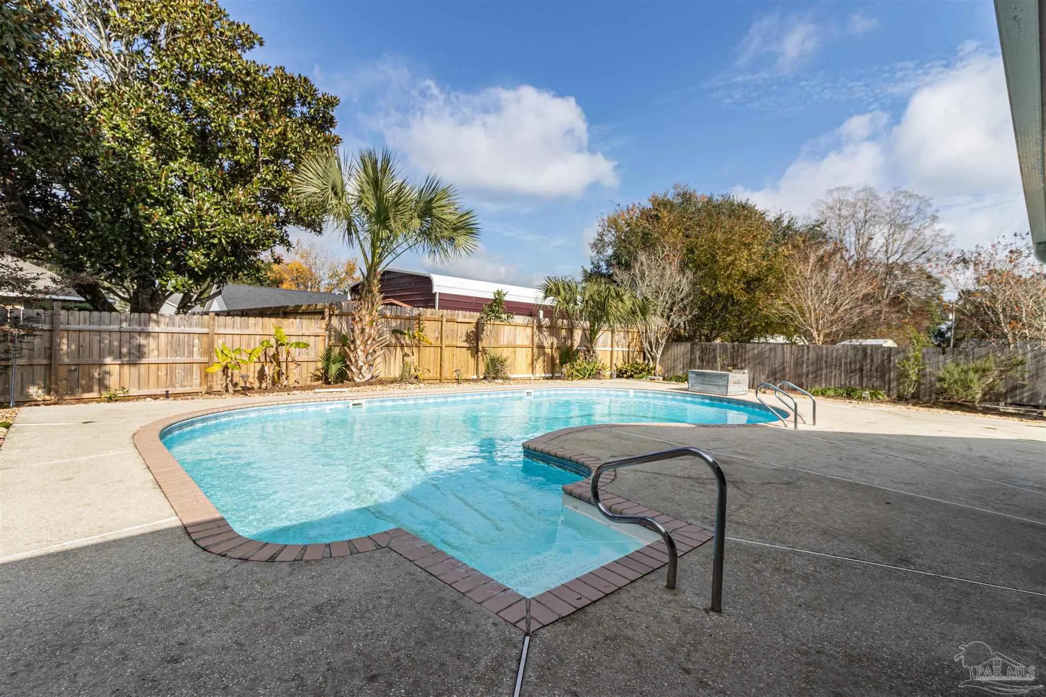Brick Pool Home in Navarre centrally located near shopping, schools and beautiful Navarre Beach, this well-maintained 3 Bedroom/2 Bath home offers 1,796 sf of living space. The home features a formal living room, a separate family room with a cozy fireplace and a dining area conveniently located off the kitchen. Kitchen area is equipped with granite countertops and breakfast bar, perfect for everyday living. A split floor plan with a spacious master suite with bath that allows double vanity, garden tub with shower. Step outside to enjoy your private backyard oasis, complete with a 19 x 36 kidney-shaped vinyl pool and a 10 x 20 screened porch-ideal for relaxing. 3 storage buildings with electricity. Located near Hidden Creek Golf Course, this subdivision has NO HOA!