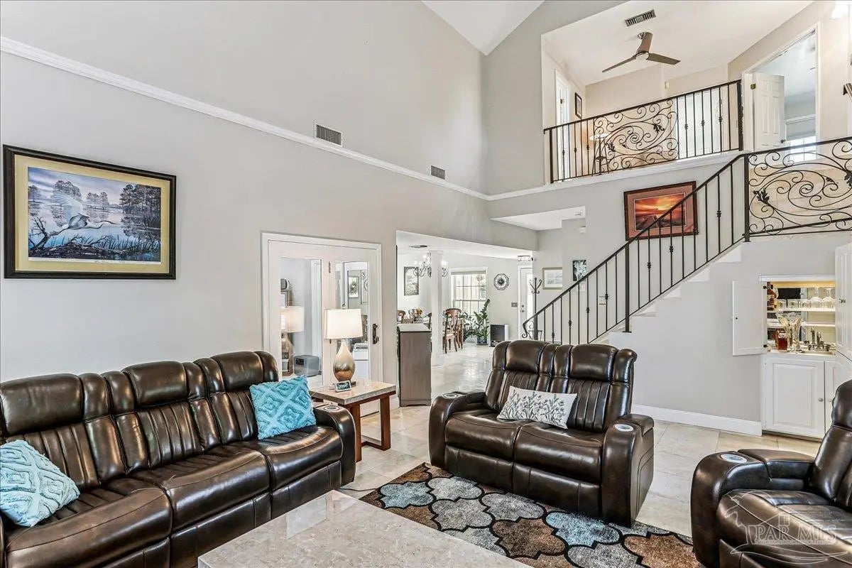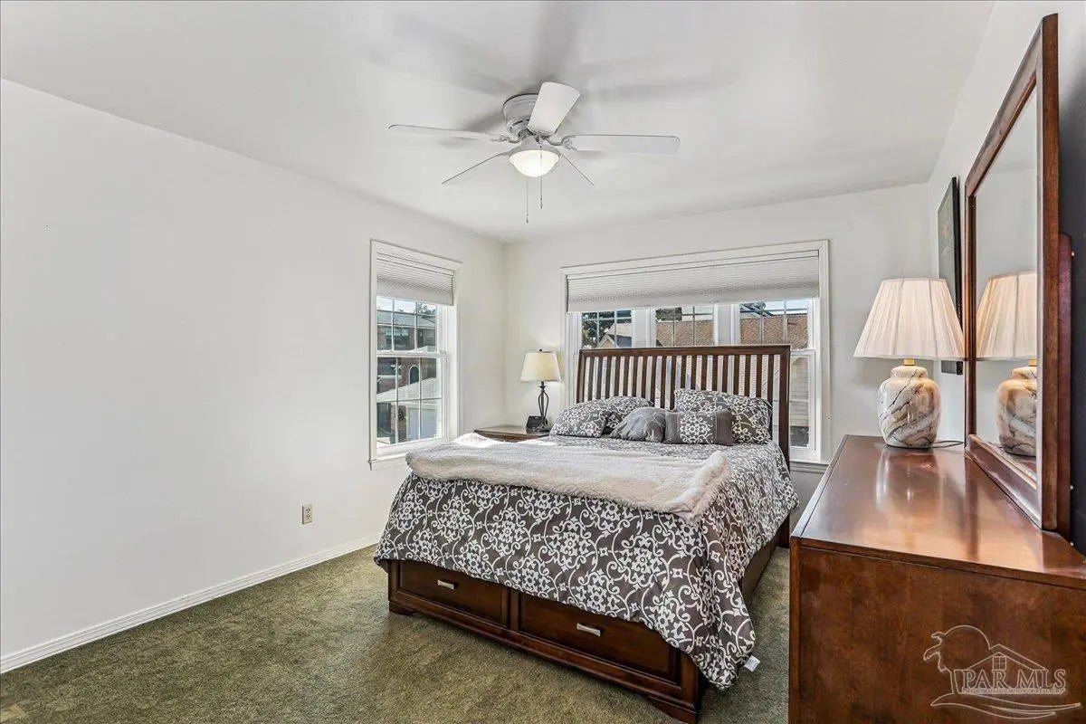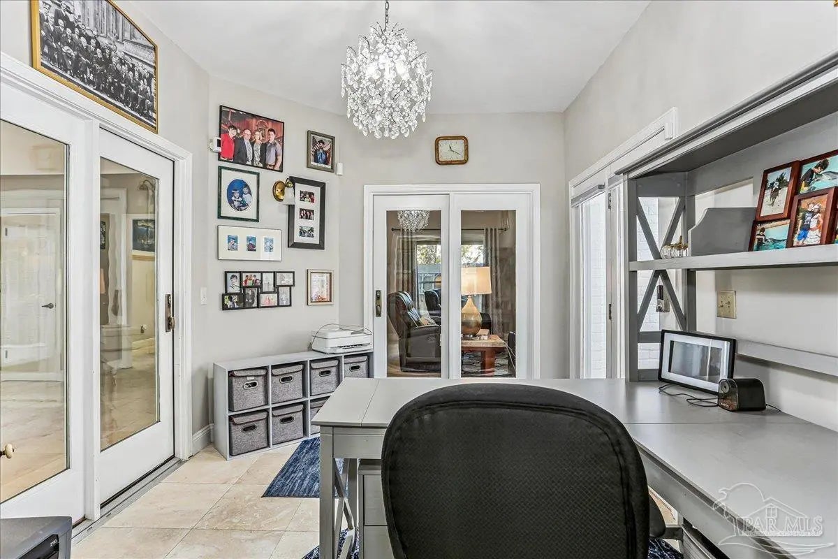 Welcome to this beautifully maintained 3-bedroom, 2.5-bath home in the sought-after Chantarene subdivision, perfectly situated just a short golf cart ride to Pensacola Country Club. Designed for both comfort and convenience, this home features a first-floor primary suite along with a separate home office, ideal for today’s flexible lifestyle. Travertine flooring flows throughout most of the home, with carpet limited to only the two upstairs bedrooms. The spacious kitchen offers abundant cabinetry and a welcoming breakfast area, making it perfect for everyday living and entertaining. Step outside to a low-maintenance yard featuring rock and pavers, a hot tub, and a privacy fence, creating a relaxing outdoor retreat with minimal upkeep. Residents of Chantarene enjoy deeded access to Pensacola Bay, adding to the appeal of this waterfront-adjacent neighborhood. Additional highlights include impact-rated windows, a brand-new water heater, and a roof and HVAC system replaced within the last five years. Preventative termite treatment was even done in 2024! Conveniently located just 7 minutes from downtown Pensacola and 25 minutes from Pensacola Beach, this home offers an unbeatable blend of location, lifestyle, and peace of mind. A rare opportunity to enjoy refined living close to golf, water access, and all that Pensacola has to offer.
