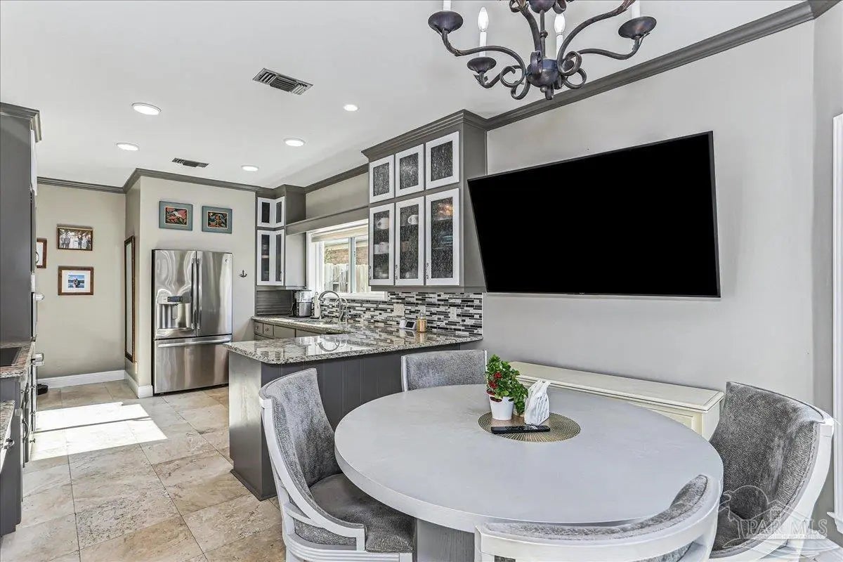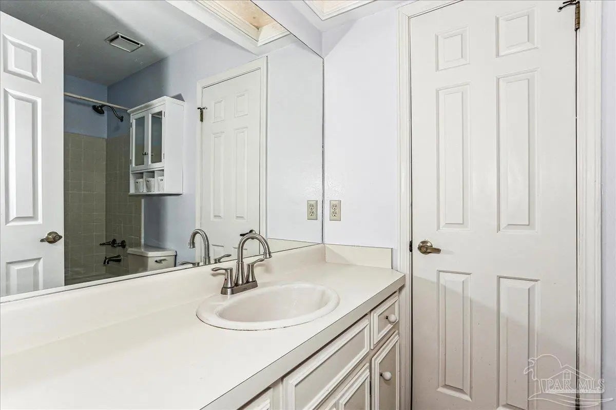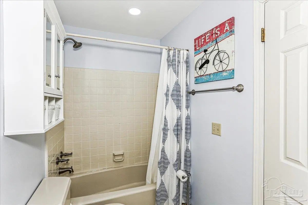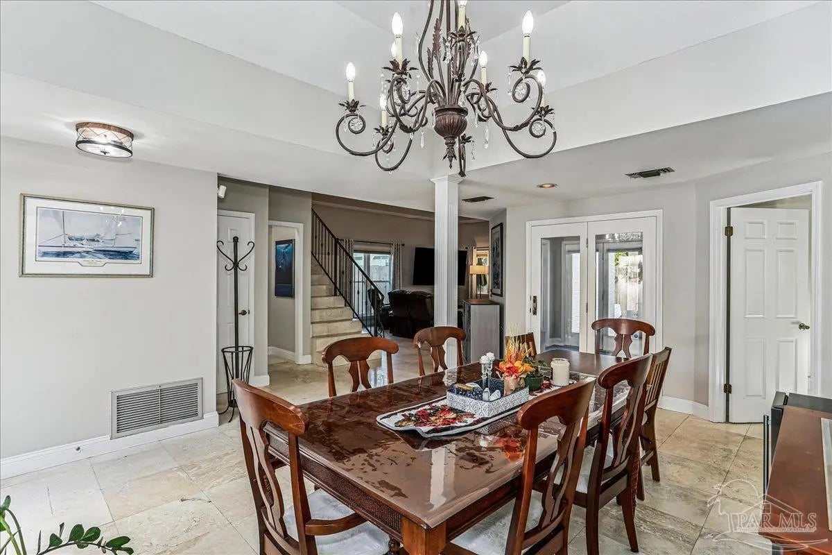 Welcome to this beautifully maintained 3-bedroom, 2.5-bath home in the sought-after Chantarene subdivision, perfectly situated just a short golf cart ride to Pensacola Country Club. Designed for both comfort and convenience, this home features a first-floor primary suite along with a separate home office, ideal for today’s flexible lifestyle. Travertine flooring flows throughout most of the home, with carpet limited to only the two upstairs bedrooms. The spacious kitchen offers abundant cabinetry and a welcoming breakfast area, making it perfect for everyday living and entertaining. Step outside to a low-maintenance yard featuring rock and pavers, a hot tub, and a privacy fence, creating a relaxing outdoor retreat with minimal upkeep. Residents of Chantarene enjoy deeded access to Pensacola Bay, adding to the appeal of this waterfront-adjacent neighborhood. Additional highlights include impact-rated windows, a brand-new water heater, and a roof and HVAC system replaced within the last five years. Preventative termite treatment was even done in 2024! Conveniently located just 7 minutes from downtown Pensacola and 25 minutes from Pensacola Beach, this home offers an unbeatable blend of location, lifestyle, and peace of mind. A rare opportunity to enjoy refined living close to golf, water access, and all that Pensacola has to offer.