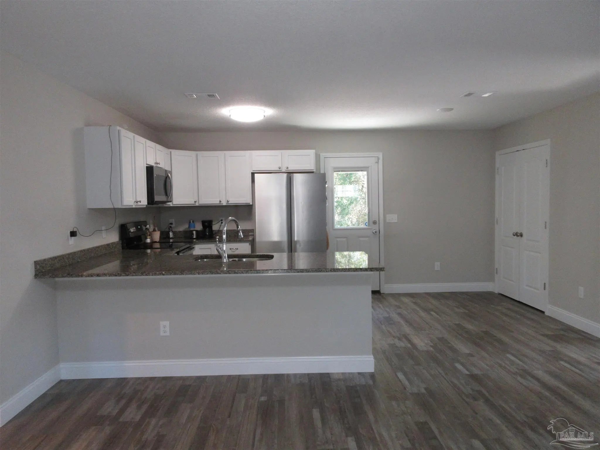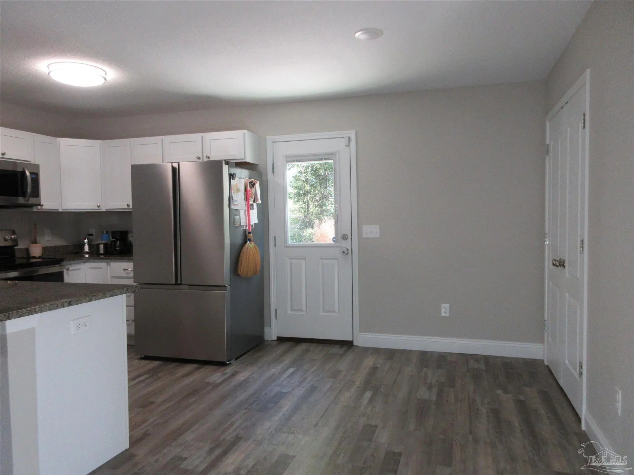 Custom Home with tons of extras only 2 Years Old: All Brick home on .36 Acre lot. Enjoy morning coffee on the 18' front porch. Enter the home into an open floor plan with No Wasted Space. Double Window in the Great Rm makes it light & bright, room for the biggest Flat Screen TV & large family gatherings. Kitchen features 13 Solid Wood Cabinets + 2 Corner Lazy Susans, 4 Drawers, Gorgeous granite counters & 8'6" Bar open to the great rm. Deluxe stainless steel appliances makes cooking a pleasure. Dining or office area has a double closet or pantry & french back door for easy access to an oversized Patio. Private Main Bedroom can accommodate large furniture and has: two windows, ceiling fan & a large walk in closet. Main Bath has a custom tile shower, high vanity with solid surface vanity & a linen closet. On the other size of the home are 2 good size bedrooms with large closets & ceiling fans, a linen closet & large 2nd bath room with a tub/shower combo & storage over the toilet. Large inside laundry with shelf plus the wash & dryer are included or stay with the home. Storage isn't an issue with the 1 car garage & attic storage. Street parking isn't necessary with the double wide driveway. 15' & 23' side yards allow easy access to the HUGE BACK YARD. Half is wooded enduring privacy and a great play area for the children. Fast Gun is in the back of the subdivision with very little traffic allowing children to be safe. Low Maintenance Home, cheap insurance, quiet area + Seller will help with the buyer's closing cost or the VA loan is assumable to a vet that can release eligibility & liability. Milton offers: Community center with activities, BMX Track, Skate Park, 11 mile heritage walking trail, playgrounds, boat ramps, dog park and soooo much more. Lots of good info in the Document section including the floor plan & survey. Call to see this home now.