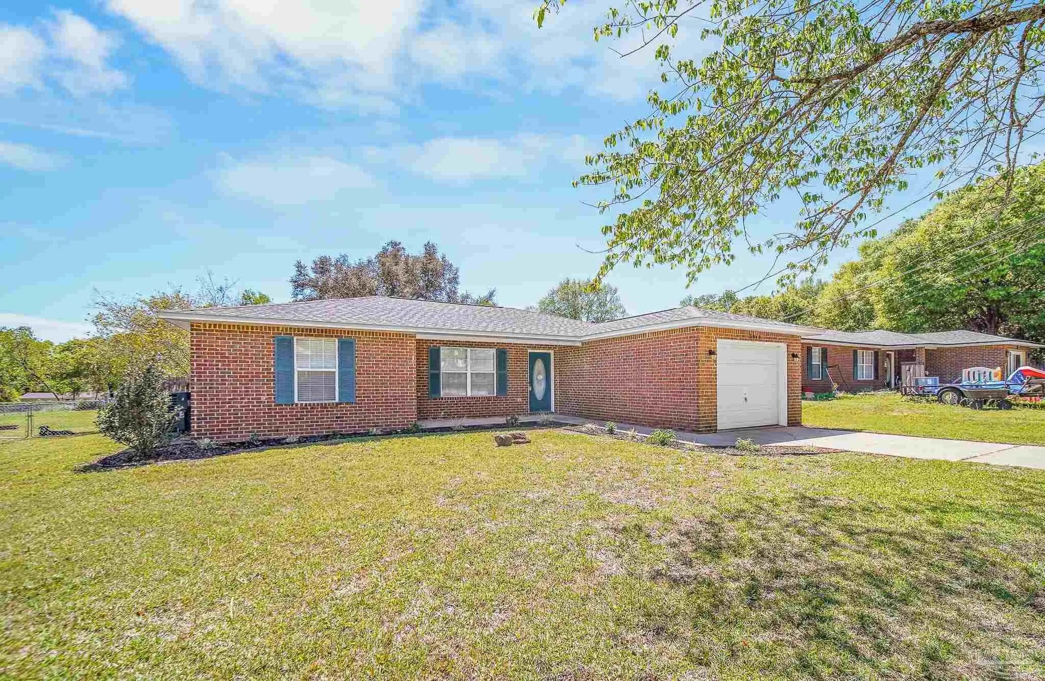 Southern and contemporary meet in this beautiful home! The living room boasts a faux brick accent wall, and flows to the breakfast/kitchen area which is flooded with natural sunlight from the expansive backyard. For your convenience there is an indoor laundry room with an "as is" washer and dryer already hooked up. The master bedroom features a wood accent wall, walk in closet, and private bath, located off of the kitchen. The two additional bedrooms are located across the house and feature beadboard and shiplap accent walls of their own. The home sits on a beautifully landscaped (.45 acre) lot, complete with a fenced back yard and beautiful mature trees. Small pet oaky with owner approval.