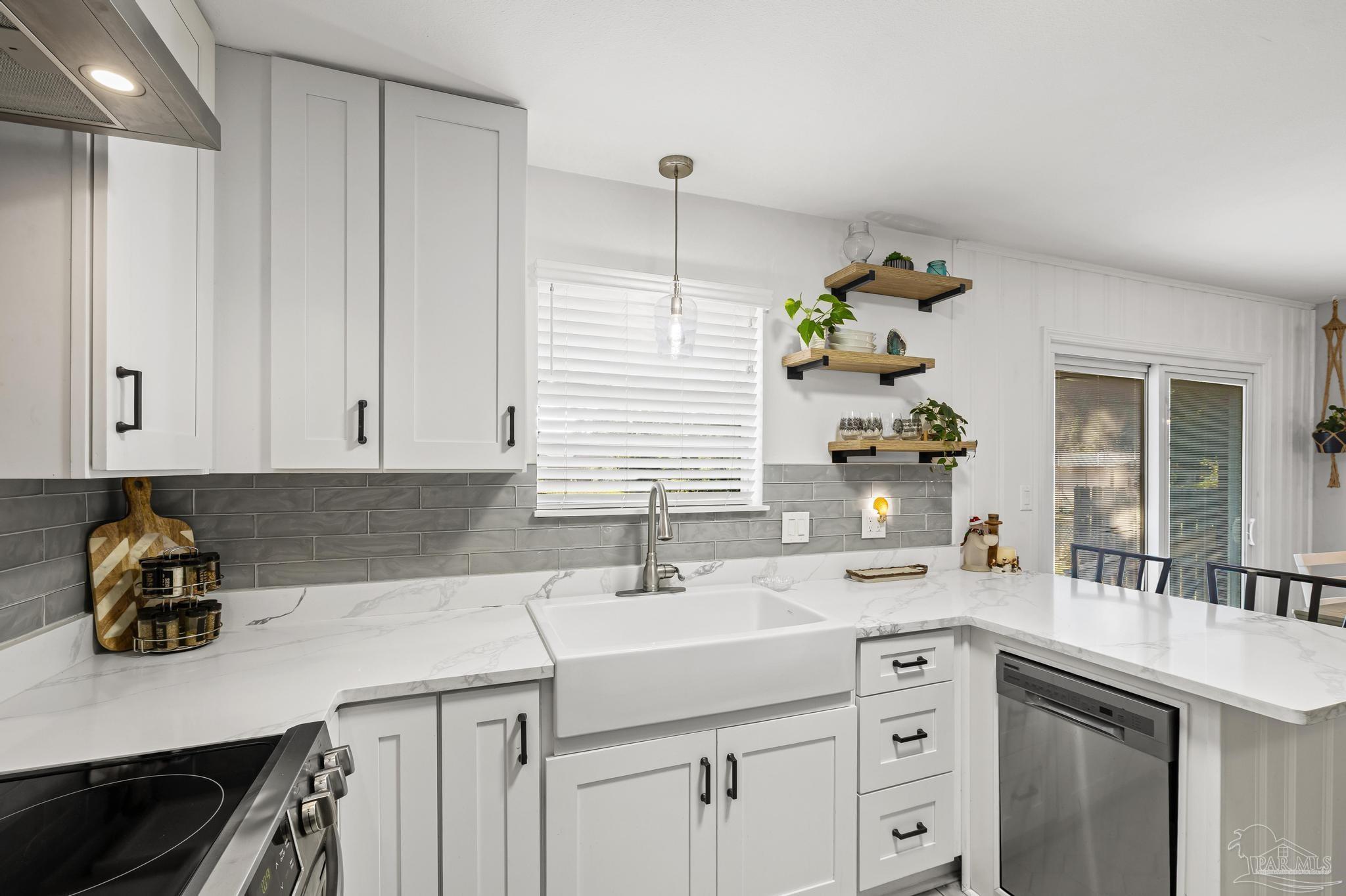 Welcome to the Hyde Park waterfront community, with two marinas for boat lovers, waterfront park, playground, and picnic area, 5 min to Pensacola downtown, Maritime Park, restaurants, entertainment, shopping, 5 min to I-10, and close to the famous Pensacola beaches. This solid brick home sits on a large 0.43-acre lot, Home offers large backyard with large workshop area. The original hardwood floors have been refinished. open floor plan, woodburning brick fireplace in the den. Open Kitchen has a breakfast bar, and a breakfast nook overlooking your back yard. Entire kitchen has been updated. New Cabinets, quartz countertops, farmhouse sink and flooring. Both bathrooms have been updated as well. New Vanities, toilets, tile showers, flooring and a reglazed bathtub. Entire home has had a fresh coat of paint, new baseboards, new hot water heater and all new doors. HVAC was replaced a few years ago. Entire home has been rewired and plumbed with PEX piping. The home is on a raised foundation which allows easy access. New roof will be installed prior to closing at this price. Their loss your gain!!!! Call today for your personal tour!