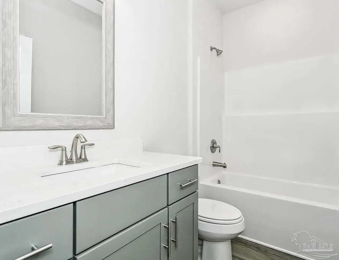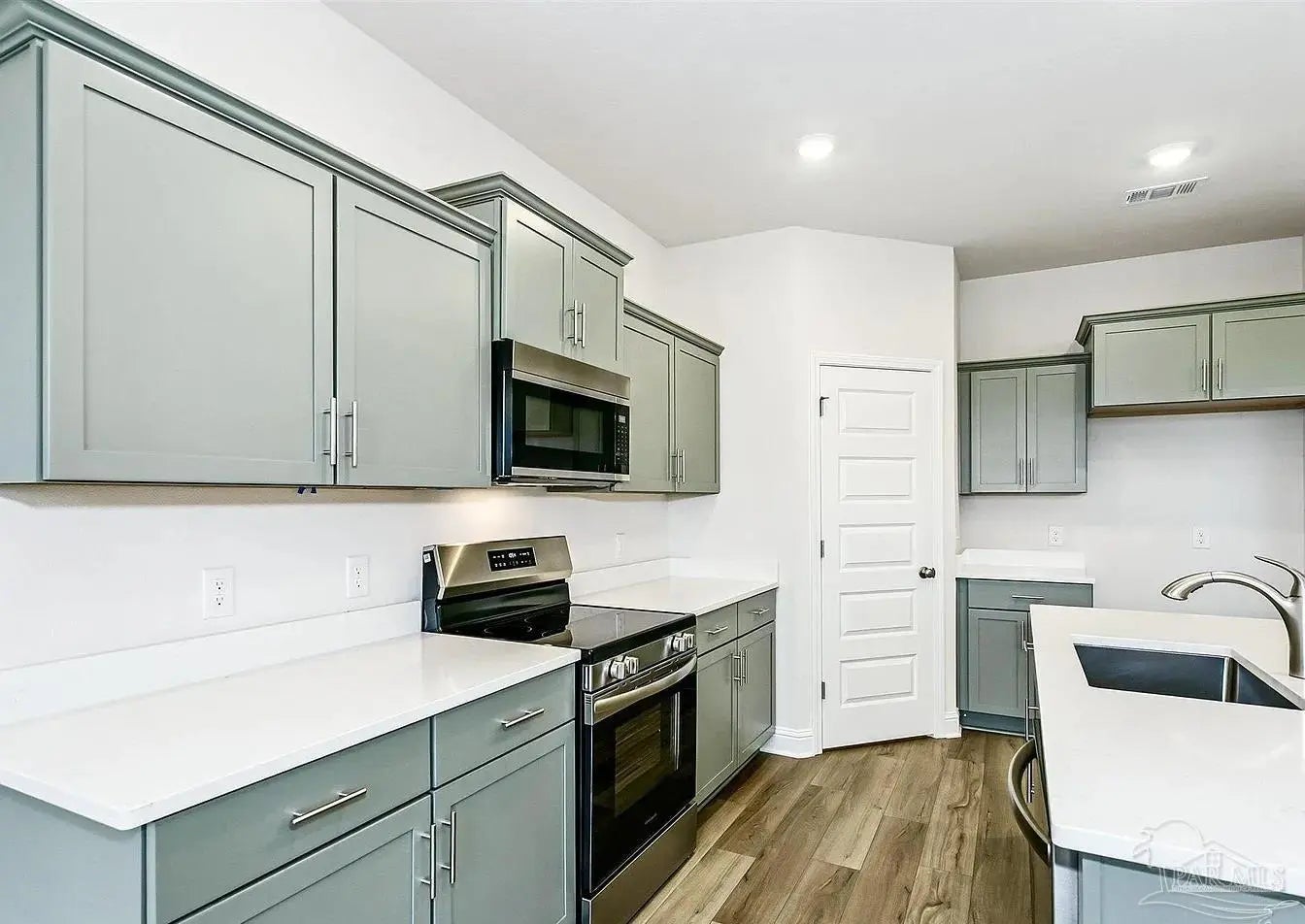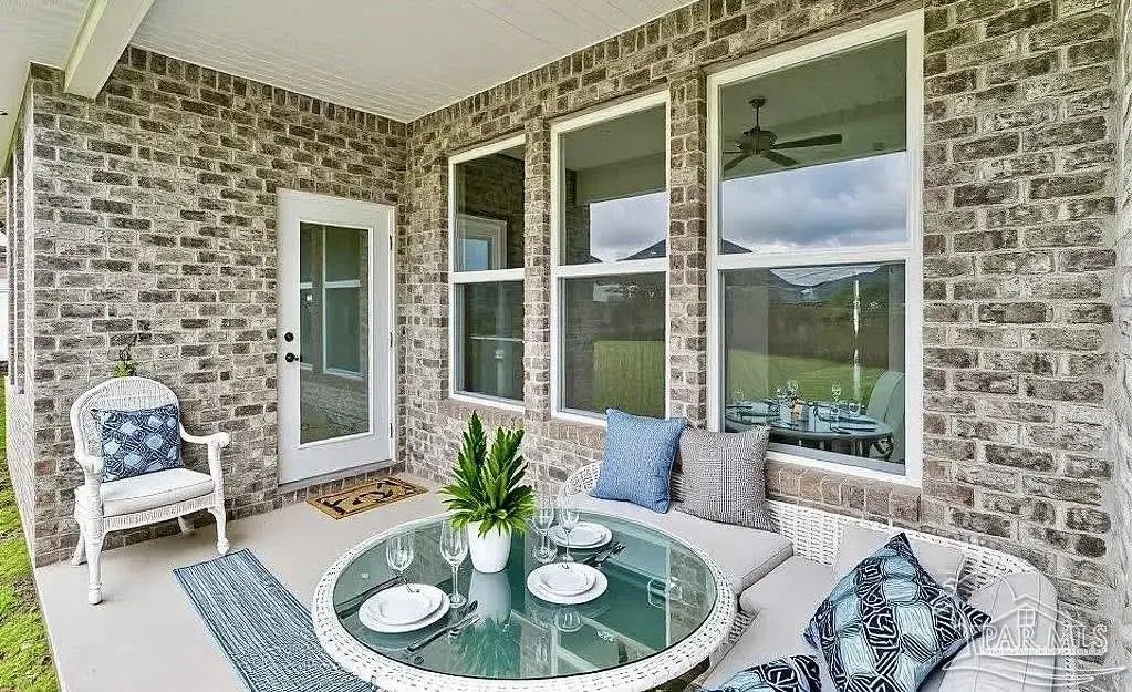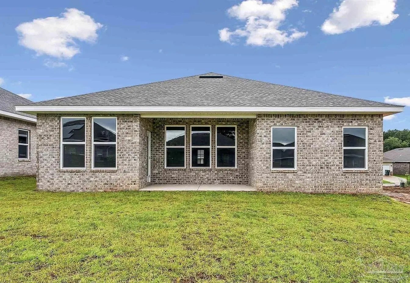 You absolutely must see these homes in person! NEW CONSTRUCTION in the prestigious Bentley Oaks Neighborhood. FOUR SIDES BRICK, 9 ft ceilings. This home is a showstopper! 1706 sq ft in Bentley Oaks. Conveniently located minutes from I-10, easy commute to bases, downtown and to the beach. The Dogwood floor plan has 3 bedrooms, and 2 baths. The design has an open kitchen with large prep island and the popular Shaker Style cabinets. These gorgeous cabinets are real birch wood, full overlay, dovetail tongue and groove with soft close doors and drawers. This home stands out with white quartz, Carrera frost, 3 cm counter tops in kitchen and bath and Stainless appliances are featured in kitchen, as well as brushed nickel bar pulls on cabinets. A built-in microwave is also included. The breakfast room has easy access to a private and spacious, covered lanai, perfect for entertaining, a wonderful pantry and LED lighting makes meal prep a dream. The master suite has trey ceilings and ceiling fan. Deluxe master bathroom has a 5 ft shower, luxury quartz counters, framed mirrors over sinks, LED ceiling lights, and large walk in closet. Shaw, floating, beveled LVP, in all areas except carpet is in bedrooms and bedroom closets. Double garage, 30 year architectural shingles, energy efficient double pane vinyl windows, storm shutter window protection, and covered by StrucSure, a 10year limited warranty. Call today to view this gorgeous home. Photos are representative of same floor plan. We have move in ready homes.