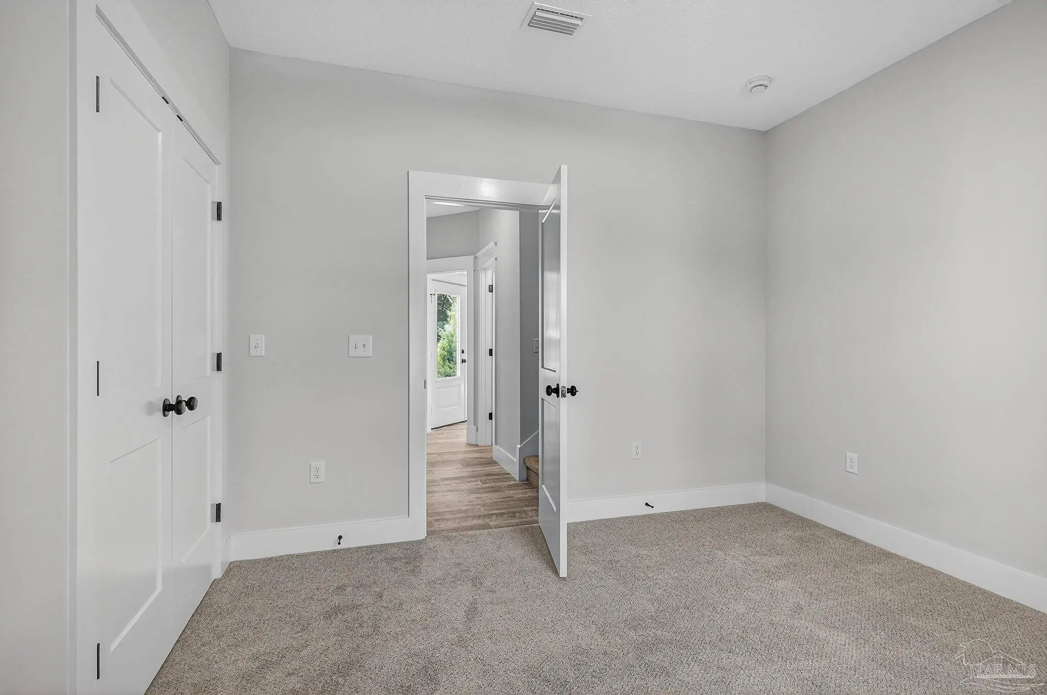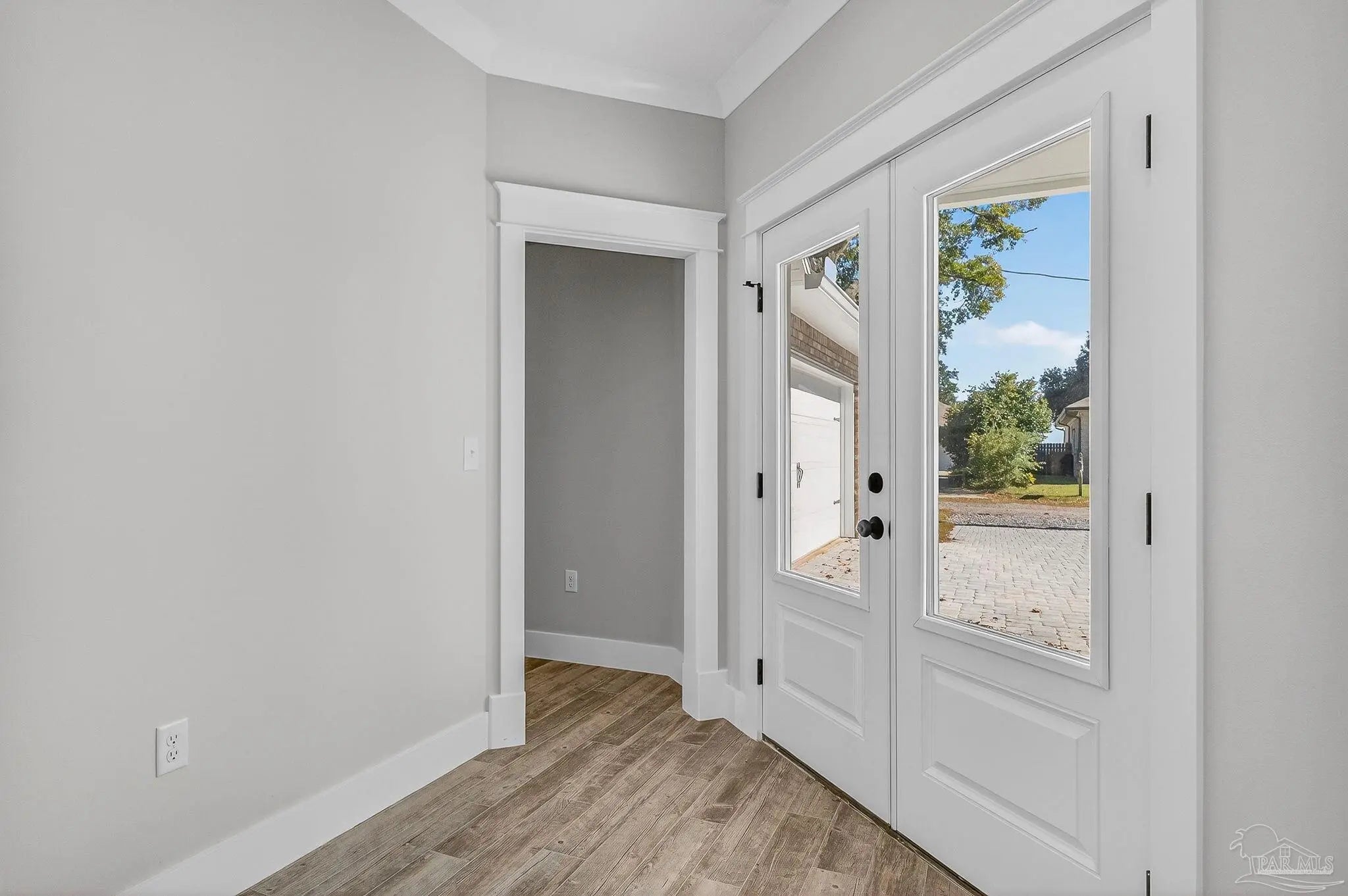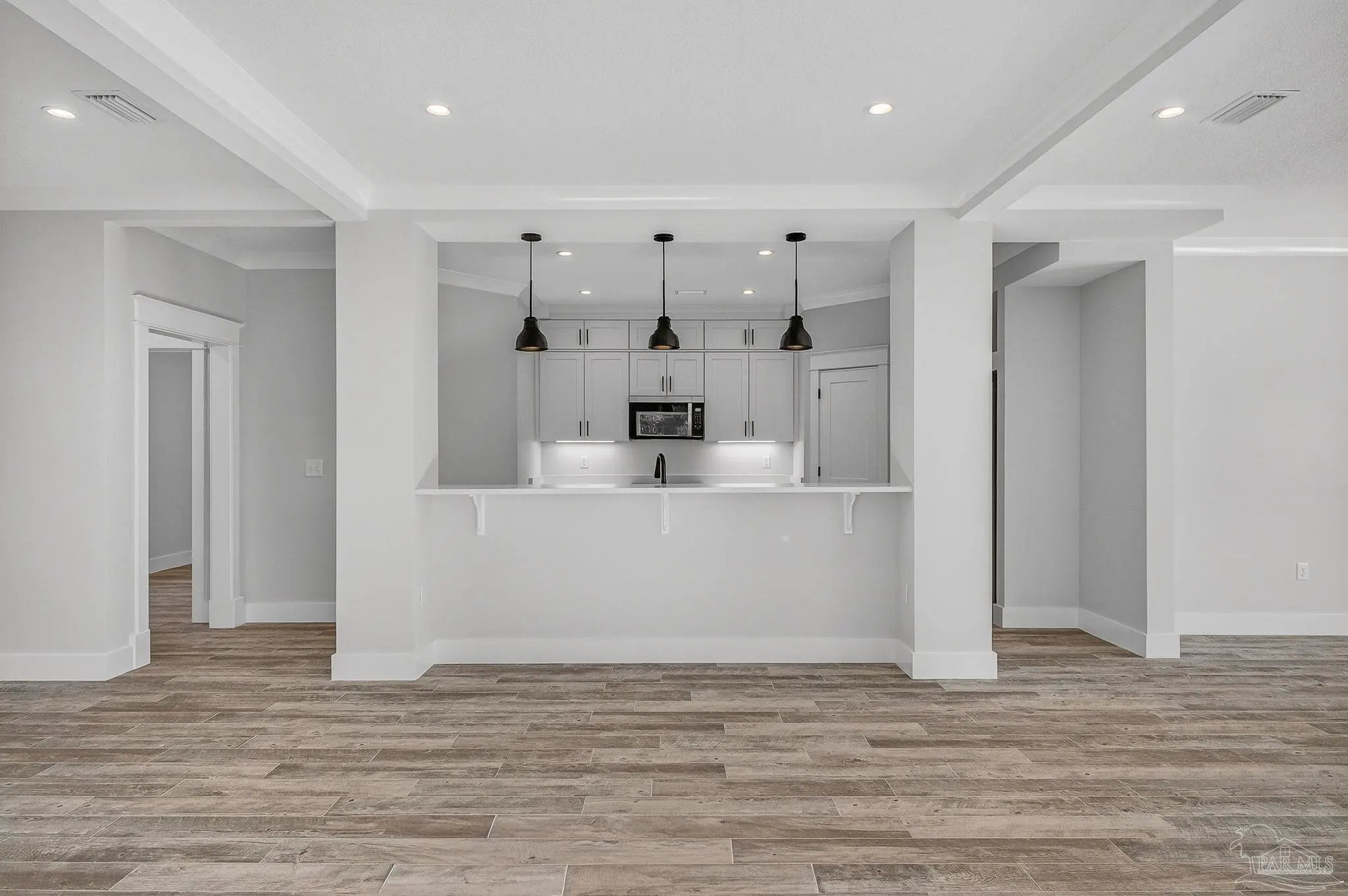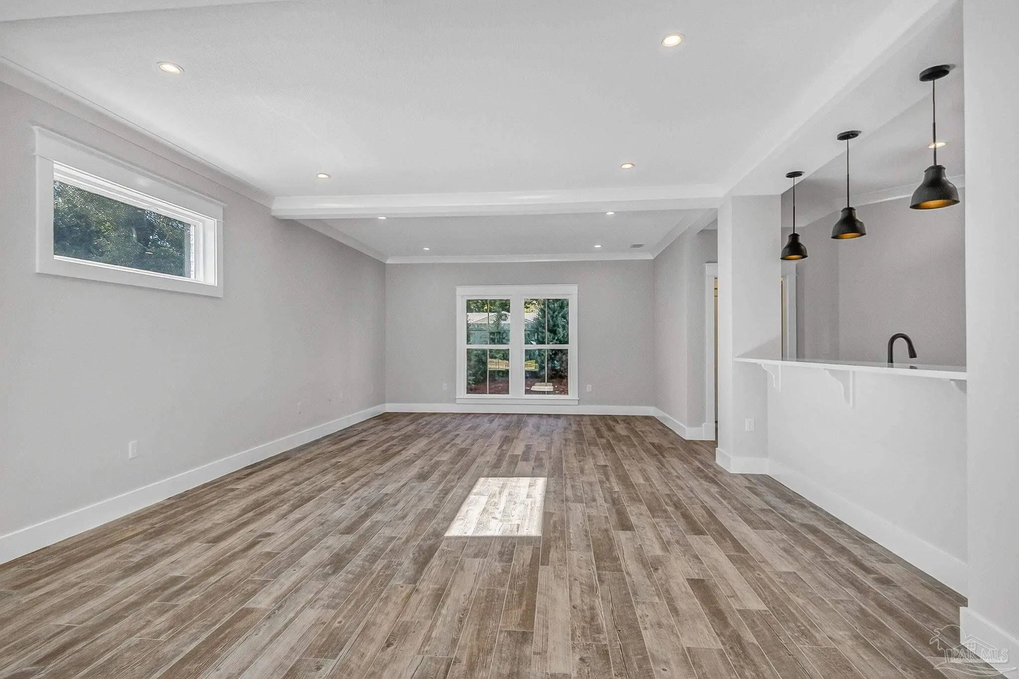 This newly built home is conveniently situated just minutes from local shopping and dining options, including a grocery store, bakery, bistro, and more. It offers a charming coastal vibe and is only a short drive to downtown Pensacola and Pensacola Beach. The inviting paver driveway leads up to the house and the side-entry two-car garage. Under the covered front porch, you'll find the main entrance, which welcomes you with plenty of natural light and high ceilings. The open concept living room and kitchen are on the main floor, along with the primary suite, a full guest bathroom with a tile wall shower, a guest bedroom, and a laundry room. The kitchen features modern white cabinets, quartz countertops, a stainless steel gas range, refrigerator, dishwasher, and a full pantry with built-in shelves. Both the kitchen and living room have wood-look tile plank flooring. The primary suite offers a spacious bedroom with a tray ceiling and soft ambient lighting, tile flooring, and peaceful views of the lush backyard trees. The primary bathroom includes a double vanity with quartz countertops, a relaxing free-standing tub, and a beautiful tile shower with a frameless glass door. It also provides two closets for plenty of storage. Upstairs, there's a full bathroom with a tile wall shower, two additional bedrooms, and a versatile bonus room with a linen closet. The South-facing upstairs bedroom has a partial water view of the Bay. The roof and exterior walls feature upgraded insulation. Out back, you'll find a privacy fence, an open patio, and vibrant landscaping that offers both sound dampening and privacy. Additional features include impact-resistant windows and front door, a tankless gas water heater, and yard sprinkler system. Schedule a showing to see this home today!