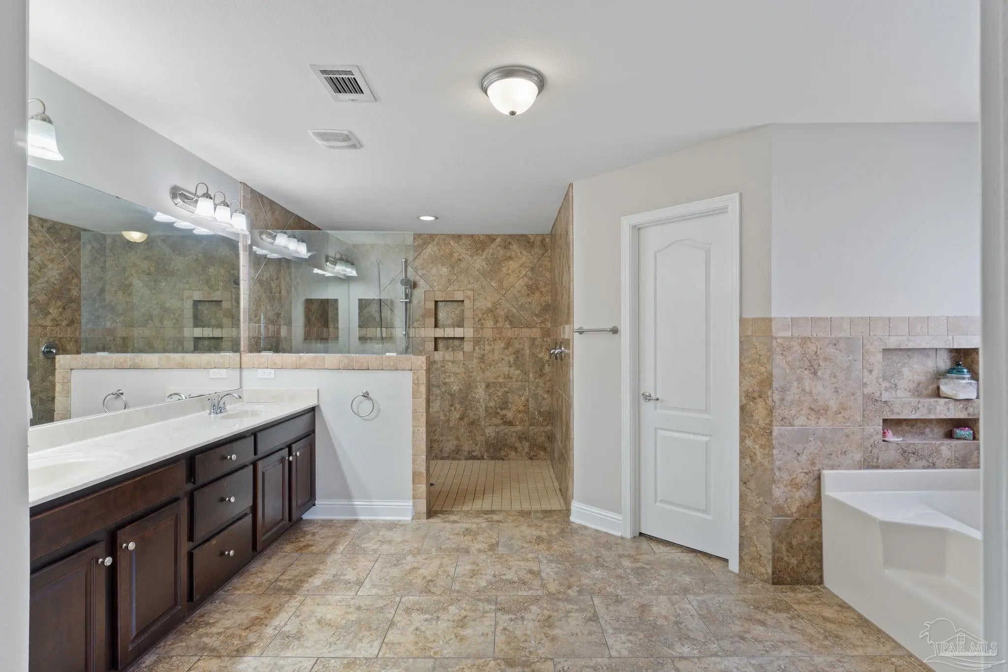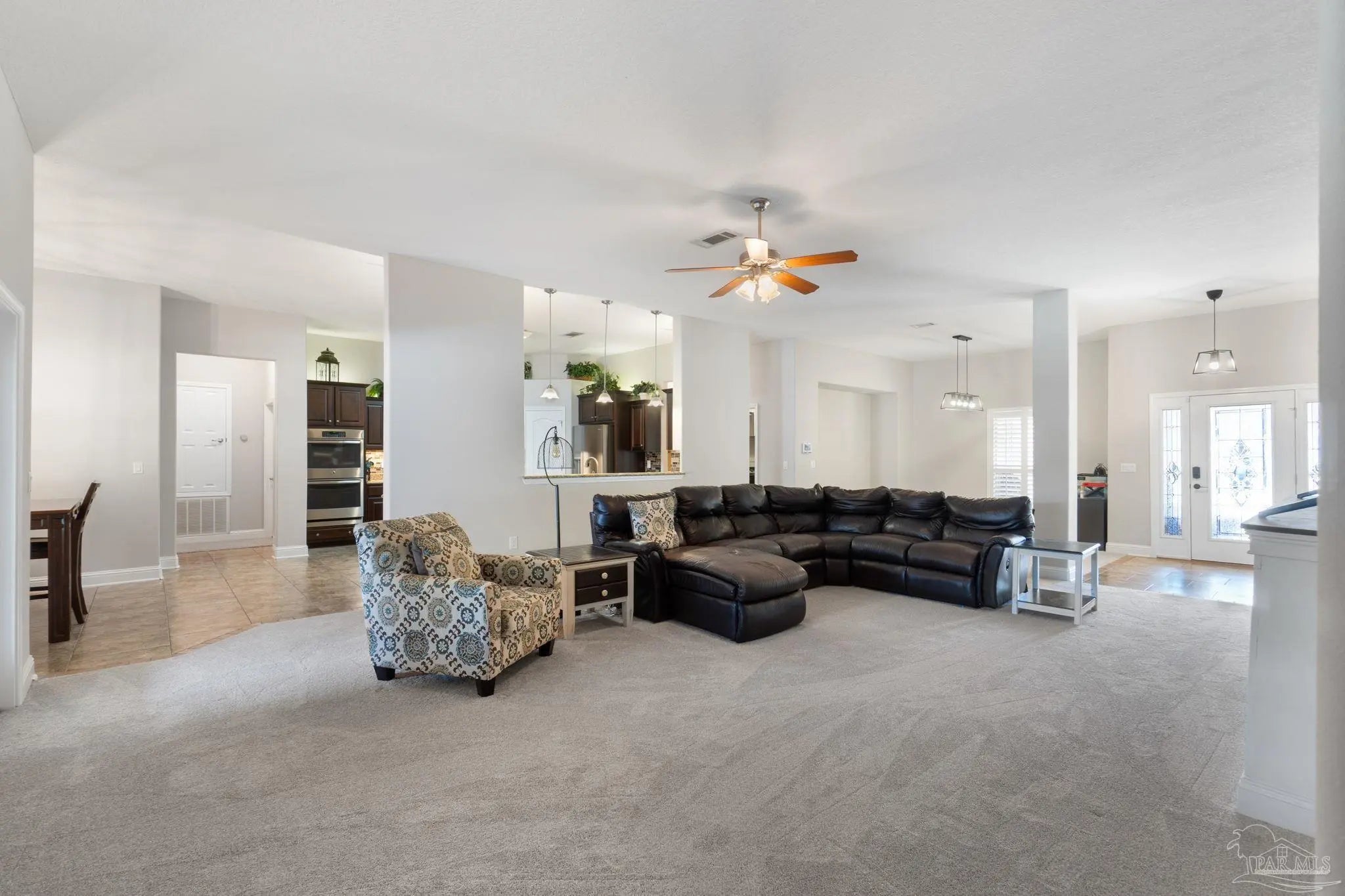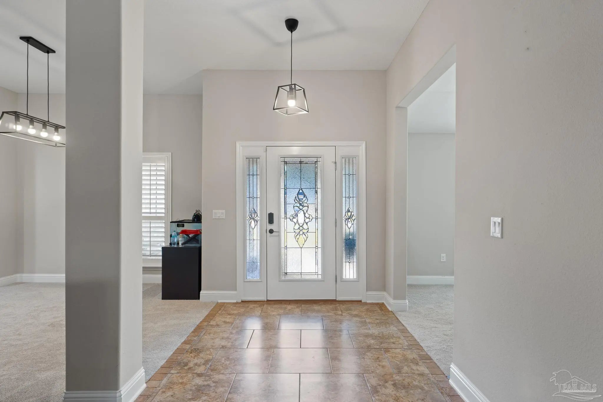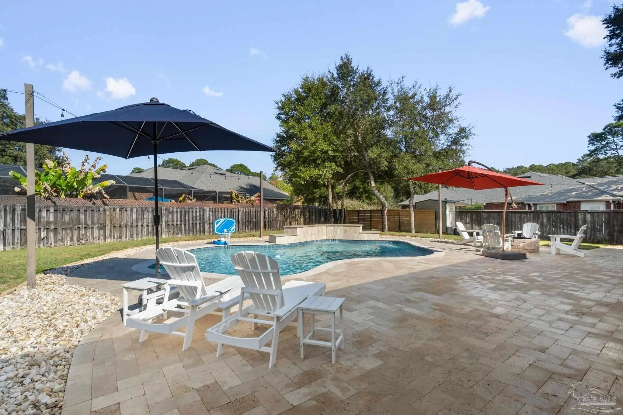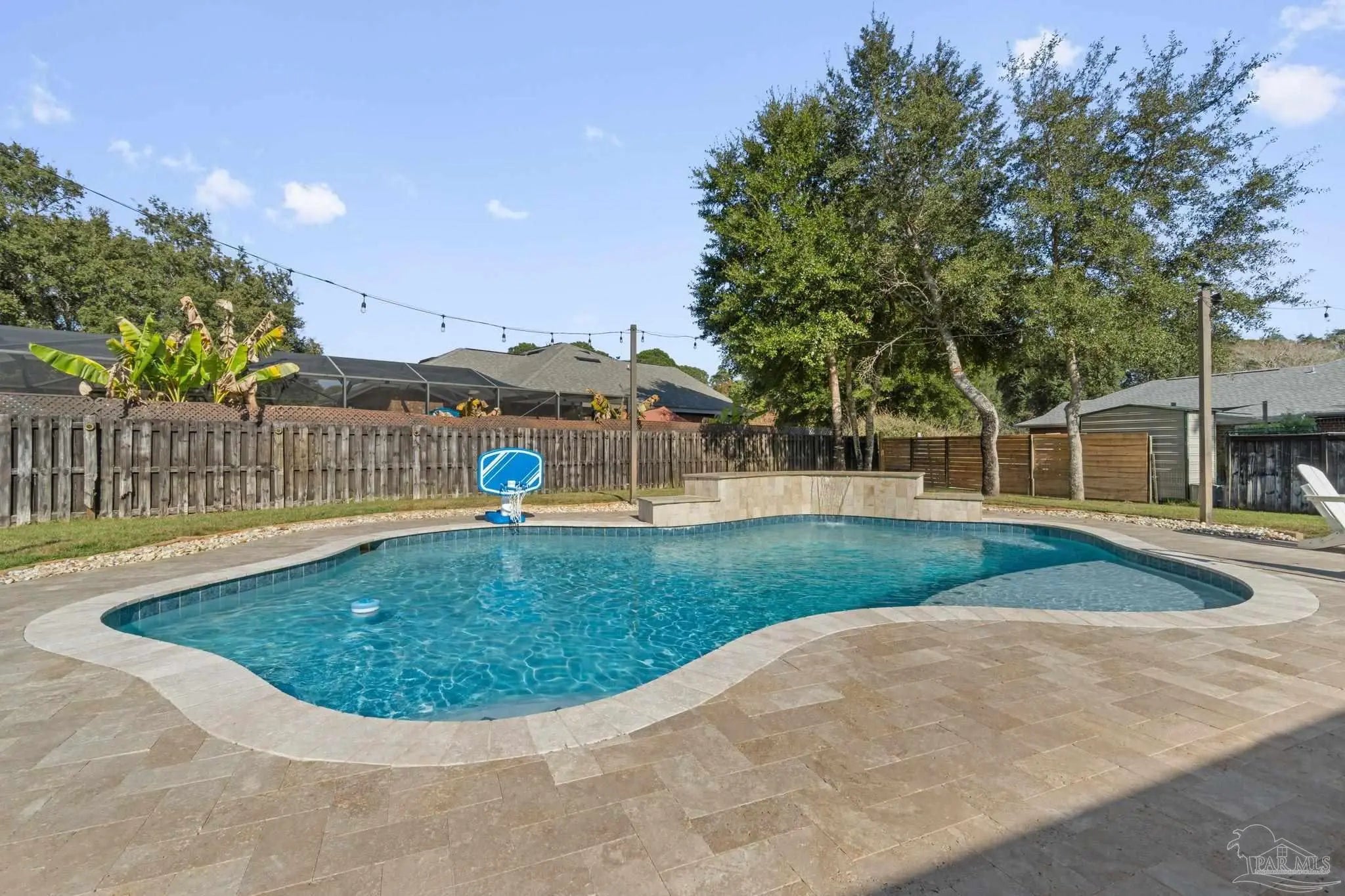 Stunning Pool Home on a Corner Lot in Hidden Creek.Welcome to this beautifully updated, freshly painted pool home, ideally situated on a desirable corner lot in the sought-after Hidden Creek community—known for underground utilities, pristine surroundings, and exceptional clubhouse amenities. Recent updates include new carpet, plantation shutters, remodeled bathrooms, a new dishwasher, and a new water heater, offering comfort, value, and peace of mind.Step inside from the inviting covered front porch to 10-foot ceilings and a bright study or formal living room filled with natural light from a wall of triple windows. The formal dining area flows seamlessly into the spacious family room and features a recessed display nook with accent lighting—perfect for showcasing artwork or décor.The well-designed kitchen overlooks the family room, creating an ideal layout for entertaining and everyday living. Features include double wall ovens, a large island with power outlet, deep pot drawers, espresso raised-panel cabinetry with crown molding, stylish over- and under-cabinet lighting, and a new dishwasher.The split floor plan provides privacy, with the expansive primary suite tucked away on its own wing. The suite offers private access to the covered lanai and pool, along with a luxurious bath featuring an oversized tiled walk-in shower with dual shower heads, soaking tub, double vanity, and spacious his-and-hers walk-in closets.Three additional bedrooms are generously sized, and the updated secondary bathrooms are thoughtfully placed—one with direct access to the lanai and pool for easy outdoor living.Outside, enjoy Florida living at its best with a covered lanai, sparkling pool, extended paver patio, fire pit, and basketball court—creating a backyard designed for both relaxation and entertainment.As part of the Hidden Creek and Holley by the Sea community, residents enjoy access to pools, fitness center, tennis courts, fishing areas, playgrounds, and community activities.