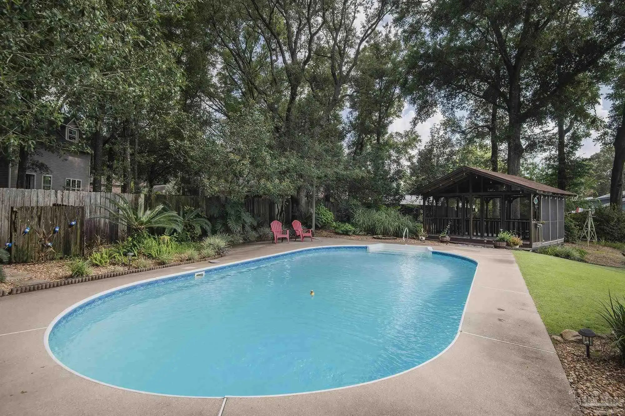 Welcome to your dream home! This charming 3-bedroom, 2-bathroom residence is the perfect haven for families who love the outdoors and enjoy entertaining. Nestled in a friendly neighborhood, this home offers both comfort and convenience. Step outside to discover your private outdoor oasis. The large, screened-in gazebo is perfect for family gatherings or simply unwinding while enjoying the serene surroundings. Take a refreshing dip in the sparkling swimming pool, or host summer BBQs on the spacious patio – the possibilities for outdoor fun are endless! Inside, you'll find a recently updated kitchen with brand-new countertops and modern appliances, making meal prep a breeze. This floorplan seamlessly connects the kitchen to the cozy living and dining areas, creating an inviting space for family time and entertaining guests. This home offers peace of mind with a new roof installed in 2021 and a new water heater added in 2022. Additionally, the 2-car garage provides ample storage and parking space. The generously sized lot is beautifully landscaped, offering plenty of room for kids to play and pets to roam. There is also ample storage in the detached building which also has electrical power for lights, charging etc. Located just minutes from shopping centers, top-rated schools, and hospitals, this home combines the best of both worlds – a peaceful retreat in a vibrant, convenient location. Don't miss the opportunity to make this stunning property your family's new home. Schedule a viewing today and start living the lifestyle you've always dreamed of!