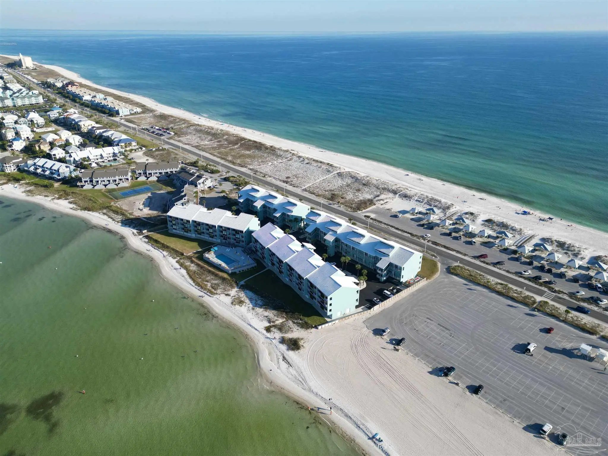 Prepare to fall in love with the unobstructed views from this west-end unit offering sweeping sights of both the Gulf and the Sound. Enjoy water views from two private balconies, along with year-round sunset vistas and endless views toward Fort Pickens National Seashore. The complex sits directly on the Sound, creating the feeling of living right on the water. This is a rare six-month lease opportunity, available March through September 1, 2026, during the most desirable months of the year. This is not a vacation rental, but a primary residence offered for a limited long-term stay. Residents can relax by the heated Sound-front pool, enjoy elevator access and covered parking, and walk just minutes to both the beach and the Sound. Inside, vaulted ceilings and floor-to-ceiling windows flood the home with natural light and highlight the stunning views. The unit is beautifully decorated and move-in ready. The primary suite on the lower level features a jacuzzi tub and serves as a private retreat, while the guest bedroom is located on the opposite side of the unit for added privacy. The complex has recently completed a multi-million-dollar renovation, enhancing both aesthetics and amenities. By day, watch boats glide by from your windows or balconies. At night, enjoy the sparkle of city lights reflected across the water. All utilities are included besides power.