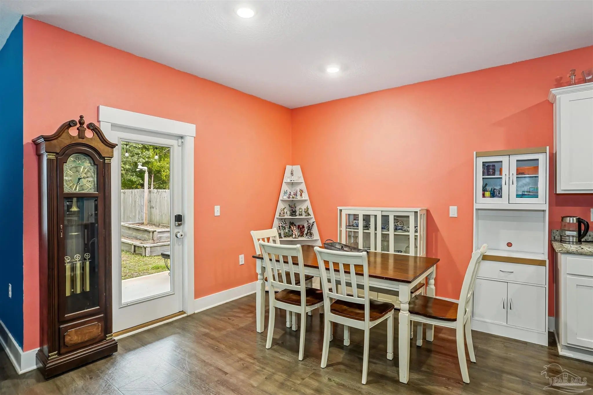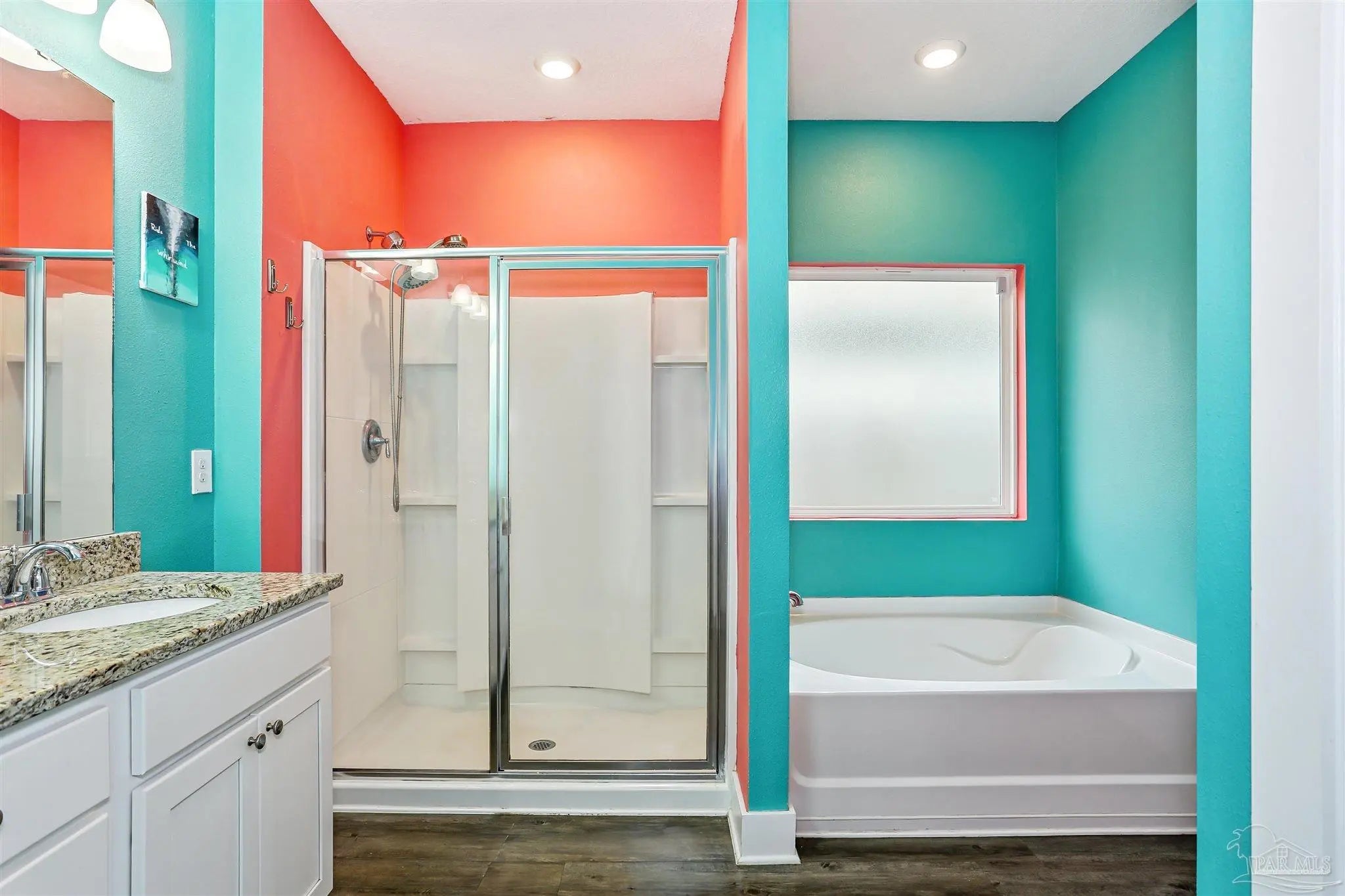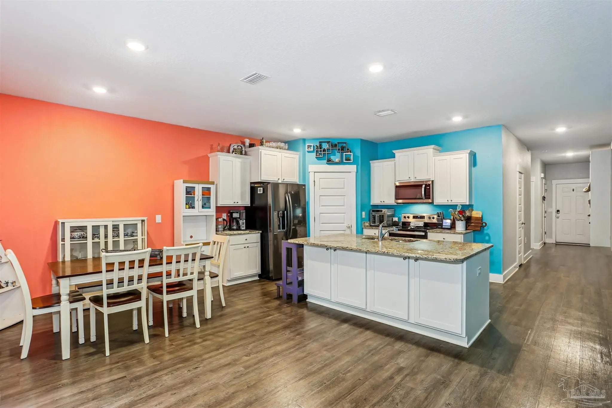 A beautifully maintained Craftsman cottage in Arbor Place, this home pairs a popular open floor plan with the charm and convenience of a community that offers sidewalks, underground utilities, and a sparkling pool for those sunshine filled Florida days. Only a few years old, the home features over 1,800 sqft with 4 bedrooms and 2 baths, designed for effortless living. The kitchen, dining, and living areas flow together seamlessly—perfect for family time, entertaining, or unwinding at home. The kitchen shines with a granite topped island, stainless steel appliances, and an L shaped corner pantry ideal for organized storage. A stunning tray ceiling elevates the living room, while the dining area opens to a covered porch overlooking the covered porch and the backyard. Back yard enjoys a dedicated area for fire pit to enjoy our chilling winter nights. Luxury vinyl plank flooring adds style and easy maintenance throughout the main living areas. The wide foyer and custom built in credenza create a welcoming first impression. A split bedroom layout places the primary suite at the back of the home, complete with its own tray ceiling, oversized closet, and a spa like bath featuring a floor to ceiling shower, separate soaking tub and water closet. Three additional bedrooms up front offer newly installed carpet, ceiling fans, and generous closets. With Hardiplank siding, hurricane protection for all windows, a laundry room, and a 2 car garage with extra storage, this home blends comfort, durability, and thoughtful design in one inviting package.
