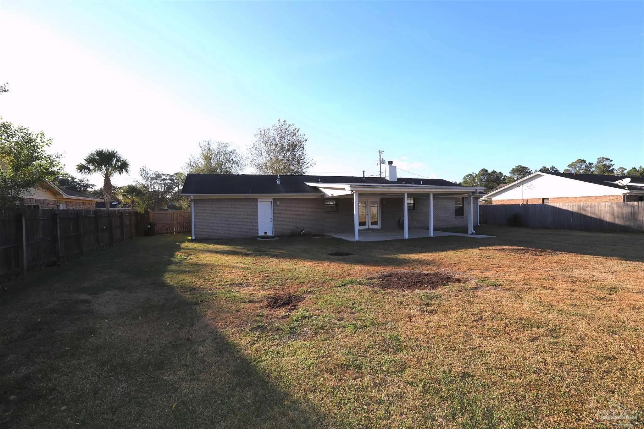 Move in ready 3 Bedroom/2 Bath home located in a quiet neighborhood . Freshly painted and all Wood looking Tile throughout, featuring a large master bedroom with walk in closet, New double vanities and a separate private bath. There are 2 bedrooms on the other side as well as a Great room with a wood burning fireplace. Also has a eat in kitchen who's dining area leads out to a covered patio and a large privacy fenced yard. The kitchen is equipped with a New stove, dishwasher, fridge, and New microwave oven. Other features include a 2 car garage & separate laundry room. Located just minutes from NAS Pensacola, the Naval Hospital & Exchange Mall, the beautiful white beaches of Perdido Key, and area shopping. Sorry No Cats!