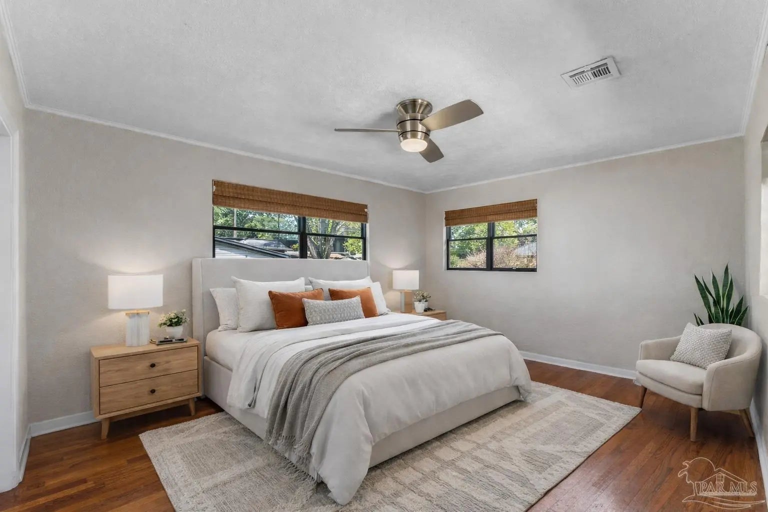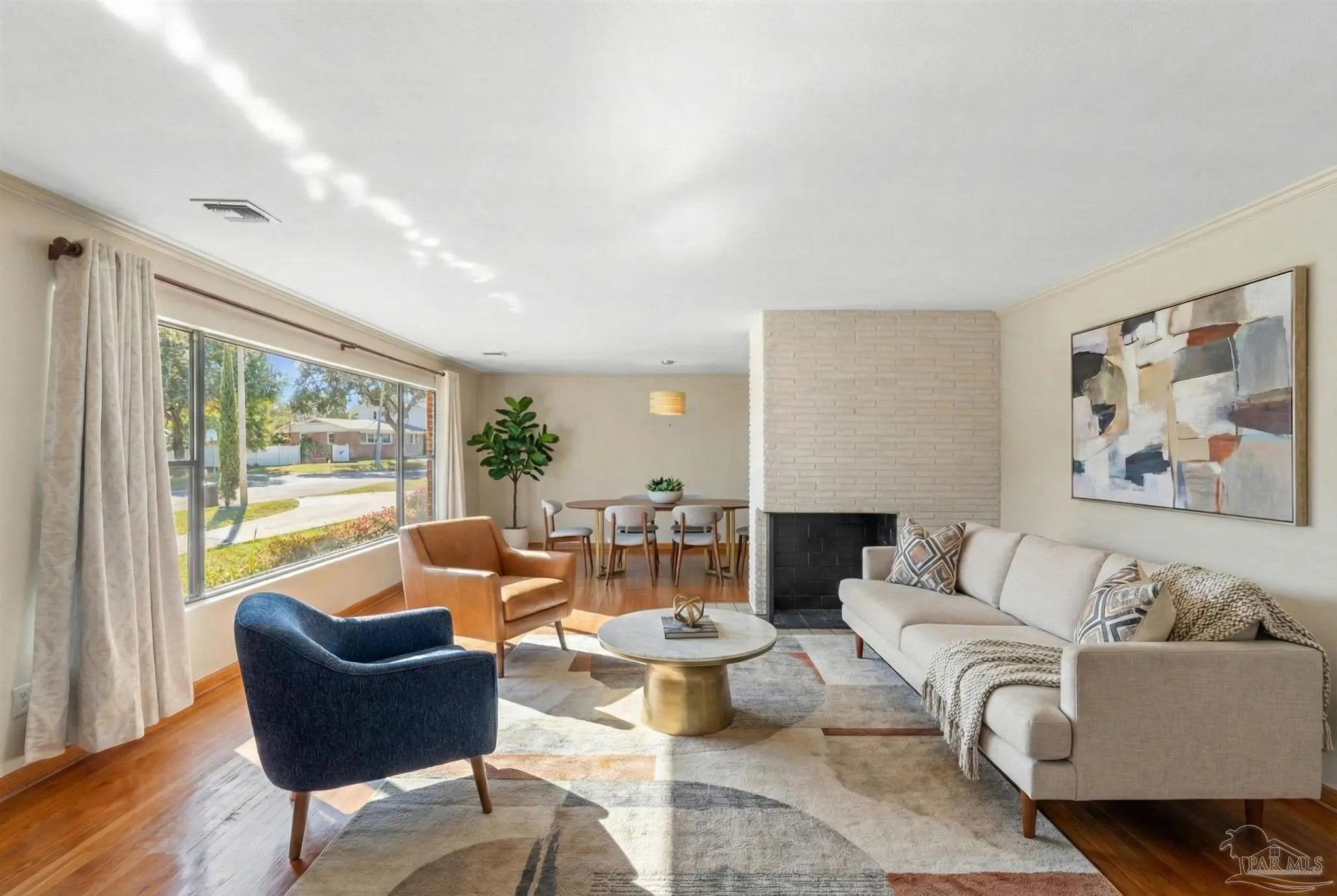 Open house scheduled for Saturday December 27th, 2-4pm. Prime location in North Lakeview next to the coveted East Hill neighborhood with plenty of space! This home offers 4 bedrooms, 2 bathrooms and has 3 different living spaces in addition to a 2 car garage with a workshop (with 220 volt service) and split hvac and extra storage space. So much mid-century modern charm with gorgeous original hardwood floors in pristine shape, even the bathrooms have original tile work in exceptional condition. Much of the home has been updated in all the right places with many amazing touches. Outside, the yard is fully fenced with a privacy fence, a storage shed and another shed and space that can be turned back into a chicken coup if desired. Plenty of space behind the extra wide gate to park a small boat or jet skis on concrete pad. A new circular driveway was added to the front of home for additional parking with new landscaping. Roof 2024, HVAC's 2013 and 2022, Tankless HWH 2021 and see documents for full list of upgrades to the home. Enjoy this beautiful home in some of its original natural beauty and charm or upgrade and modernize to your liking. This home is located just blocks from Wisteria and East Hill Wine Bar and local parks. Also, just minutes from shopping and hospitals and less than 4 miles to downtown Pensacola and 15 minutes to Pensacola Beach. Please see 3D virtual tour and call today to schedule a private tour of this beautiful home in a great location!!