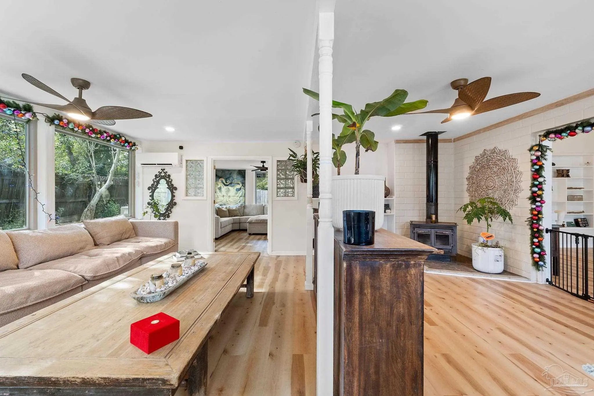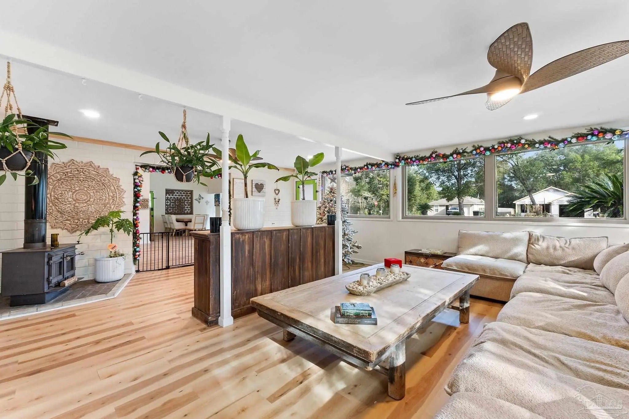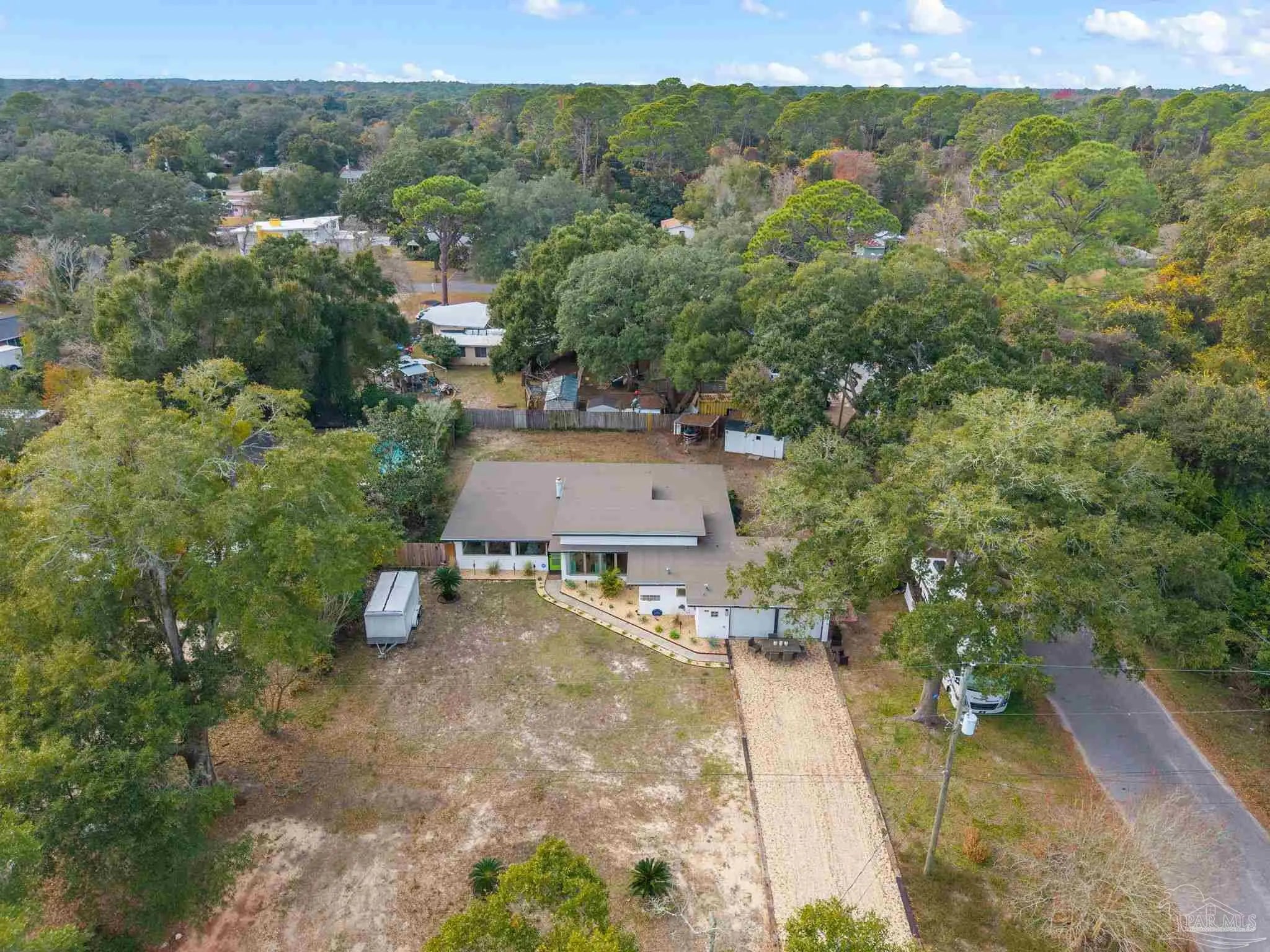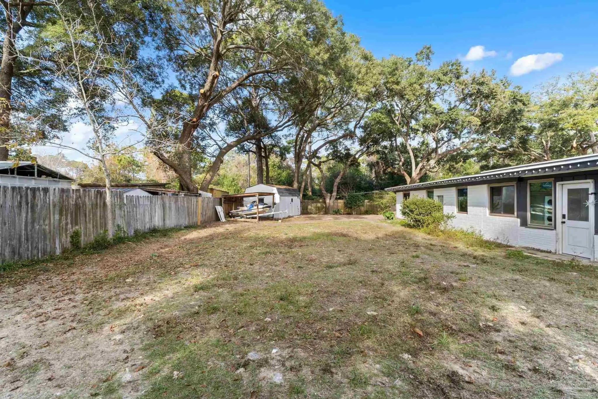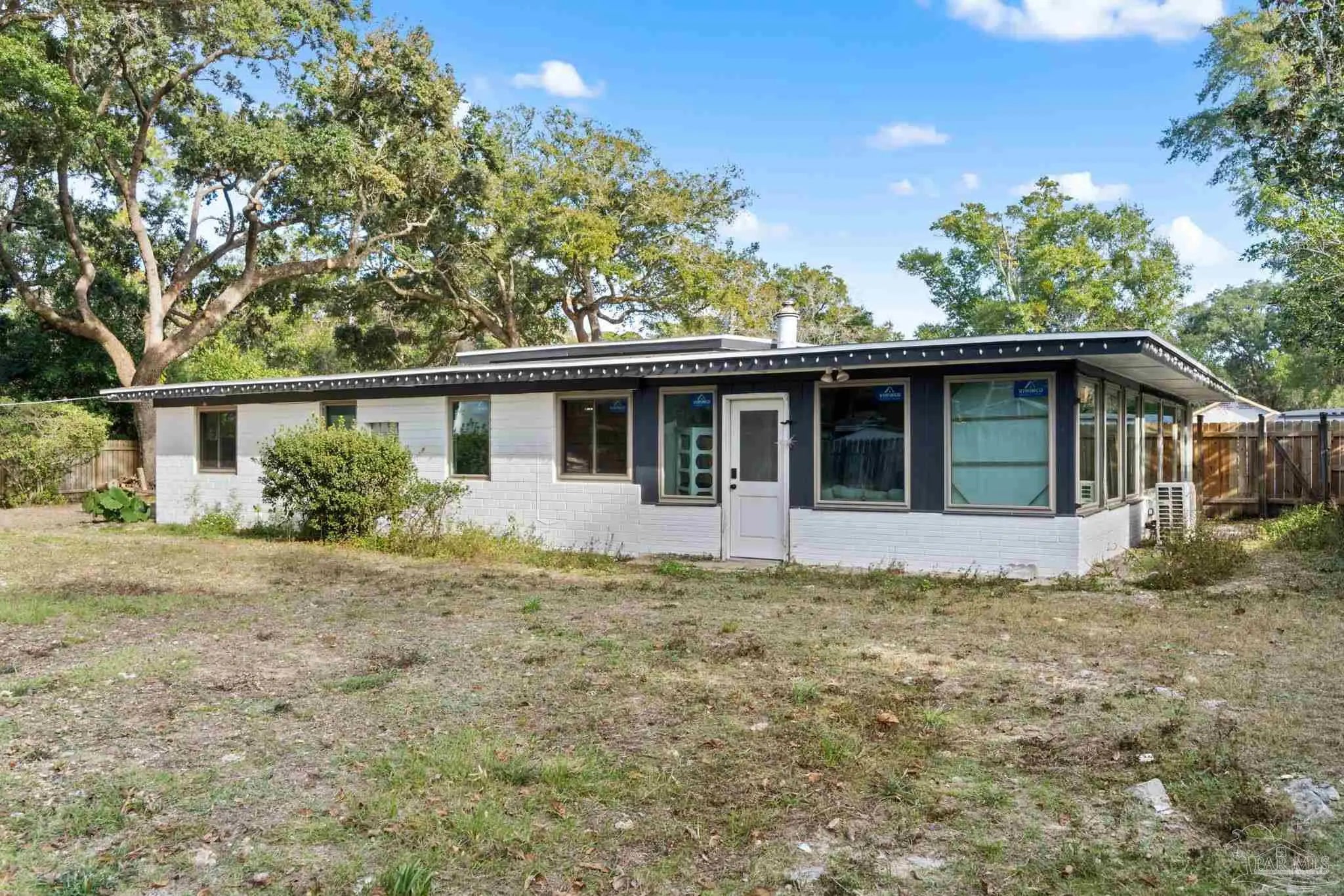 Discover modern charm and timeless design at 415 BREMEN AVE, a beautifully updated contemporary home with a distinctive Frank Lloyd Wright–inspired feel, situated on a spacious 100 X 140 DOUBLE CORNER LOT in the heart of Beach Haven. This exceptional property has been thoughtfully updated with a NEW ROOF, BRAND NEW IMPACT WINDOWS (INSTALLED THIS SUMMER), BRAND NEW WHOLE HOUSE GENERATOR, HVAC SYSTEM, KITCHEN, AND BATHROOMS, and CERAMIC TILE FLOORING IN THE KITCHEN AND BATHROOMS, offering both peace of mind and stylish living. Step inside to a warm and inviting interior featuring a WOOD-BURNING FIREPLACE, tall ceilings in the formal living and dining areas, and a bright, open LARGE DEN WITH AN ADJACENT ENCLOSED FLORIDA ROOM—ideal for everyday living or entertaining. The EXTRA-LARGE BEDROOMS provide comfortable private retreats for family and guests alike. Outdoors, the FULLY FENCED BACKYARD offers endless possibilities, with ample space to create a pool, outdoor entertaining area, or lush garden oasis. The generous DOUBLE LOT PROVIDES AMPLE SPACE FOR STORING OUTDOOR TOYS INCLUDING BOATS AND JET SKIS, a rare find in this area. Enjoy easy access to the water with BOAT RAMPS JUST A THREE-MINUTE DRIVE AWAY, and take in a truly unique local experience as you WATCH THE BLUE ANGELS FLY OVER AND PRACTICE from the comfort of your own property. Ideally located just minutes from PERDIDO KEY BEACHES, SHOPPING, AND DINING, this home perfectly blends contemporary updates with classic architectural appeal. A rare opportunity to own a move-in-ready home on a generous lot in a highly desirable location.