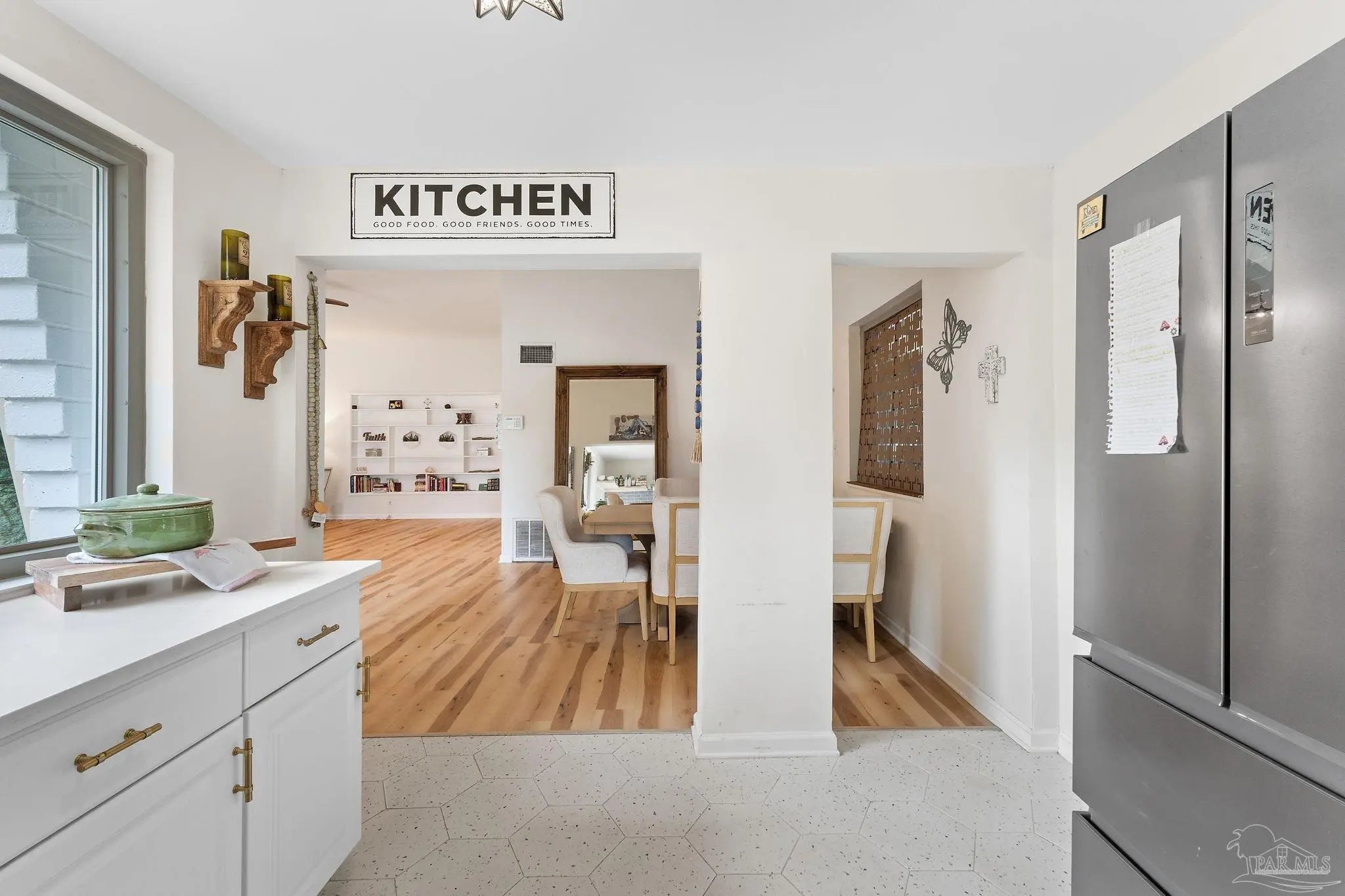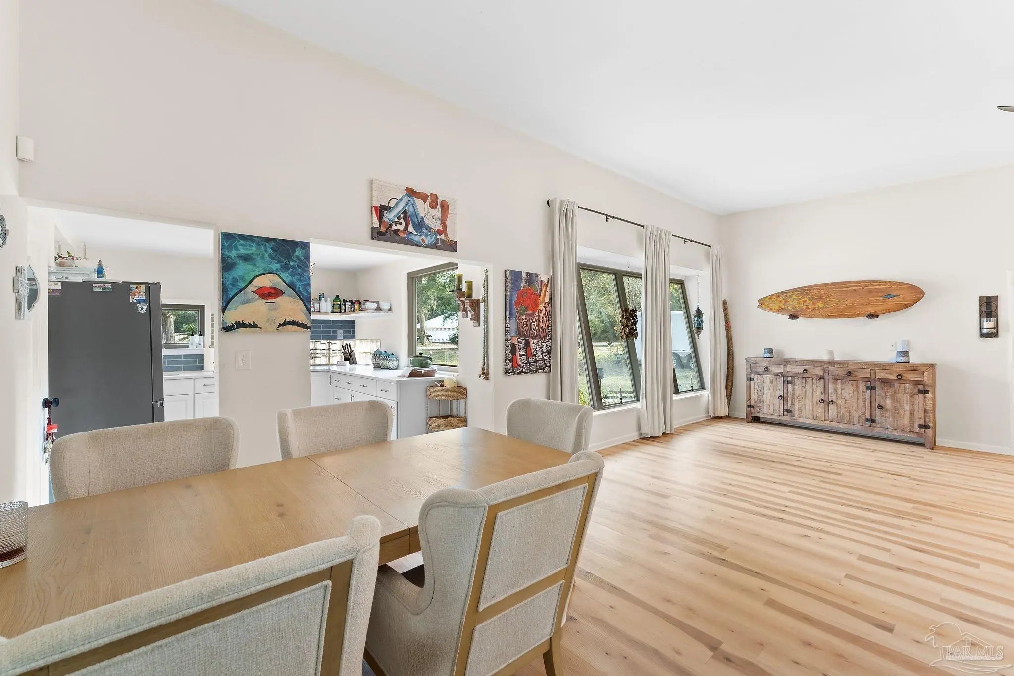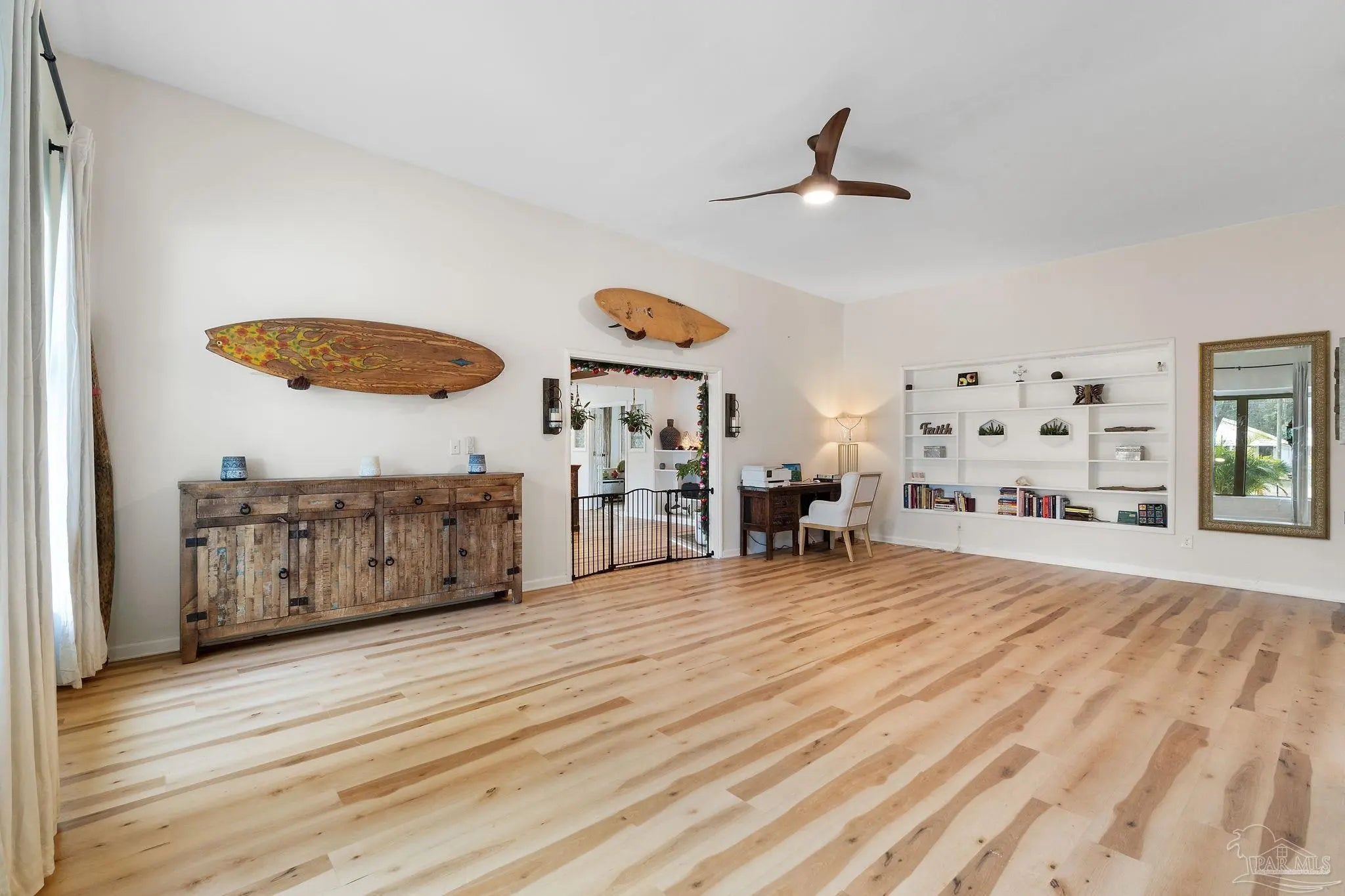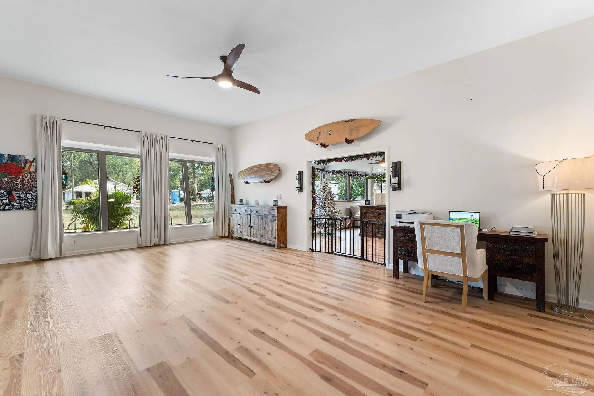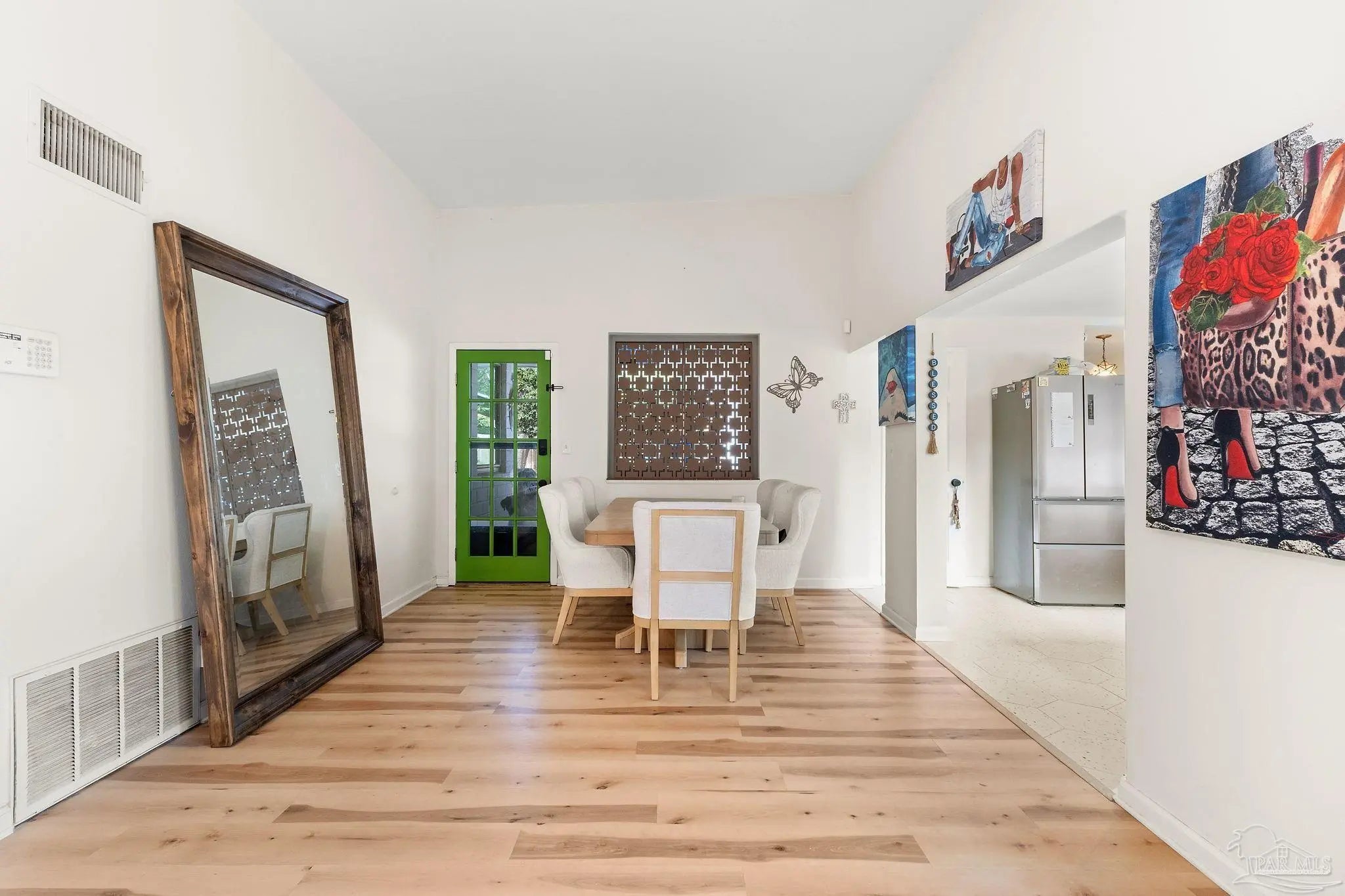 Discover modern charm and timeless design at 415 BREMEN AVE, a beautifully updated contemporary home with a distinctive Frank Lloyd Wright–inspired feel, situated on a spacious 100 X 140 DOUBLE CORNER LOT in the heart of Beach Haven. This exceptional property has been thoughtfully updated with a NEW ROOF, BRAND NEW IMPACT WINDOWS (INSTALLED THIS SUMMER), BRAND NEW WHOLE HOUSE GENERATOR, HVAC SYSTEM, KITCHEN, AND BATHROOMS, and CERAMIC TILE FLOORING IN THE KITCHEN AND BATHROOMS, offering both peace of mind and stylish living. Step inside to a warm and inviting interior featuring a WOOD-BURNING FIREPLACE, tall ceilings in the formal living and dining areas, and a bright, open LARGE DEN WITH AN ADJACENT ENCLOSED FLORIDA ROOM—ideal for everyday living or entertaining. The EXTRA-LARGE BEDROOMS provide comfortable private retreats for family and guests alike. Outdoors, the FULLY FENCED BACKYARD offers endless possibilities, with ample space to create a pool, outdoor entertaining area, or lush garden oasis. The generous DOUBLE LOT PROVIDES AMPLE SPACE FOR STORING OUTDOOR TOYS INCLUDING BOATS AND JET SKIS, a rare find in this area. Enjoy easy access to the water with BOAT RAMPS JUST A THREE-MINUTE DRIVE AWAY, and take in a truly unique local experience as you WATCH THE BLUE ANGELS FLY OVER AND PRACTICE from the comfort of your own property. Ideally located just minutes from PERDIDO KEY BEACHES, SHOPPING, AND DINING, this home perfectly blends contemporary updates with classic architectural appeal. A rare opportunity to own a move-in-ready home on a generous lot in a highly desirable location.