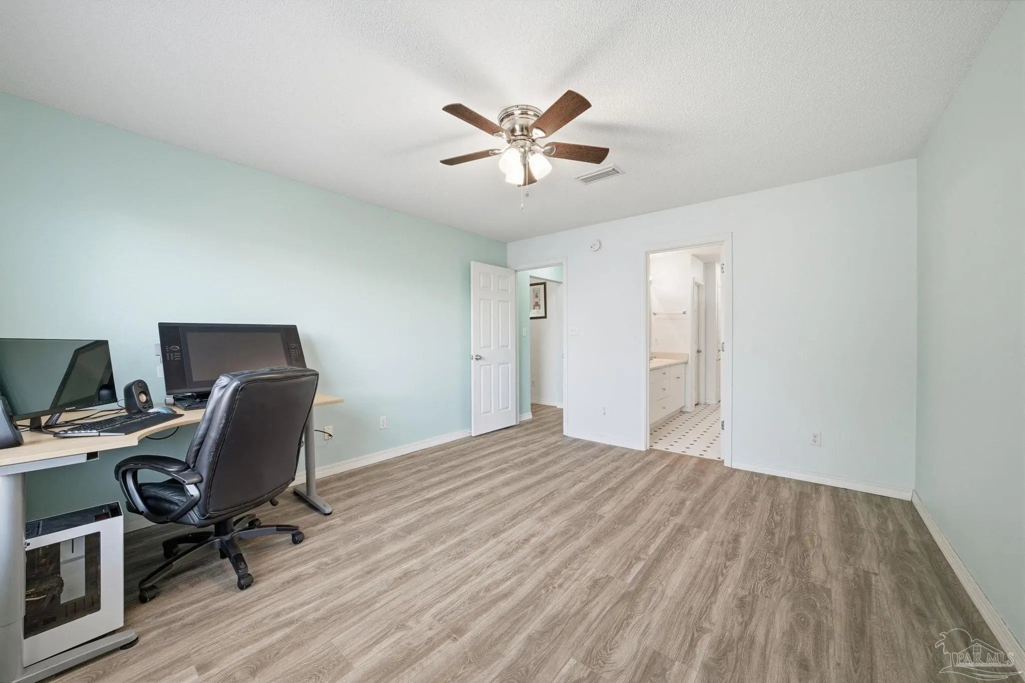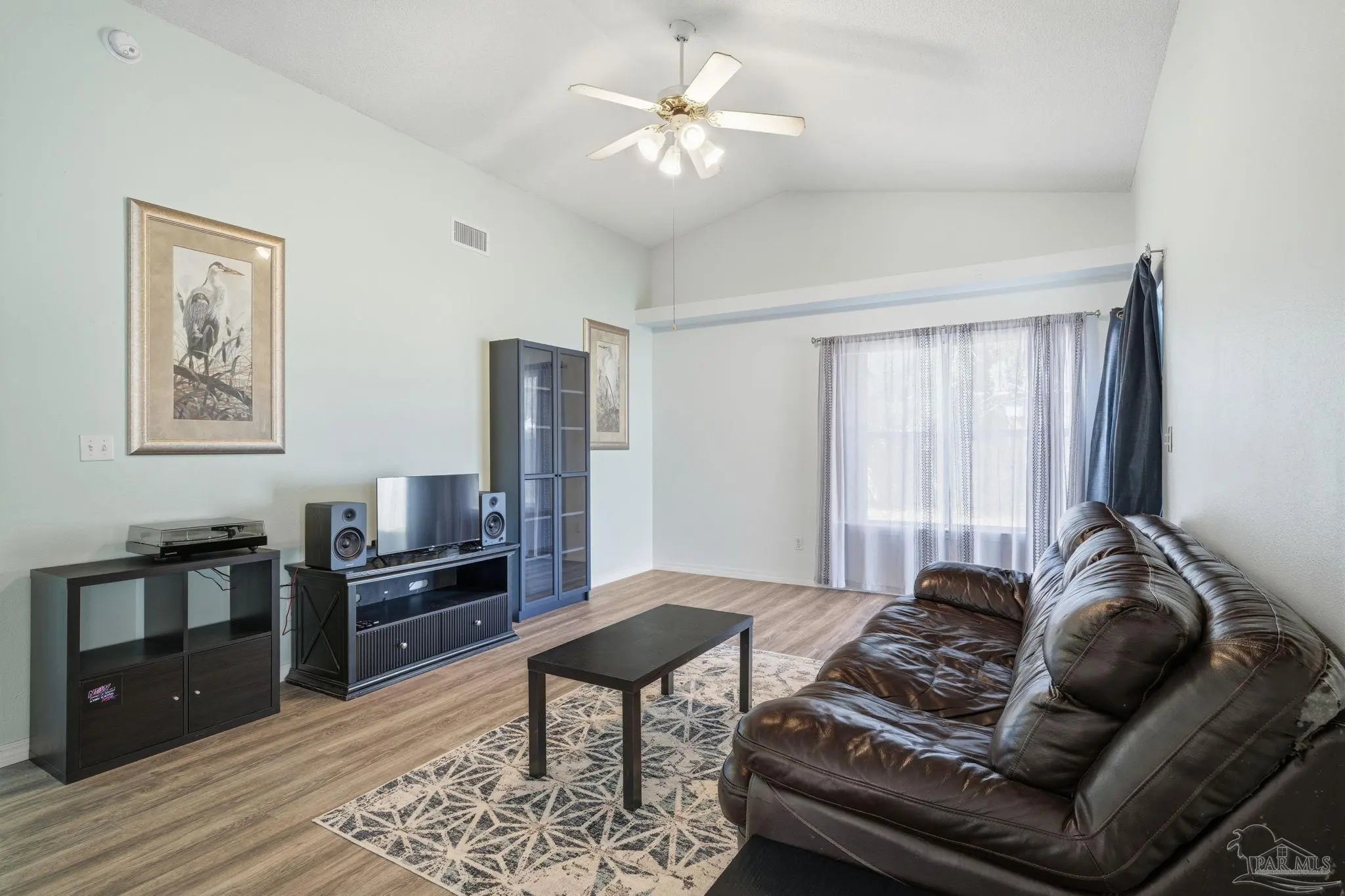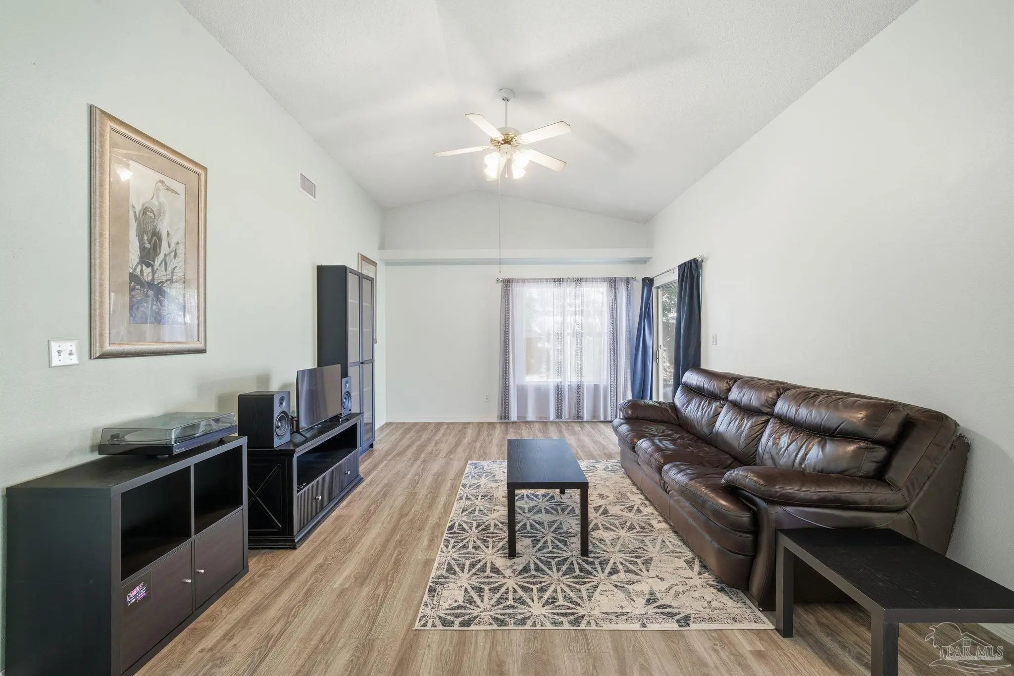 Welcome to easy, coastal-inspired living in The Cottages at Emerald Shores! This charming 3-bedroom, 2-bath patio home offers a smart split floor plan and an open, airy feel with vaulted ceilings and vinyl plank flooring throughout, stylish, durable, and low-maintenance. The spacious family room flows seamlessly into the open living area, making it perfect for everyday living or entertaining. The primary suite is generously sized and thoughtfully designed for comfort and privacy, while two additional bedrooms offer flexibility for guests, a home office, or both. Step outside to enjoy the covered porch and fenced backyard, ideal for relaxing evenings, pets, or weekend get-togethers. Just minutes from the NAS Back Gate and Aviation Museum, with Perdido Kids Park within walking distance and beaches, shopping, and dining only a short drive away. Residents of Emerald Shores also enjoy access to a neighborhood park featuring basketball courts, picnic areas, and nature trails—because outdoor fun should always be close to home. A fantastic layout, great amenities, and a location that truly delivers—this one checks all the boxes