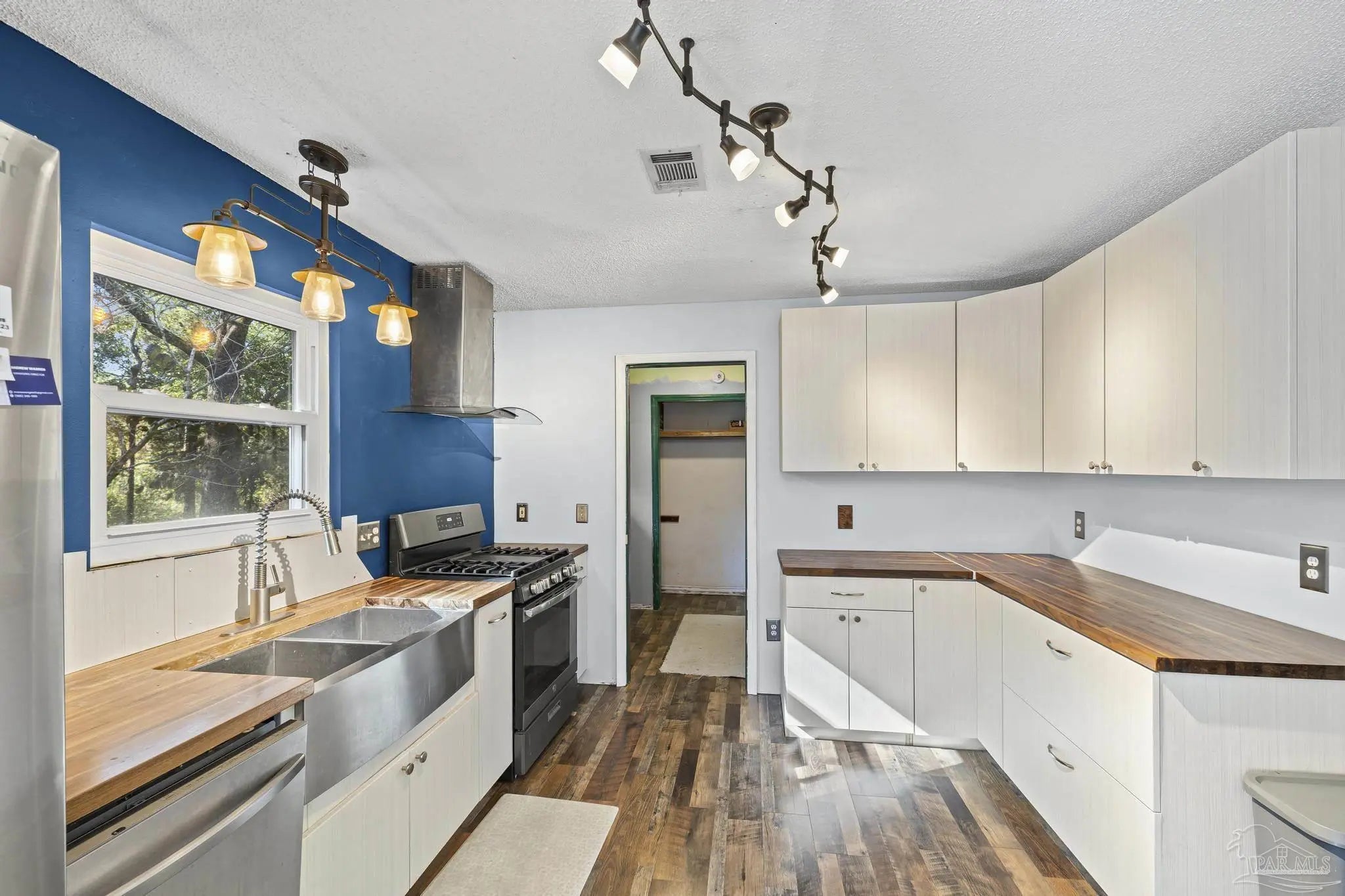 Looking for a 3-bedroom home in Pensacola with land, upgrades, and no HOA near UWF? This 3-bed home in Pensacola offers 1,257 square feet on 1.44 acres, metal framing construction, hurricane windows, updated systems, and a massive powered workshop, all priced at $285,000 and tucked away from major road noise. Welcome to 9190 Brunson Road, a well built single-family home designed for durability and flexibility. Constructed with metal framing and trusses, this 1995 home features major improvements including a new roof, HVAC, and water heater in 2021, along with brand new hurricane windows. The updated kitchen includes new flooring, cabinets, butcher block countertops, sink, vent hood, light fixtures, and French doors leading outside. The primary bathroom has been refreshed with new flooring, lighting, and vanity, and the primary bedroom opens to a private back patio overlooking the spacious backyard. The property sits on 1.44 acres with no HOA and includes a private well with a whole home filtration system installed in 2022. A covered carport offers parking for two vehicles. The impressive 30 ft x 40 ft workshop features insulated 14-foot peak ceilings, multiple roll-up doors, electricity, compressor lines, and Hubbell lighting, making it ideal for storage, projects, or business use. Located near the rapidly growing University of West Florida and tucked away from the noise of 9 Mile Road and University Parkway, this property offers space, privacy, and long-term value.