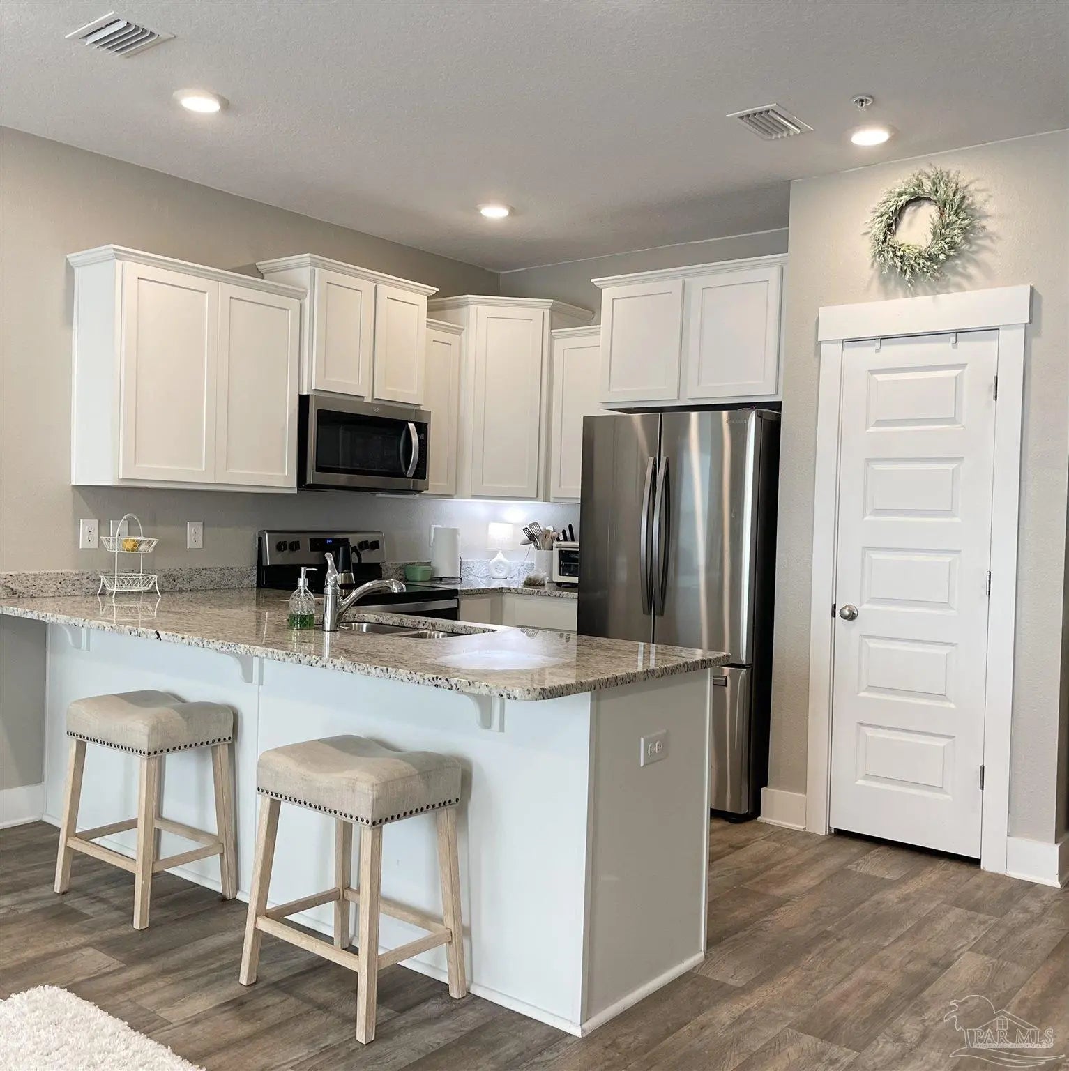 BACKYARD opens up to the huge common area and sparkling POOL....This gorgeous town home is in one of the most convenient Pensacola locations close to shopping, dining, medical care, Navy Federal Credit Union much more. 3 bedrooms, 2 1/2 baths with no wasted space. Fabulous open design that is perfect for entertaining and family gatherings. The kitchen features Stainless Steel appliances, a large bar, beautiful granite, undermount sink, pantry and recessed lighting. Bedroom 1 offers a spacious walk-in closet and the adjoining bath has a granite double vanity, 5' shower and linen closet. Beautiful wood look easy care flooring and nice carpet in the bedrooms. These stylish townhomes with a one car garage also include fabric hurricane window protection, our Smart Home Connect system which features your video camera doorbell, keyless entry and more. Schedule your apt today.