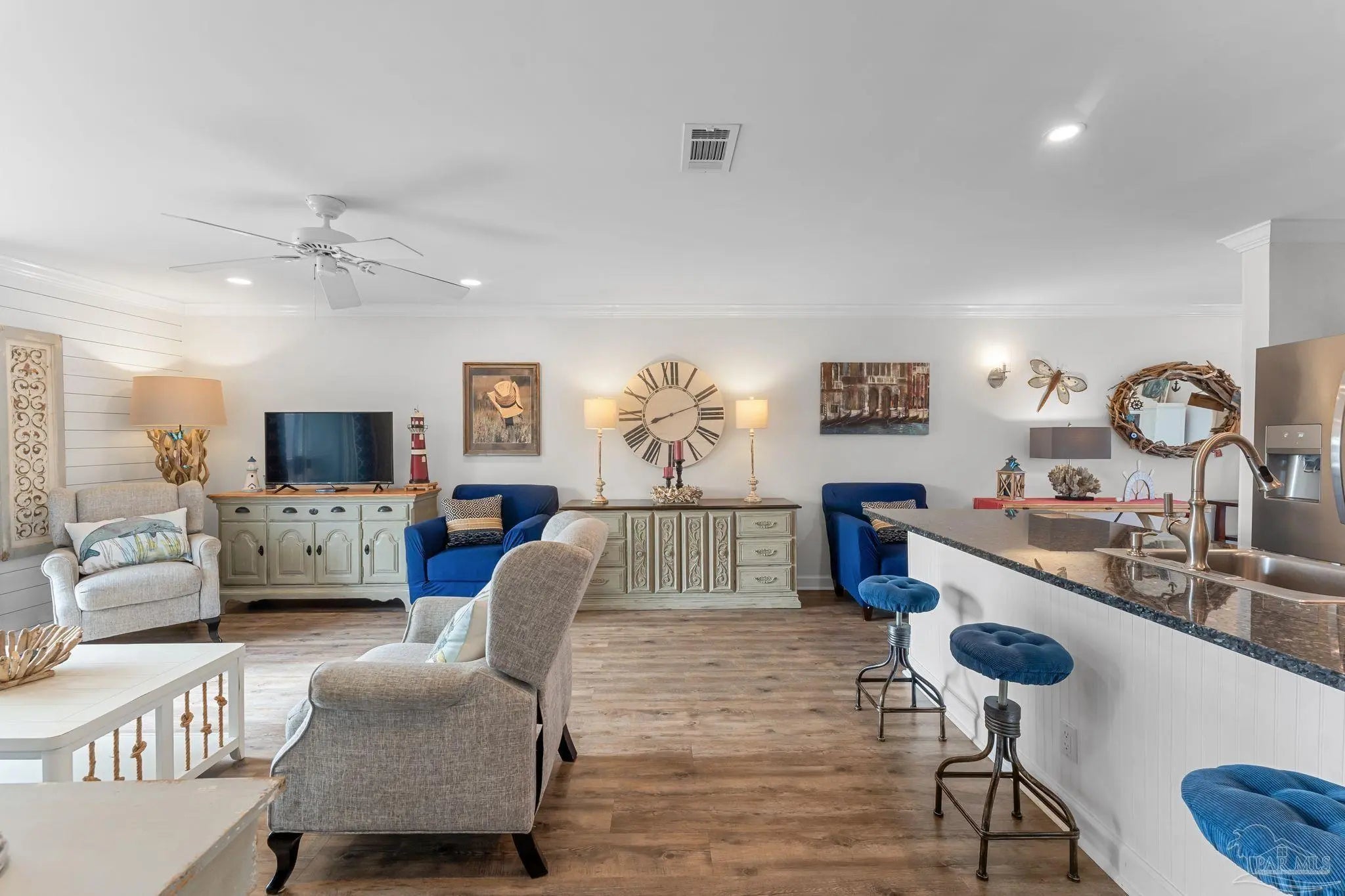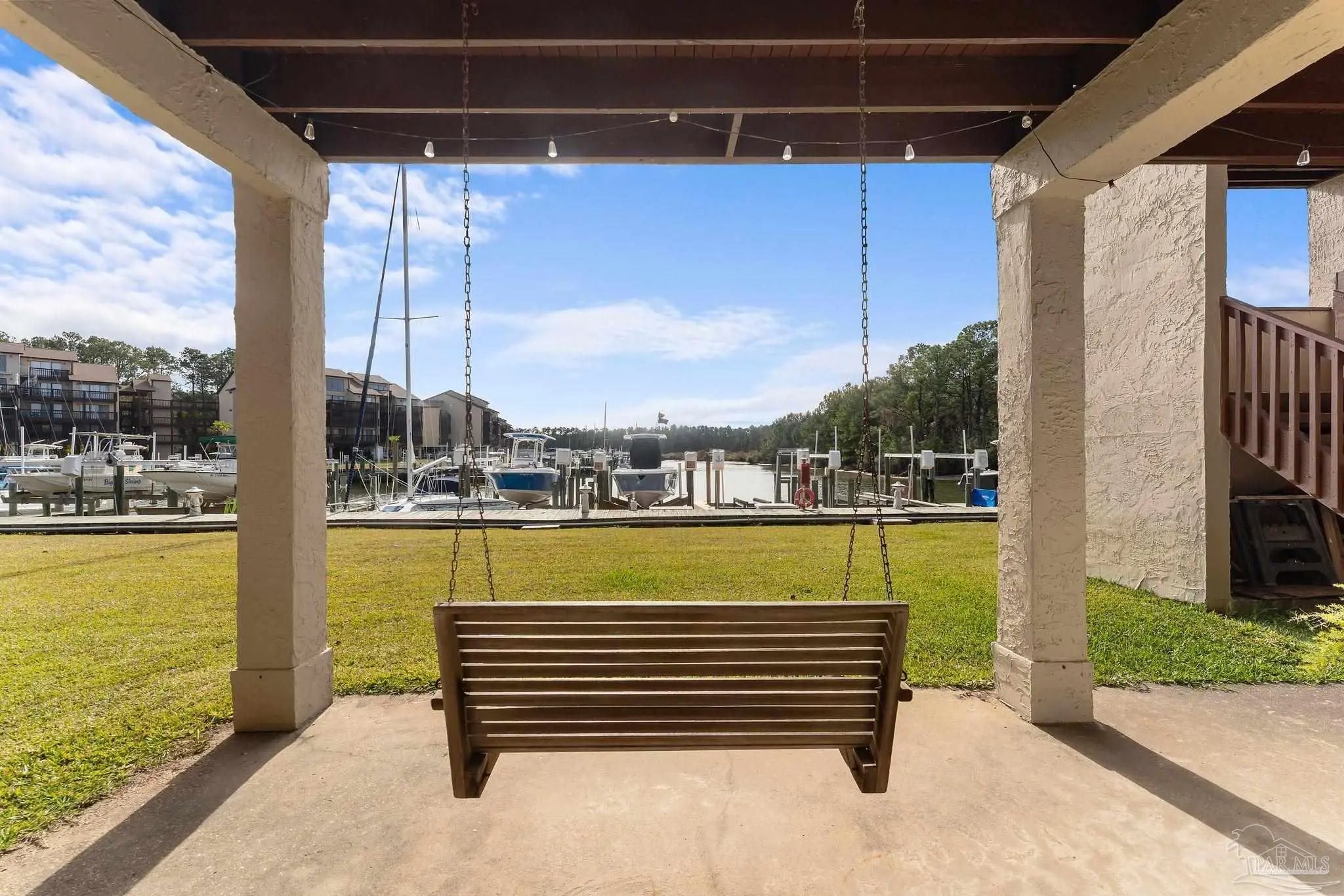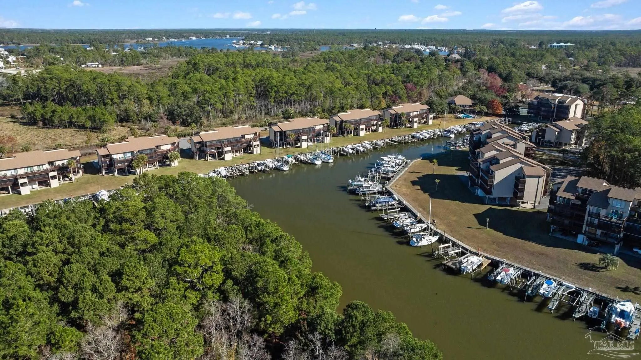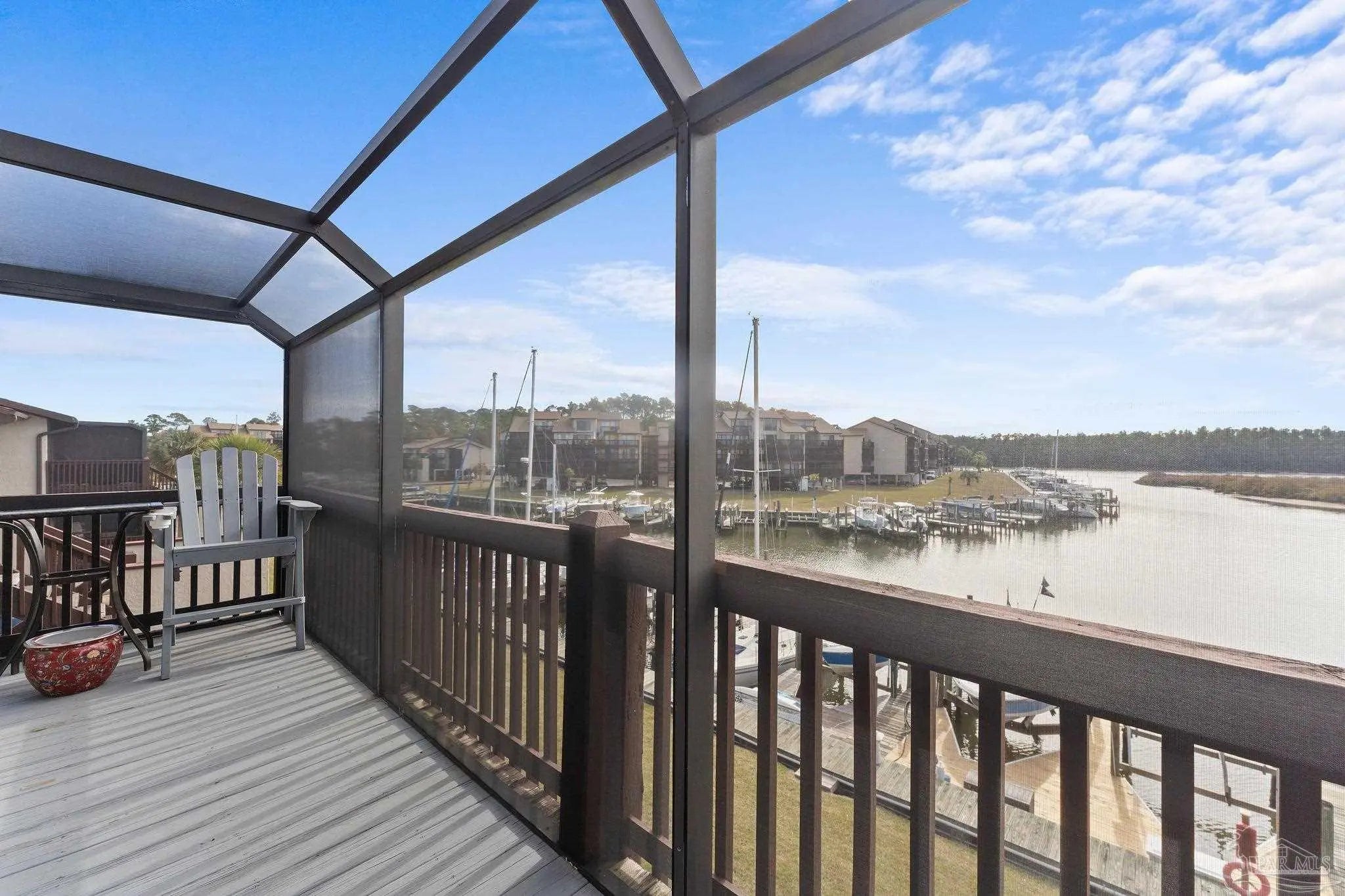 Boater’s Paradise at Sailboat Bay! This mostly furnished, top-floor 2-bedroom, 2-bath condo in a well-maintained 6-plex offers the ultimate waterfront coastal lifestyle. Remodeled in 2018, the kitchen features stainless steel appliances, granite countertops, and a classic white subway tile backsplash. Luxury vinyl flooring runs throughout, and both bathrooms have been completely upgraded. Coastal shiplap accents add character to the living room and primary suite. Major updates include a brand-new HVAC system installed in 2025 and PEX water lines in 2018. Step onto the screened-in patio to enjoy sweeping views of the marina and the Intercoastal Waterway, complete with a retractable awning. This unit includes its own private boat slip just outside the building with power, water, and a 10,000-lb boat lift, plus two storage closets—one on the back deck and one on the ground floor. Sailboat Bay is a gated community offering resort-style amenities including two saltwater pools, a kiddie pool and spa, fitness center, clubhouse, tennis courts and boat storage. HOA dues cover water, Wi-Fi, cable, trash, sewer, exterior insurance, and exterior/grounds maintenance for a truly worry-free lifestyle. Located just minutes from prime fishing on Bon Secour River, Bon Secour Bay, and Mobile Bay. Short-term rentals are not permitted.