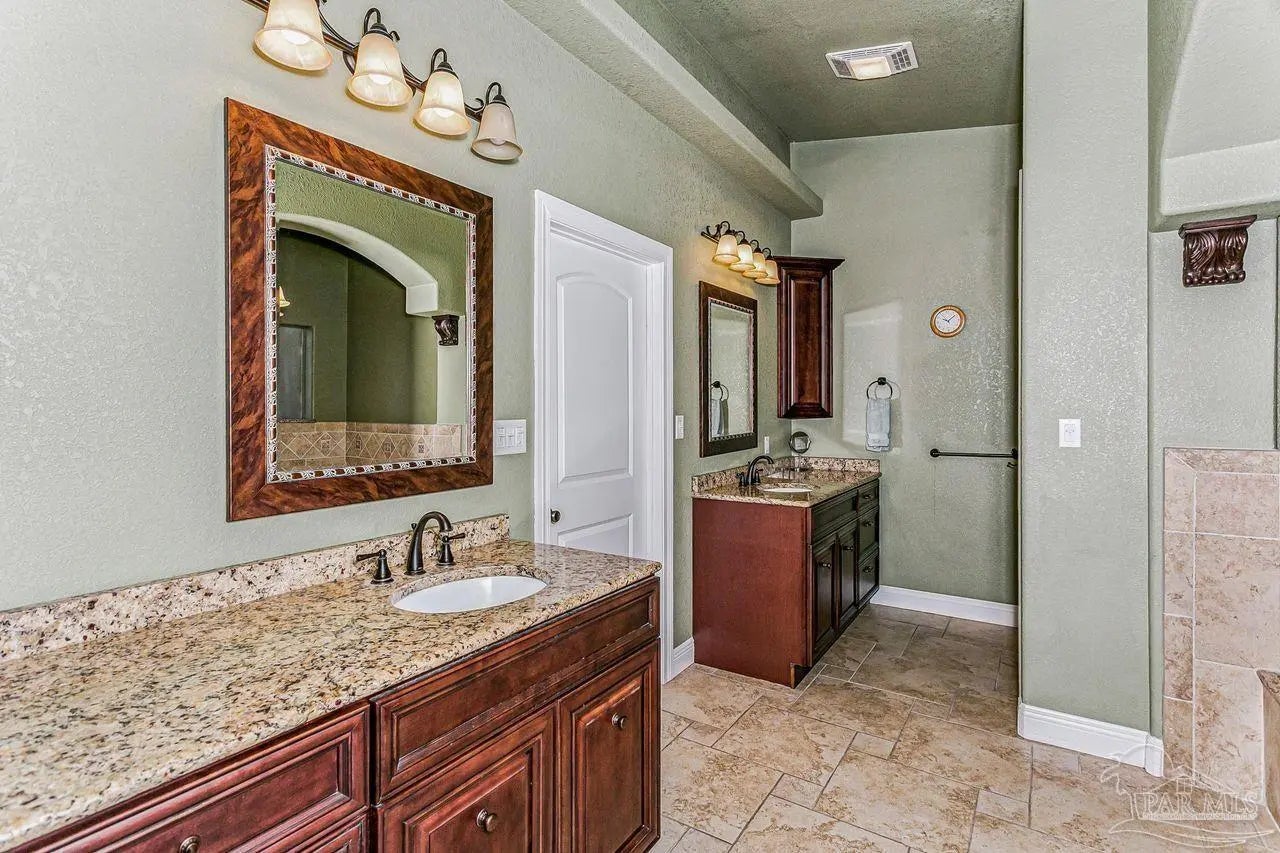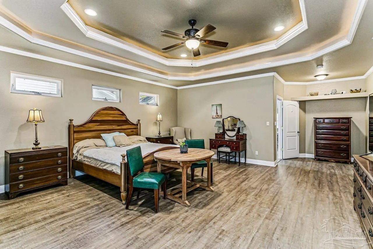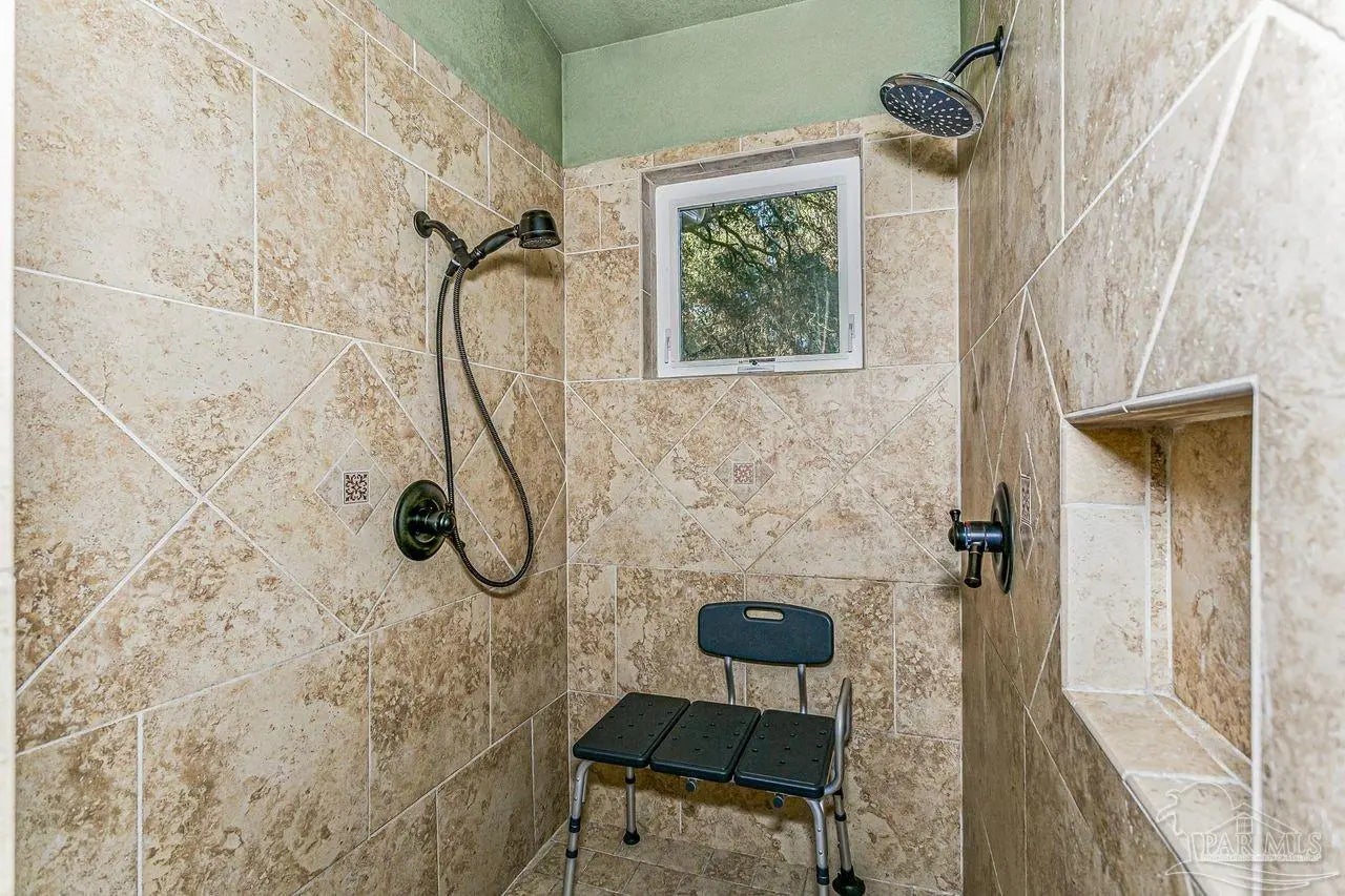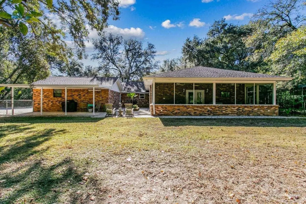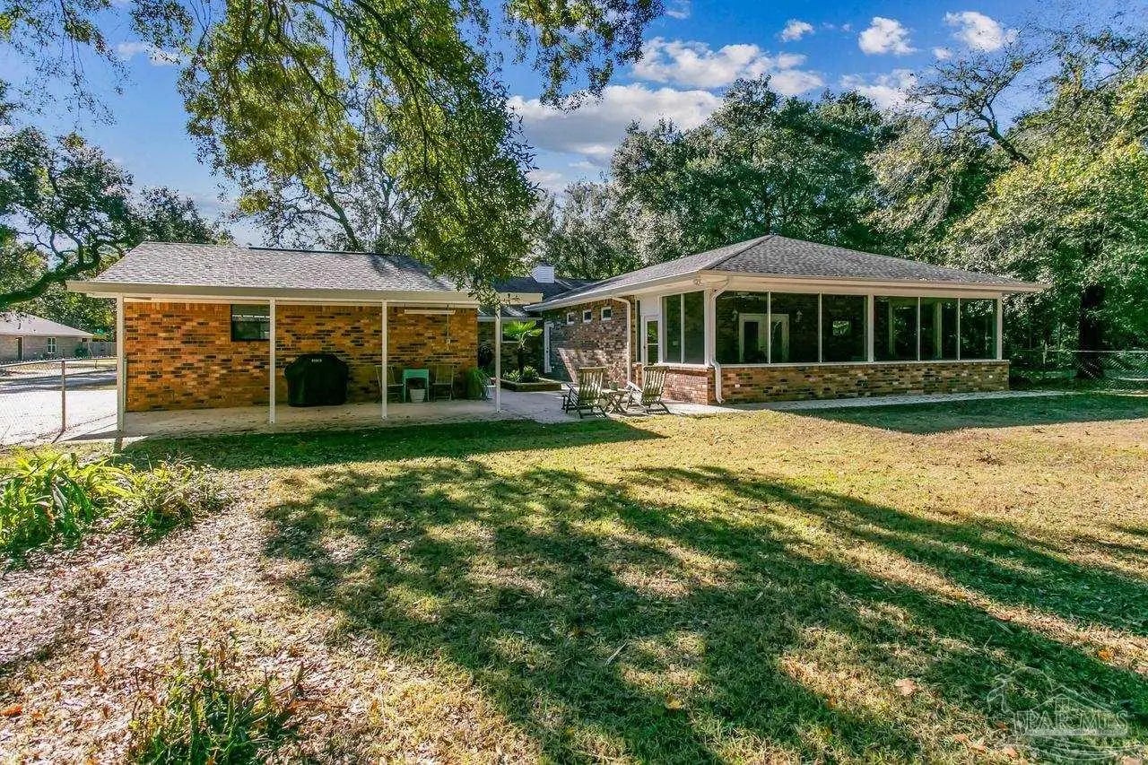 This beautiful 4 bedroom 3 bath property is close to the interstate, hospitals, restaurants, UWF and shopping. Home sits on 1.67 acres smack dab in the middle of everything. Open floor plan, fully brick with detached 2 car garage with attached porch off the back and a breezeway to the house. Inside you'll find an unbelievable 700 sq ft master suite with multiple tray ceilings, huge walk in closet, heated jetted tub, walk in tile shower with bench, two vanities, water closet and french doors leading to massive screened in porch. There is also a second master suite with its own walk in closet and full bathroom. Two other bedrooms are sizable with ample closet space. In the great room there is a cathedral ceiling, two lighted niches, coat closet and a Black Bart fireplace that could heat the whole house. Kitchen is open with two pantries, stainless appliances and a huge laundry room leading to breezeway and garage. Outside you will find a 54' X 20' covered storage for motorhome or boat with separate septic system and water meter. Oversized driveway for plenty of parking, nice garden area in middle of back patio, live oaks, magnolias and laurel oaks sitting on a quiet semi dead end street, sprinkler system and so much more.