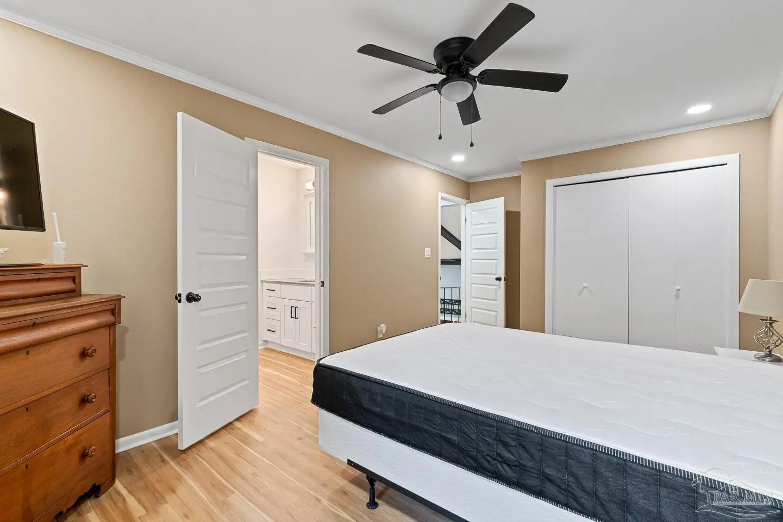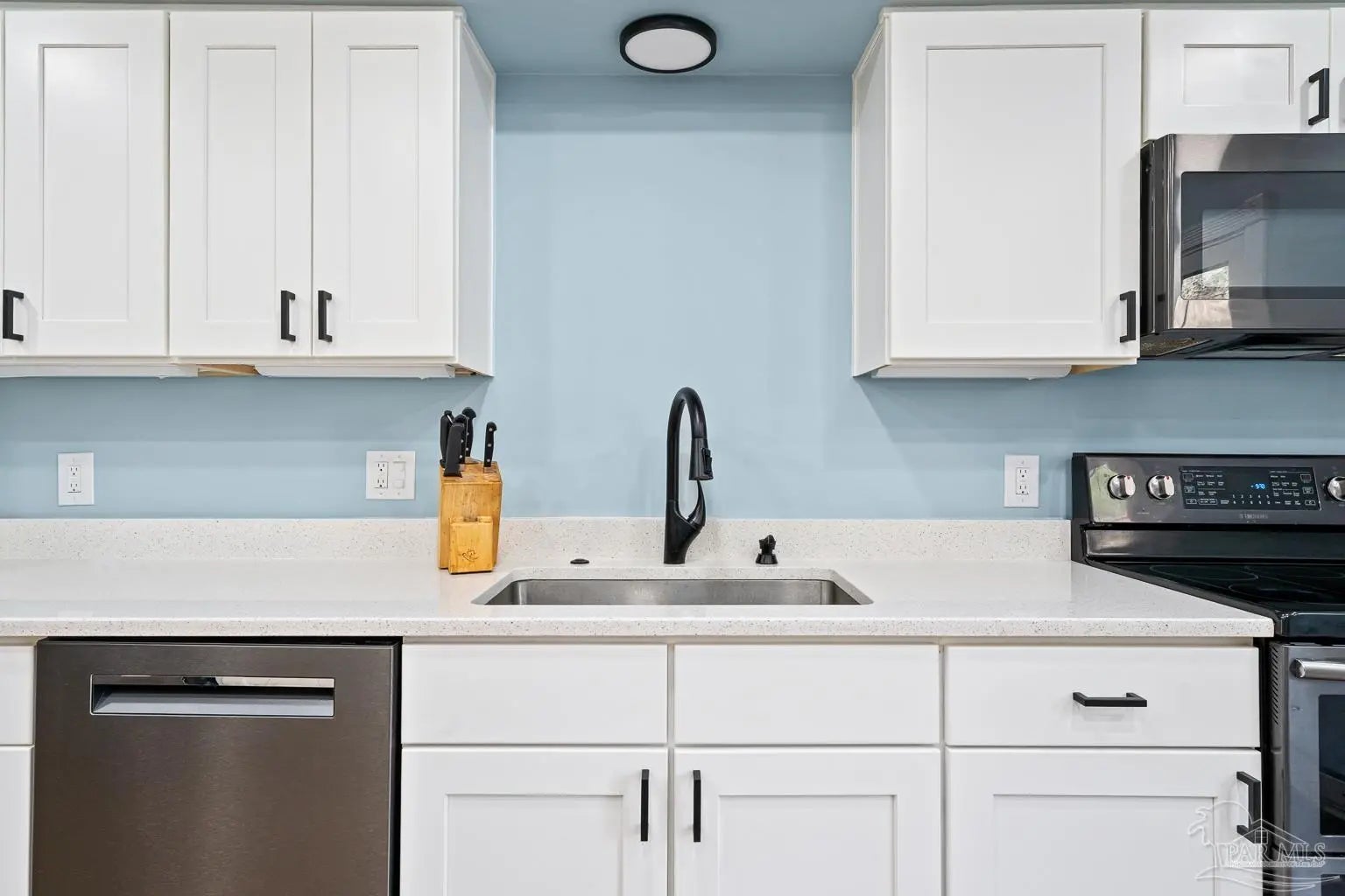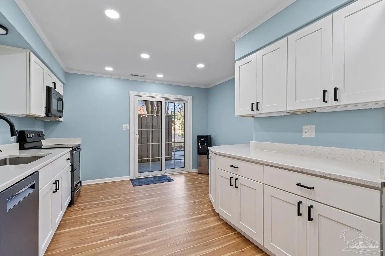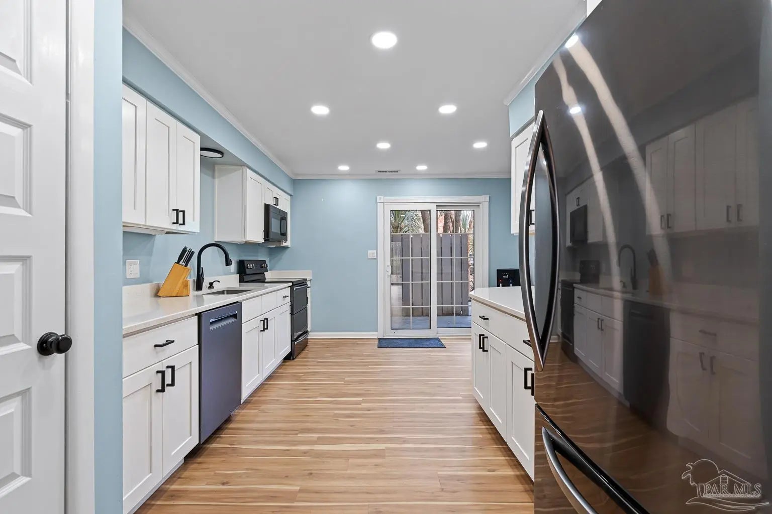 Welcome to this charming and thoughtfully updated 3-bedroom, 2-bath townhome nestled in the desirable Perdido Bay Villas golf-course community. Professionally remodeled, the 1,678 sq ft home sits near the end of a quiet cul-de-sac with serene views of the fairways and proximity to the 12th hole of the Perdido Bay Golf Club. Inside, the kitchen has been fully renovated with new quartz countertops, soft-close cabinetry, black stainless-steel appliances, under-cabinet lighting, and a modern, open layout that flows into the living area, ideal for both everyday living and entertaining. High-end flooring, updated fixtures, and newer A/C add comfort and show-ready appeal throughout. The home features a first-floor master suite for convenience, along with a nicely laid-out second floor hosting two additional bedrooms, perfect for guests or family. Outside, the community benefits from grounds and exterior maintenance by the HOA, with a desirable location that balances quiet, golf-course living and quick drives to nearby beaches, shopping, restaurants, and the Navy base. Great rental potential as short terms are allowed. Book your private showing today. Roof and HVAC 2022