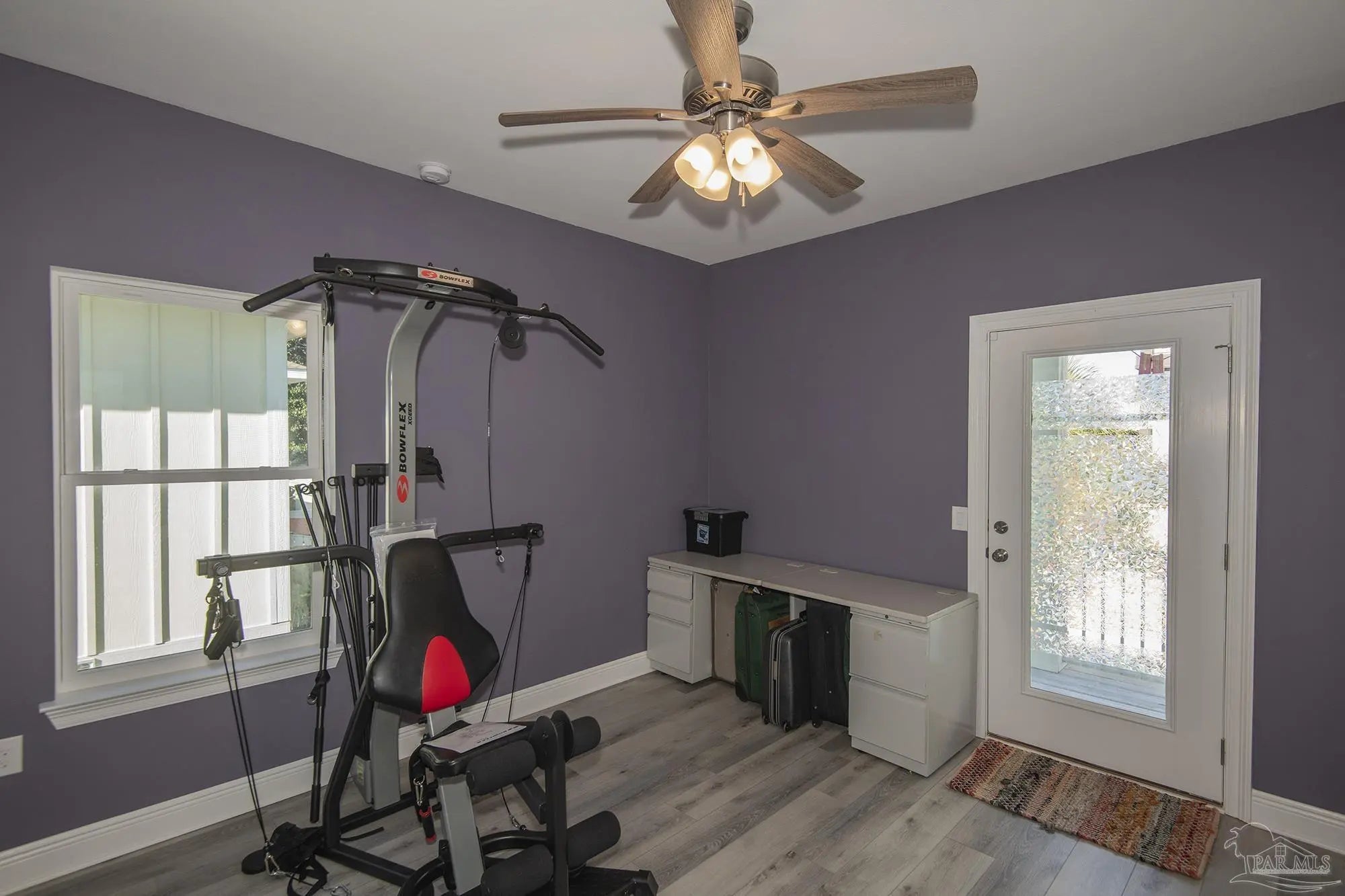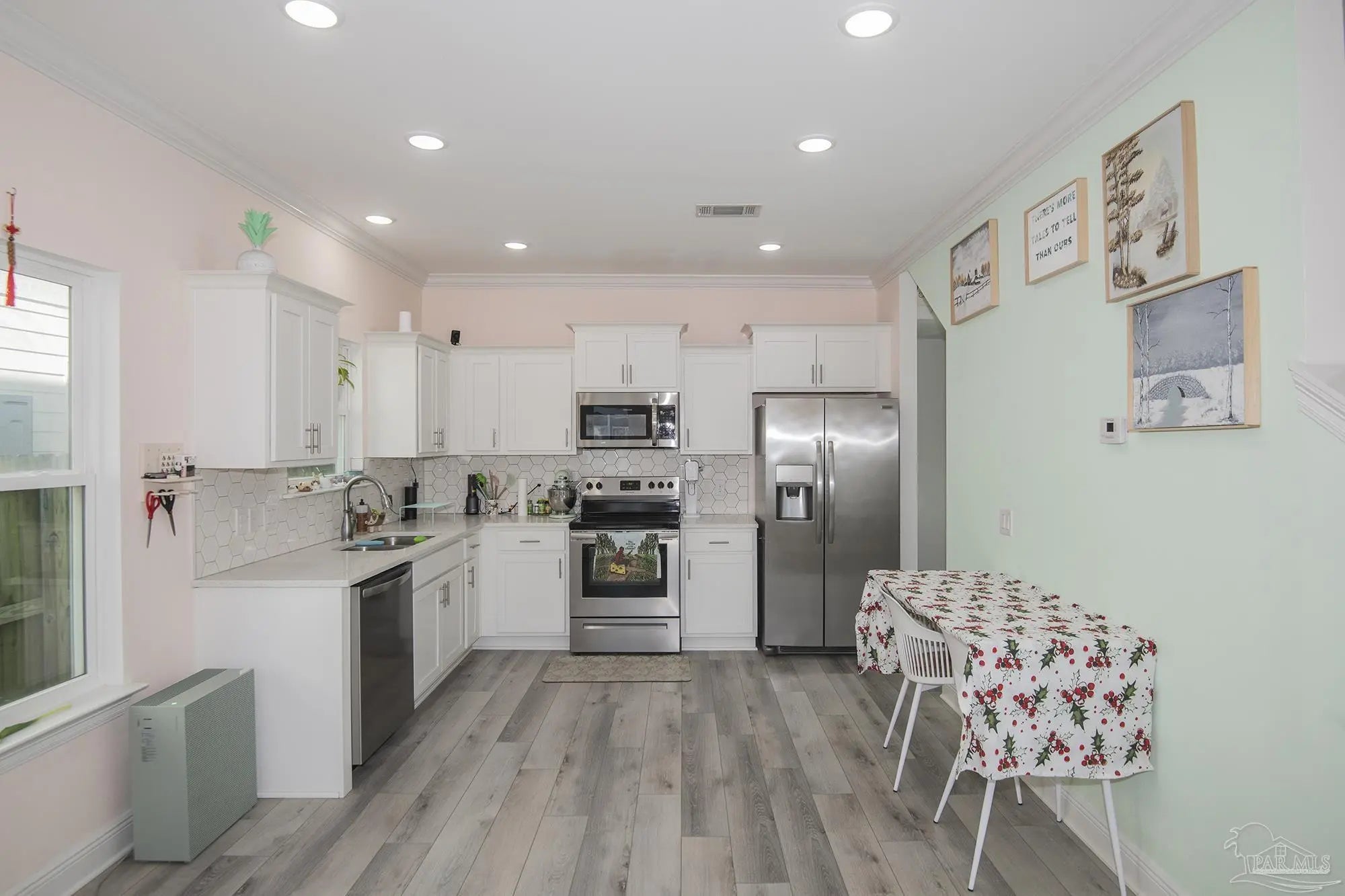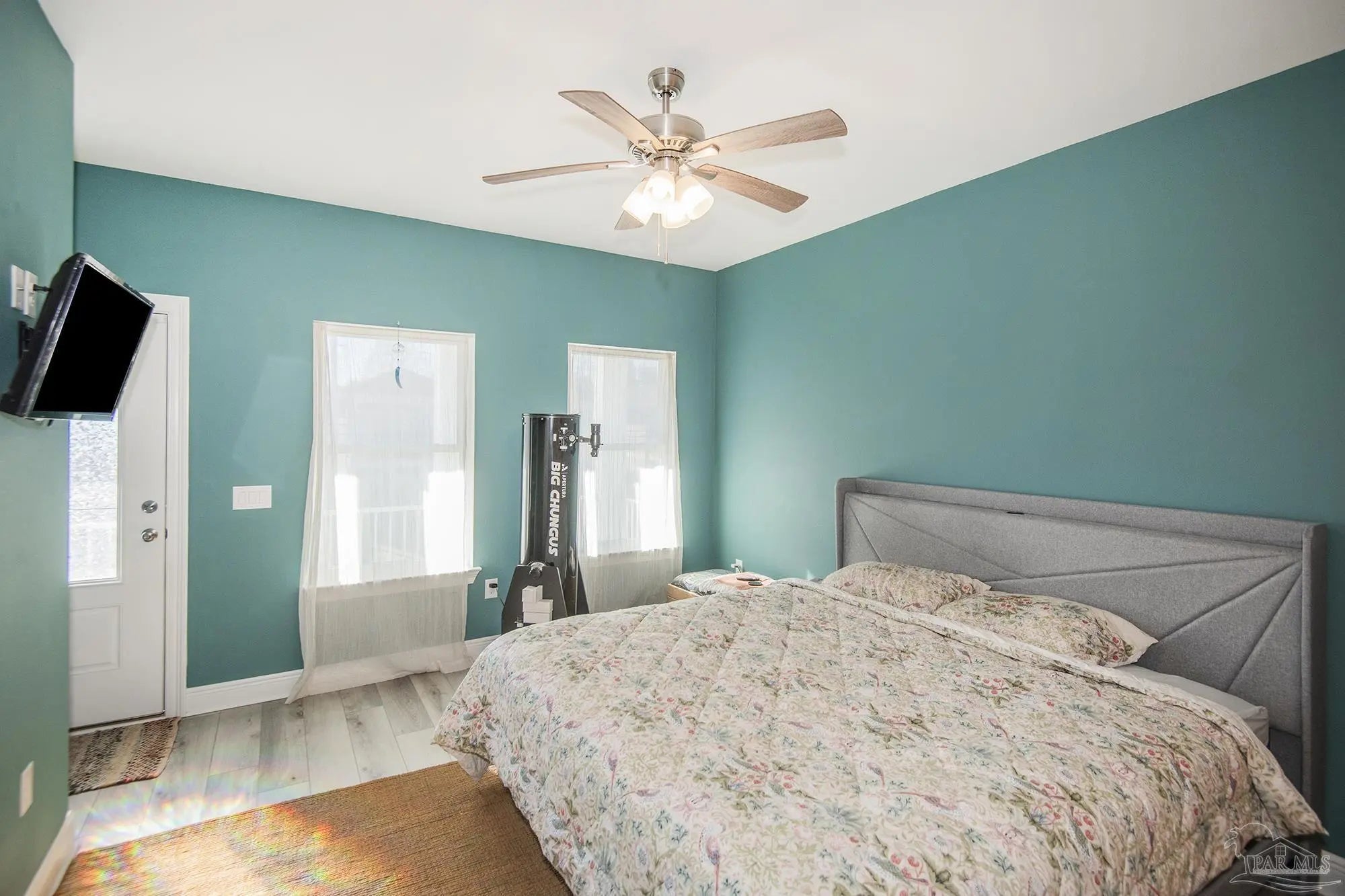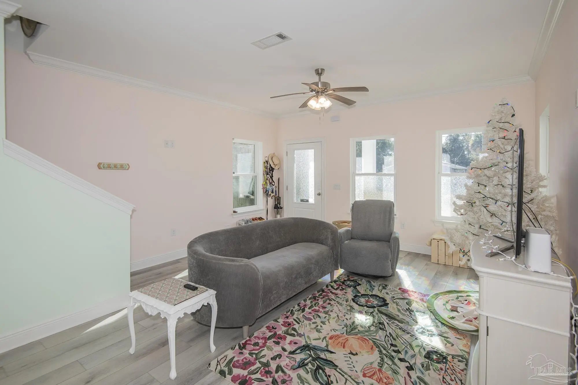 A bright and cozy modern retreat you will love calling home right in Pensacola’s beloved downtown! With construction completed in 2020, this 3-bed, 3-bath, one-owner home has been very well maintained and is just blocks from the beautiful new Bruce Beach and Maritime Park, as well as Ever’man Co-op Grocery and Palafox Street! Stroll downtown to enjoy the local restaurant scene, art, and culture, or relax at home on one of your four covered porches- each about 16’ long- two on the front of the house and two on the back. This home has the enviable feature of that additional 4th balcony off the rear upstairs bedroom, something that was omitted on most of the other new-builds in the area. When you enter this home, you’ll notice the gorgeous natural light let in by the large windows and feel right at home as you step in to your own personal sanctuary. The open-concept kitchen has quartz countertops,all Fridgadire appliances to include a smooth-top stove/oven, side-by-side fridge, built-in stainless-steel microwave, and a dispose-all. The downstairs bedroom could easily be used as an office if desired, and both the primary bedroom along with the 3rd additional bedroom are upstairs, each with their own private balconies and bathrooms. There are 3 full bathrooms in total, featuring quartz and granite countertops, a tiled shower in the primary, and tub/shower combos. The washer and convey "As Is".There is a lovely, shaded backyard with a privacy fence and the home has a current bond through Rocky’s Pest Control. There is absolutely no heavy lifting to do here besides your moving boxes- you can simply move in and relax- you’re home now!