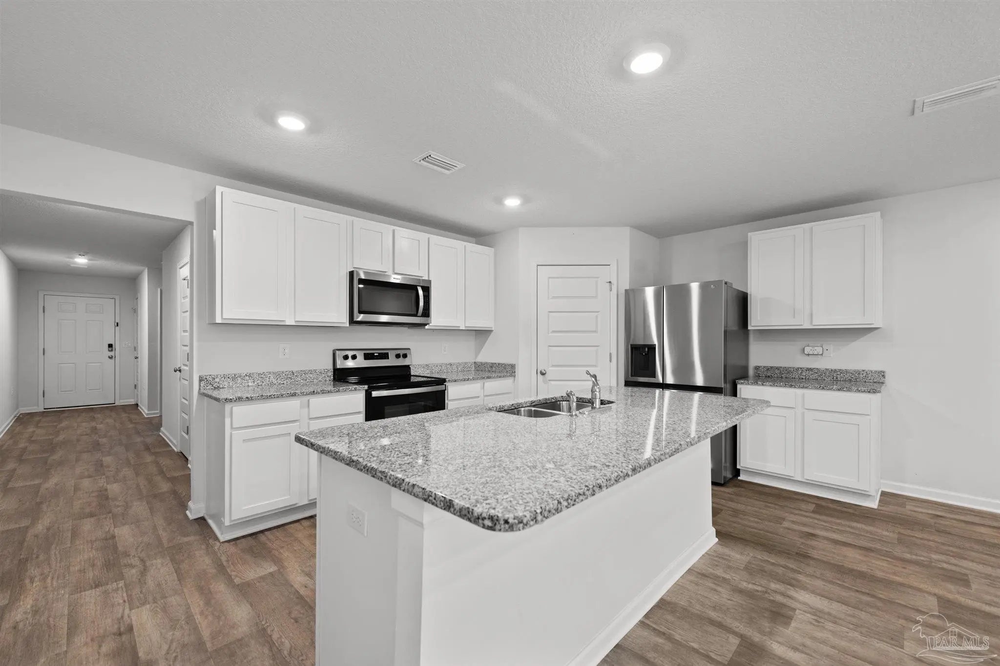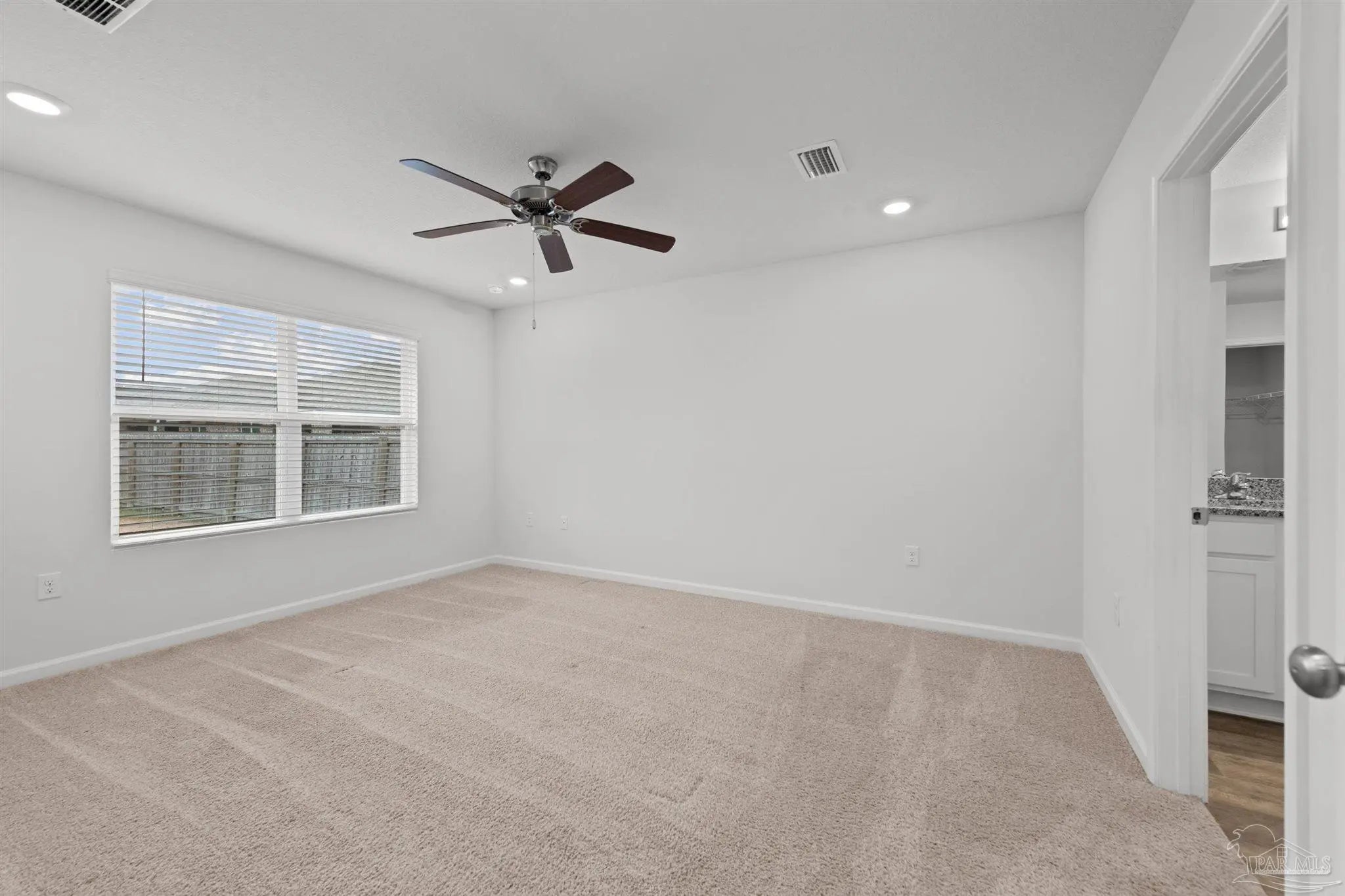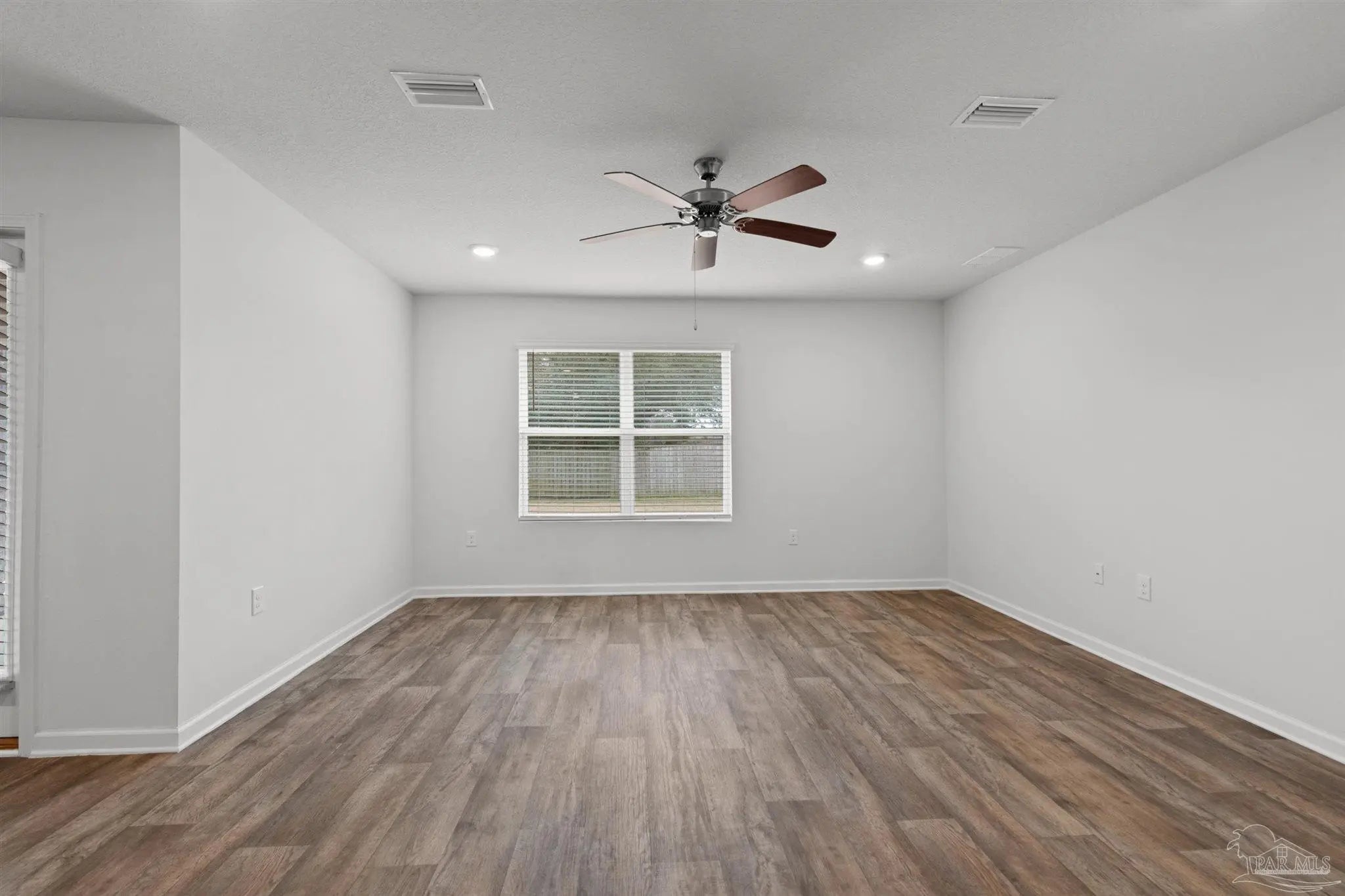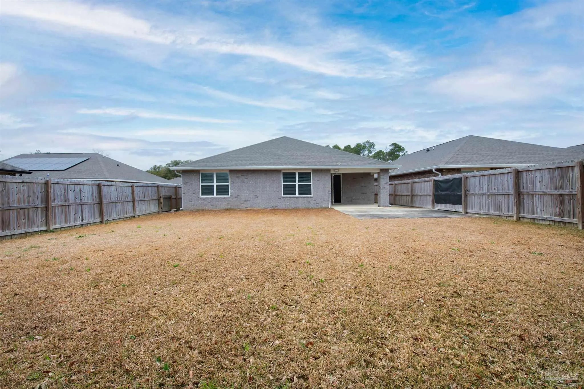 Cute as a button! This charming 4-bedroom, 2-bath rental offers 1,830 sq ft of stylish, comfortable living in a small, centrally located subdivision—just minutes to NFCU, I-10, and Publix. Step inside to a welcoming long entry that opens into a bright, open-concept floor plan—perfect for entertaining or everyday living. The kitchen is a dream with granite countertops, stainless steel appliances, a large walk-in pantry, and a huge working island ideal for cookie decorating or afternoon homework. The family room and kitchen feature luxury vinyl flooring, blending beauty with easy maintenance, and the space is flooded with natural light with a lovely view of the backyard. Enjoy a split floor plan for added privacy. The spacious primary suite includes a huge walk-in closet and a spa-like bath with double granite vanity, private water closet, and a large shower. The additional bedrooms are nicely sized with great closet space. Love outdoor living? You’ll adore the covered back porch plus an extra concrete slab for entertaining. The fully fenced backyard is perfect for all your outdoor activities, and the home even includes gutters for added convenience.
