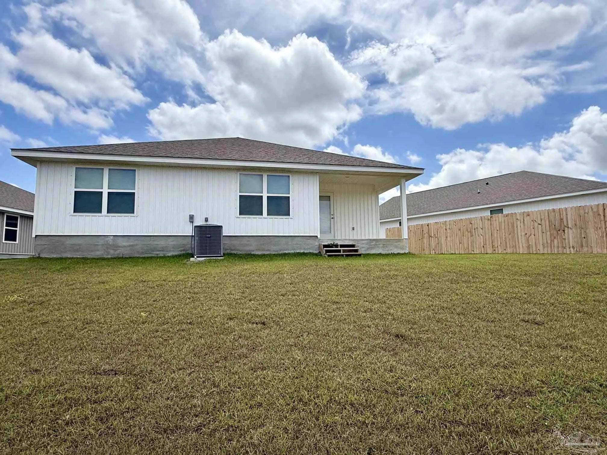 Beautiful 4-bedroom home available for rent in Cantonment’s Sanctuary community. Built in 2025, this home features an open floor plan with a spacious living area that flows into the kitchen and dining space, making it comfortable for both everyday living and entertaining. The kitchen includes stainless steel appliances, plenty of cabinet space, and a large island overlooking the main living area. The primary suite offers a private bathroom and generous closet space, while the additional bedrooms provide flexibility for family members, guests, or a home office. The property also includes a two-car garage and a large backyard with plenty of room to enjoy the outdoors. Located in the Tate High School district with convenient access to Highway 29, the home offers an easy commute to Navy Federal Credit Union, Pensacola, and surrounding areas while still being in a quiet, newer neighborhood. Residents of the Sanctuary community enjoy access to excellent amenities, including a sparkling swimming pool and a playground—perfect for relaxing and recreation. This home is available now, call your favorite agent to schedule a showing.