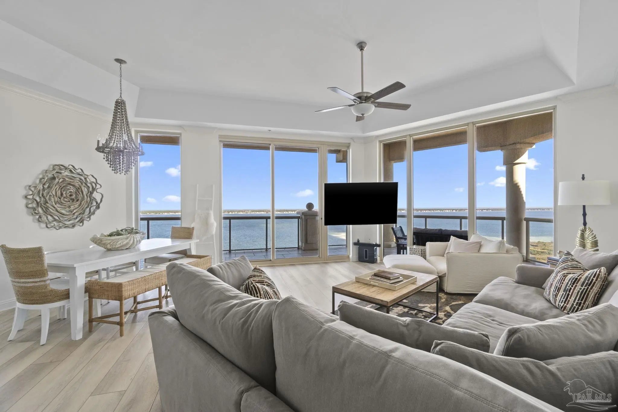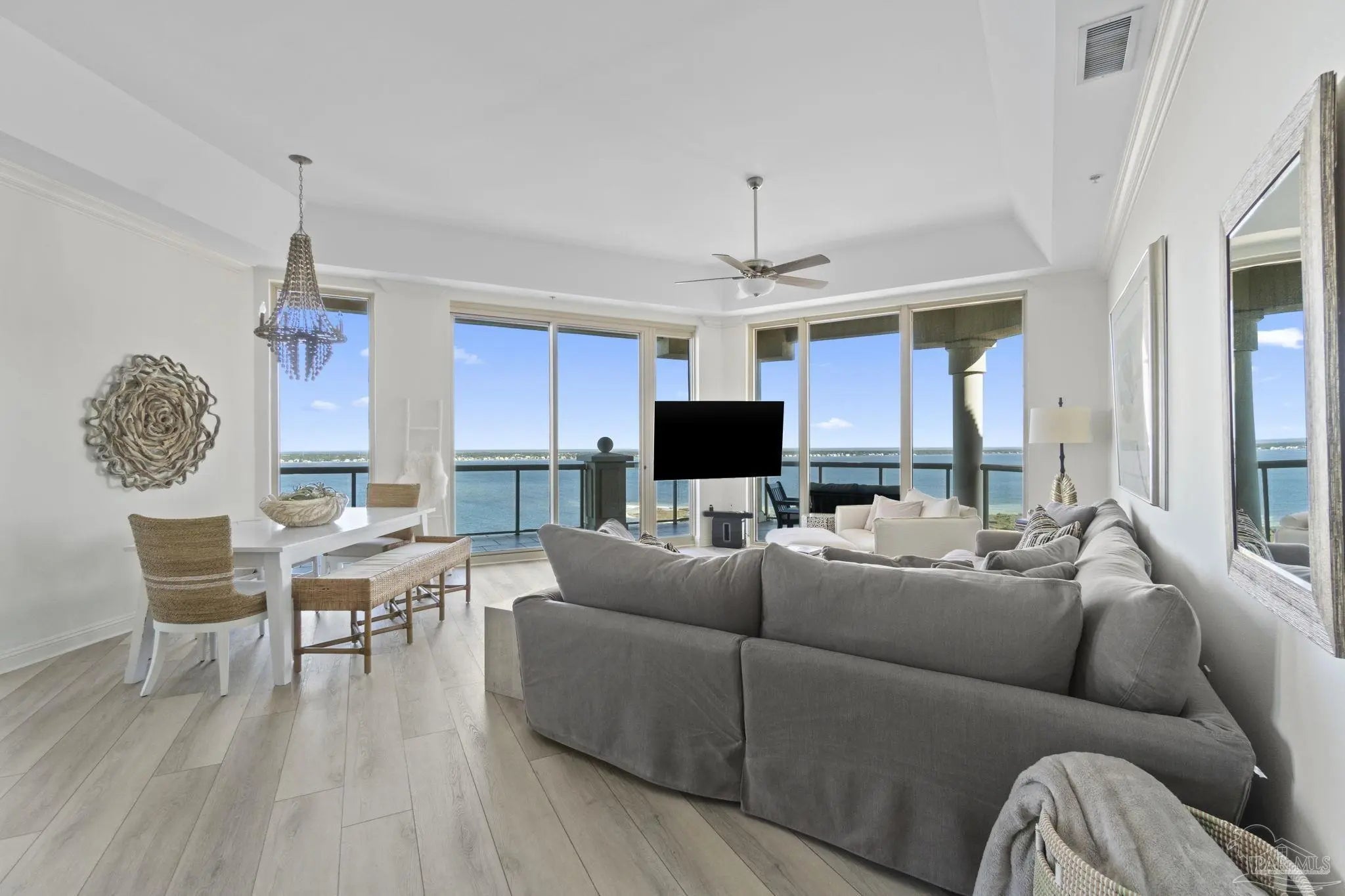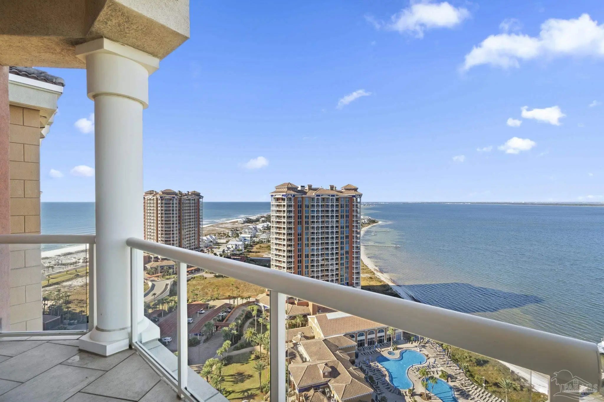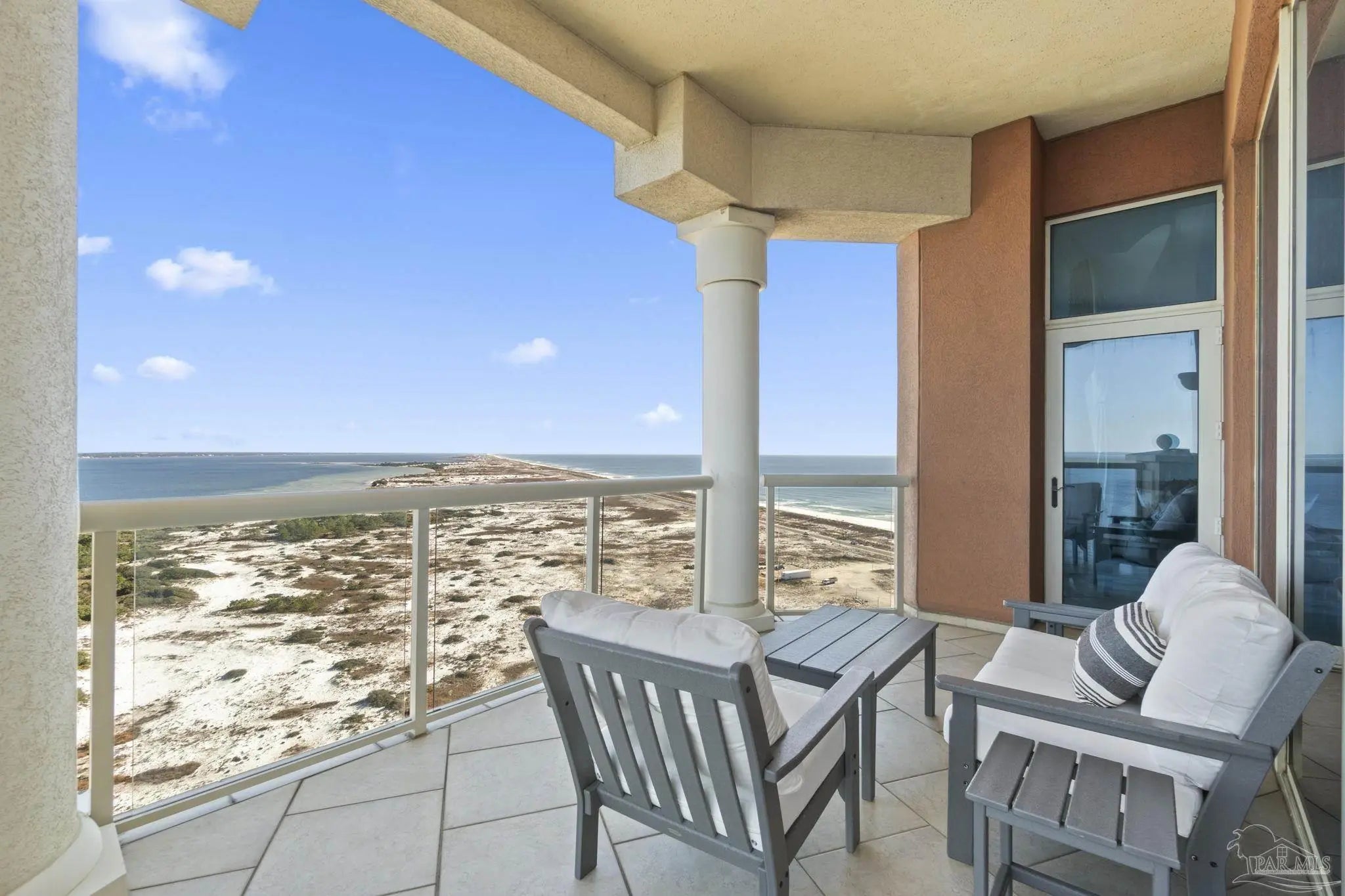 A rare penthouse residence at Portofino Island Resort with sweeping sound and Gulf views, just steps from the beach. Unit 2101 offers exceptional space, abundant natural light, and panoramic water views from nearly every room. This spacious 3 bedroom, 3.5 bath home features an expansive living area surrounded by water views and a wraparound balcony along the Gulf side of the unit, complete with a built-in grill and full views of the beach and shoreline beyond. The primary suite includes direct balcony access and water views, while each guest bedroom offers its own en suite bath for comfort and privacy. Portofino Island Resort delivers a true resort lifestyle with multiple pools, a full-service spa, highly rated on-site dining, a state-of-the-art fitness center with access to personal trainers, tennis courts, and a full calendar of seasonal activities. Outdoor adventures include water rentals ranging from paddleboards and sailboats to jet skis, as well as bike rentals and dolphin cruises. Penthouse opportunities with this level of space, light, and dual water views are rarely available. An exceptional offering at one of Pensacola Beach’s most sought-after communities. This penthouse residence is perfect for a primary home, second home, or long term rental - short term rentals are not allowed on this floor.
