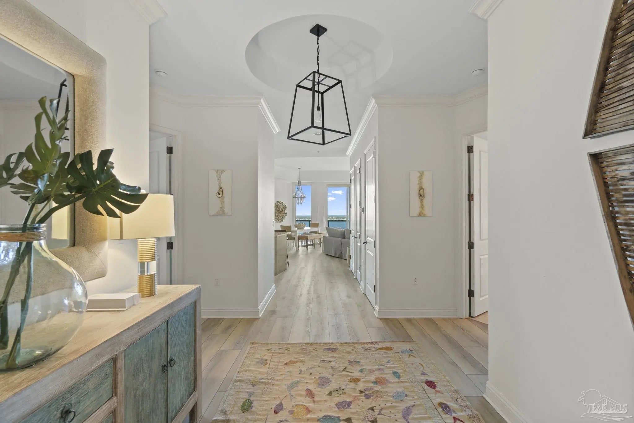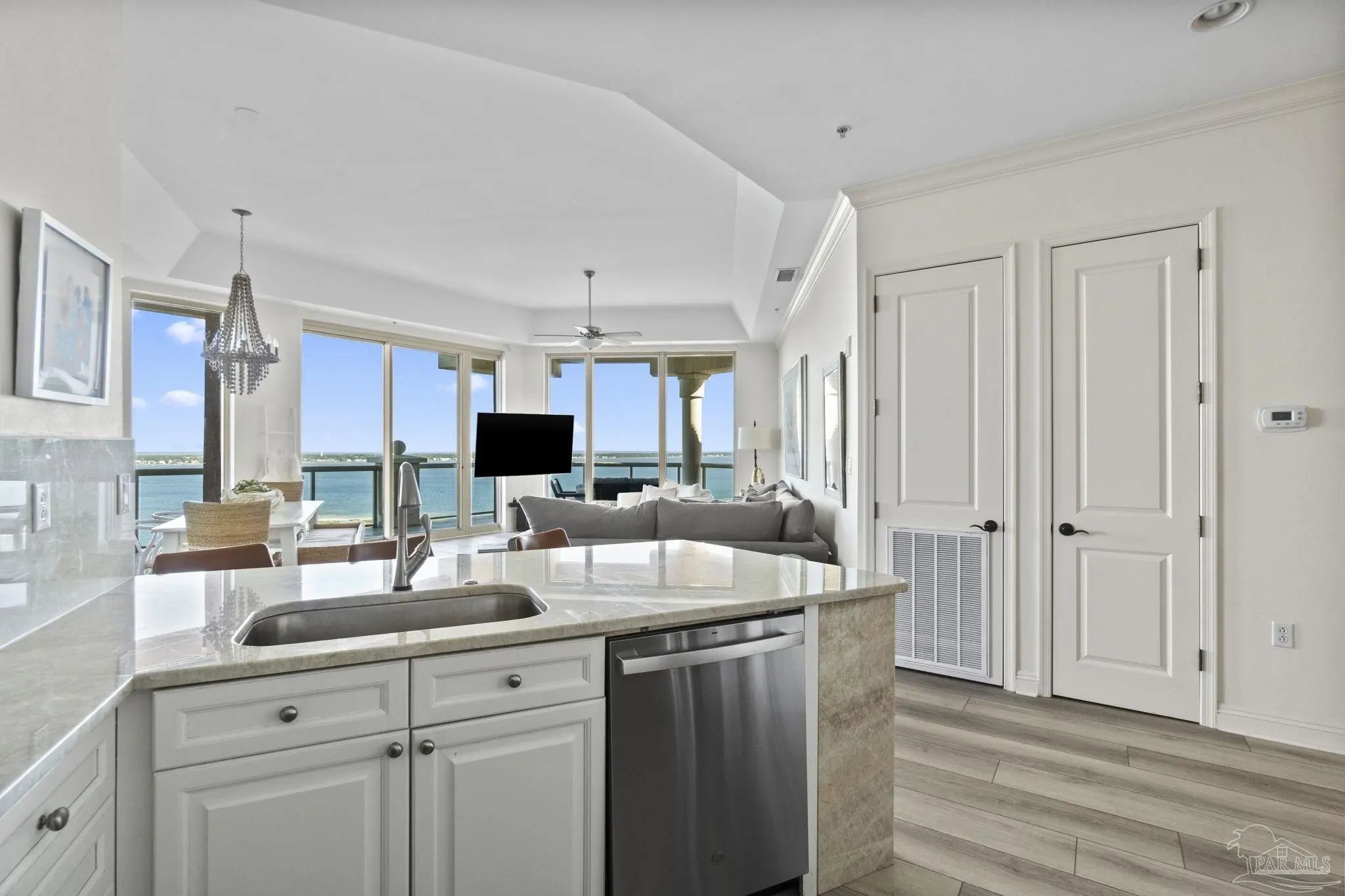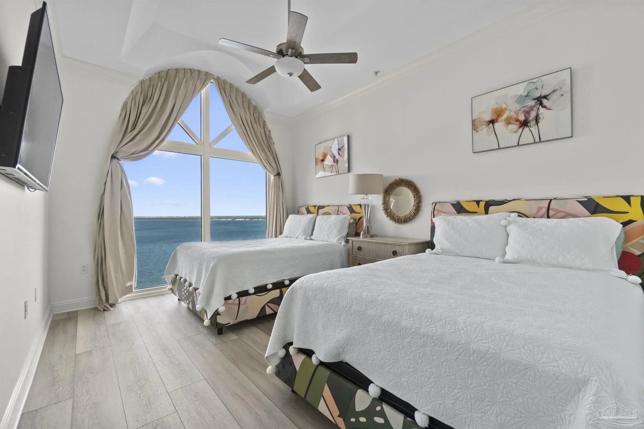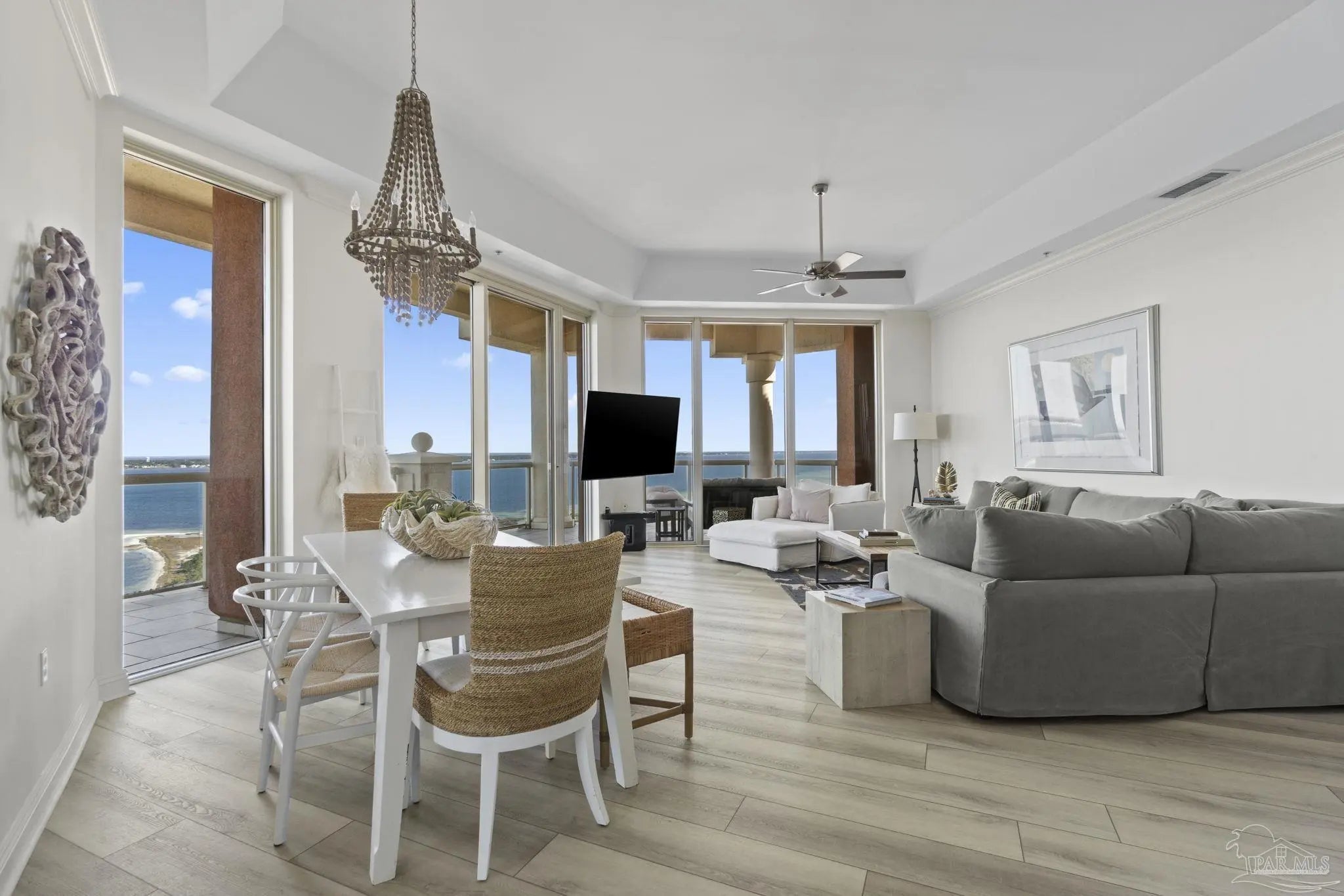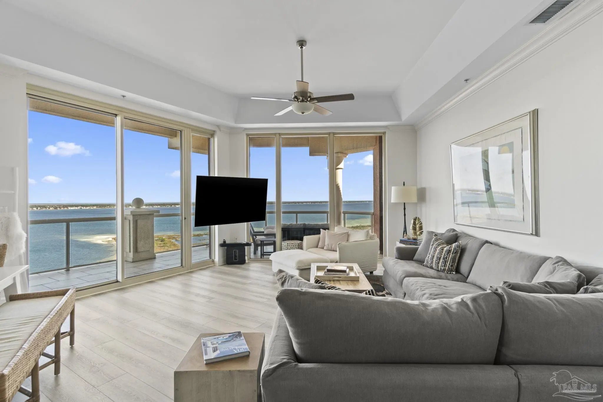A rare penthouse residence at Portofino Island Resort with sweeping sound and Gulf views, just steps from the beach. Unit 2101 offers exceptional space, abundant natural light, and panoramic water views from nearly every room. This spacious 3 bedroom, 3.5 bath home features an expansive living area surrounded by water views and a wraparound balcony along the Gulf side of the unit, complete with a built-in grill and full views of the beach and shoreline beyond. The primary suite includes direct balcony access and water views, while each guest bedroom offers its own en suite bath for comfort and privacy. Portofino Island Resort delivers a true resort lifestyle with multiple pools, a full-service spa, highly rated on-site dining, a state-of-the-art fitness center with access to personal trainers, tennis courts, and a full calendar of seasonal activities. Outdoor adventures include water rentals ranging from paddleboards and sailboats to jet skis, as well as bike rentals and dolphin cruises. Penthouse opportunities with this level of space, light, and dual water views are rarely available. An exceptional offering at one of Pensacola Beach’s most sought-after communities. This penthouse residence is perfect for a primary home, second home, or long term rental - short term rentals are not allowed on this floor.