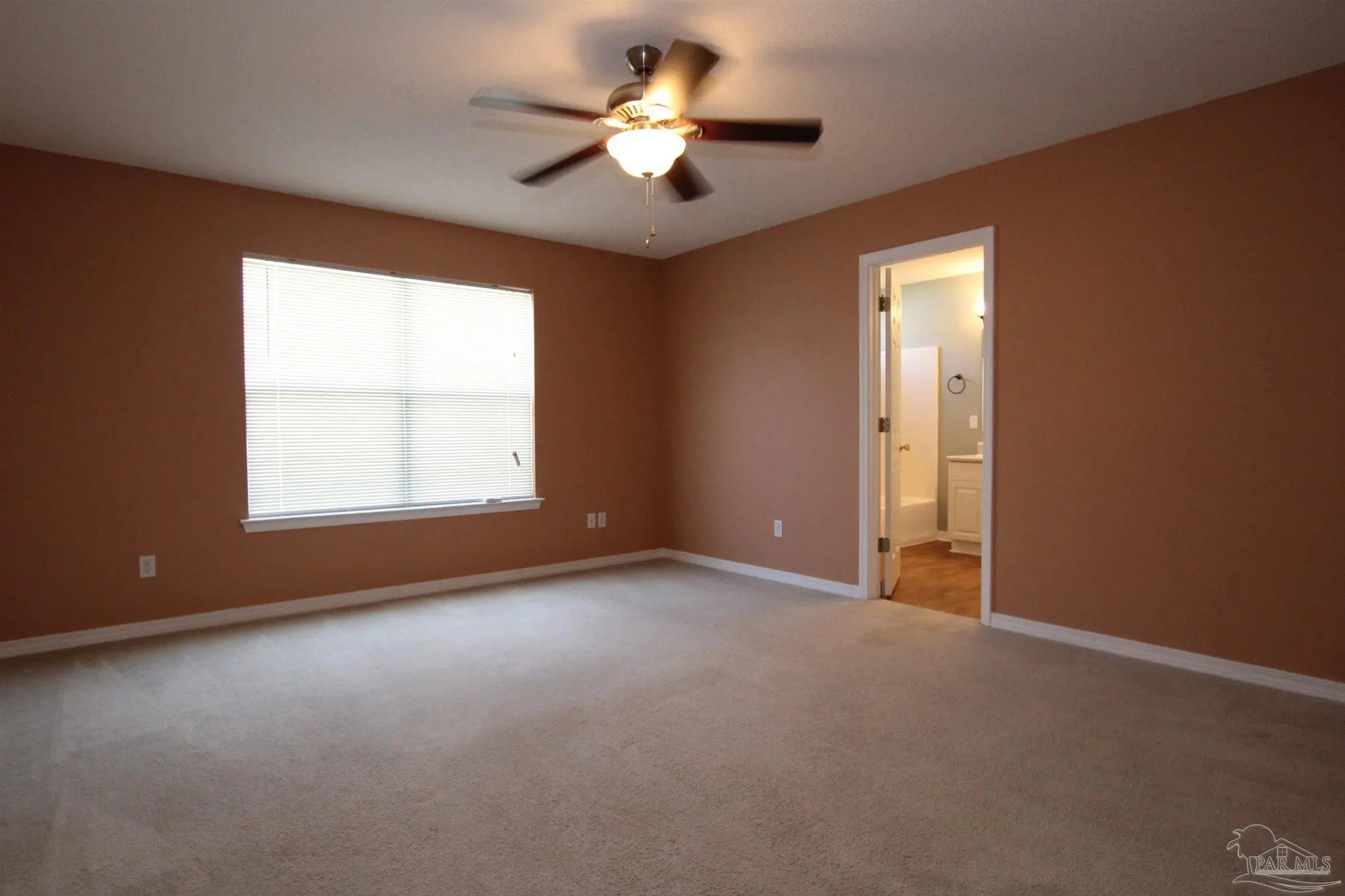 Spacious 3-bedroom, 2-bath brick home located in Southwest Pensacola, conveniently situated off Gulf Beach Hwy and just minutes from NAS Pensacola, Perdido Key beaches, and surrounding attractions. This home offers over 1,600 square feet of living space with an open-concept layout featuring vaulted ceilings, bay windows, and wood-look flooring throughout the main living areas. The kitchen includes a refrigerator, stove, dishwasher, pantry, and center island, providing ample storage and workspace. The primary bedroom features a walk-in closet, double vanity, private water closet, and a garden tub/shower combination. Two additional bedrooms share a full hall bathroom with a tub/shower combo. Additional features include an interior laundry room with washer and dryer hookups, a two-car garage, and sliding glass doors that open to an open patio and partially fenced backyard. The home is equipped with gas heat and a gas water heater. Pets may be considered with owner approval and a $250 non-refundable pet fee per pet (aggressive breeds not considered). Residents are required to have renter liability insurance, which may be added for $11.95/month, or may opt into the Resident Benefits Package (RBP) for $45/month, which includes renter liability insurance, HVAC air filter delivery, and on-demand pest control. More details are available in the application.