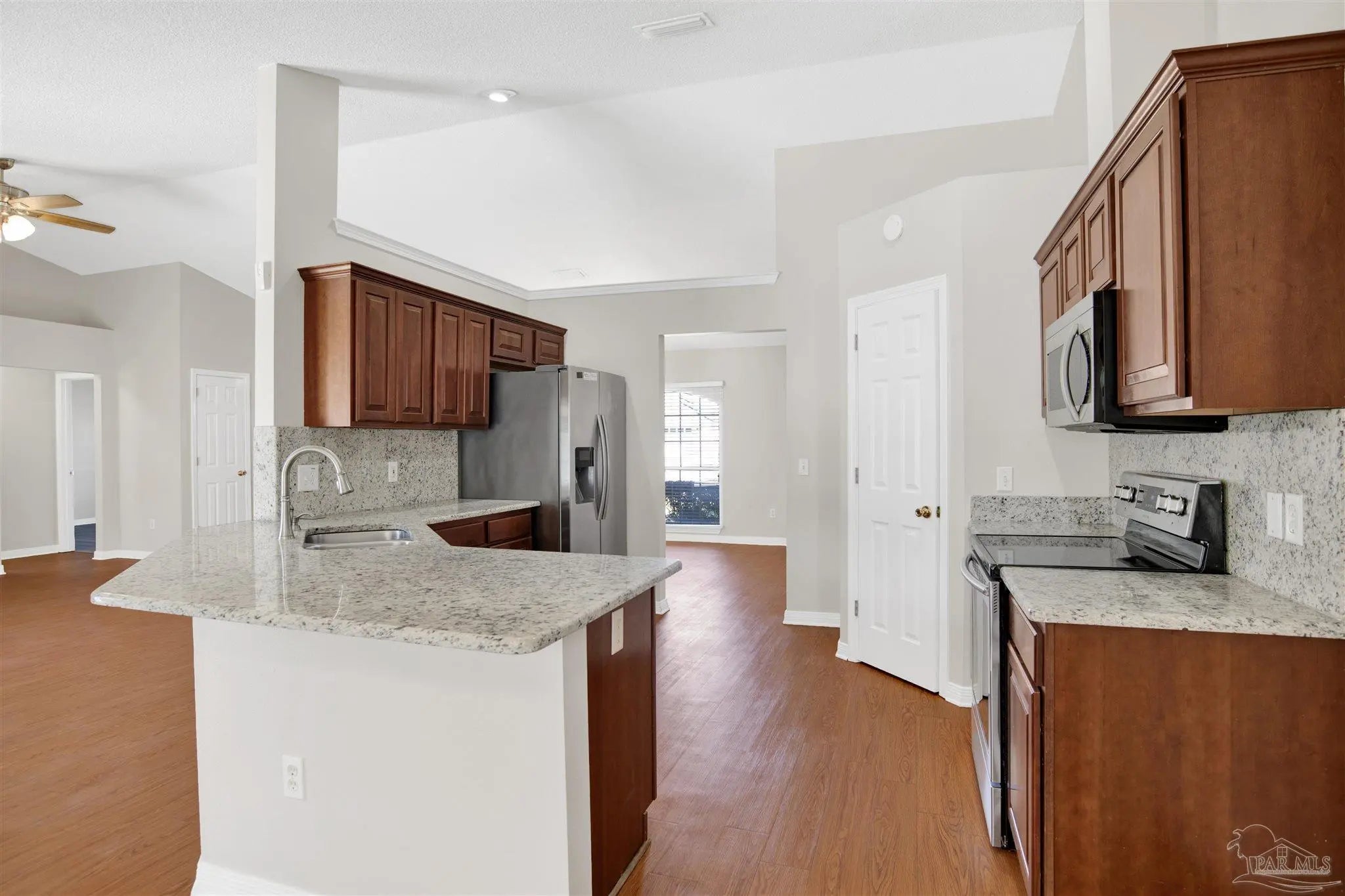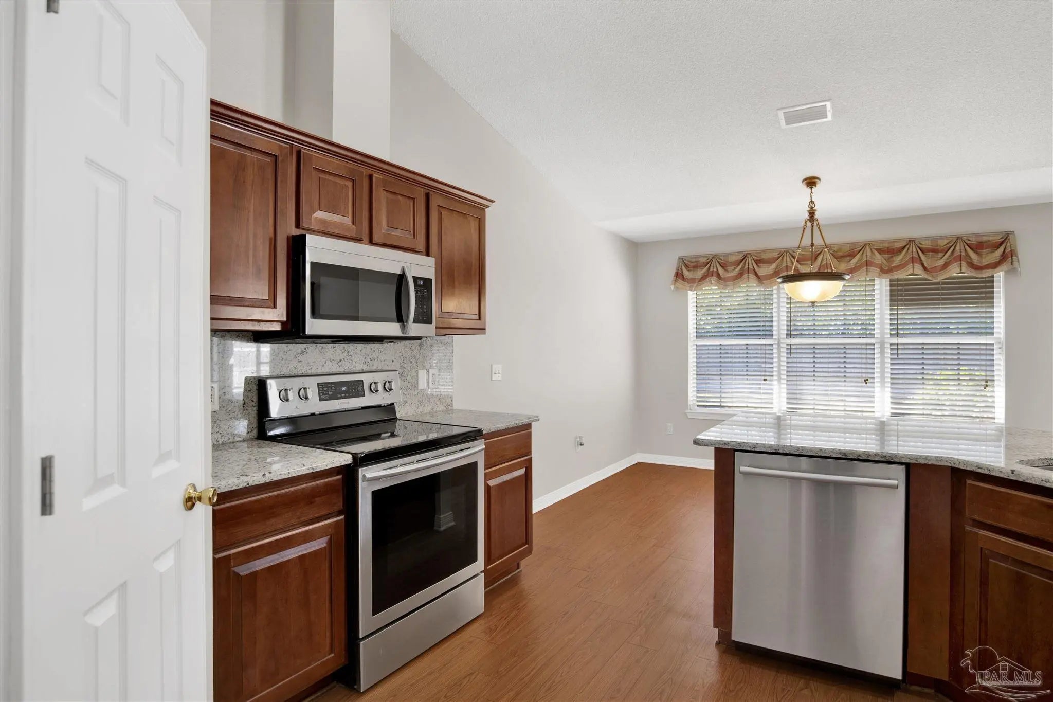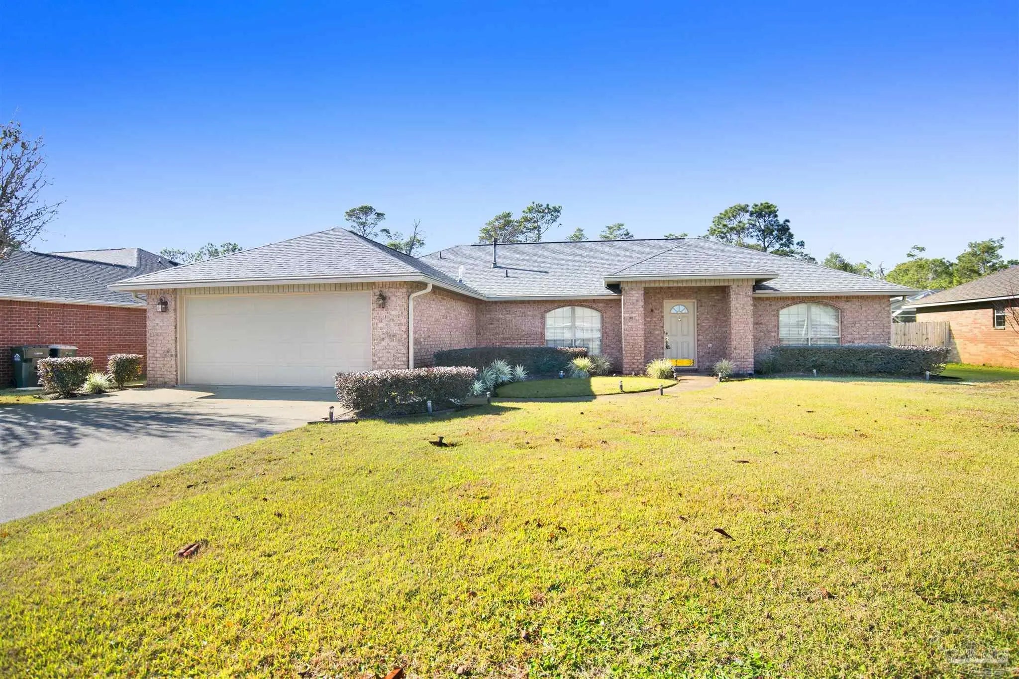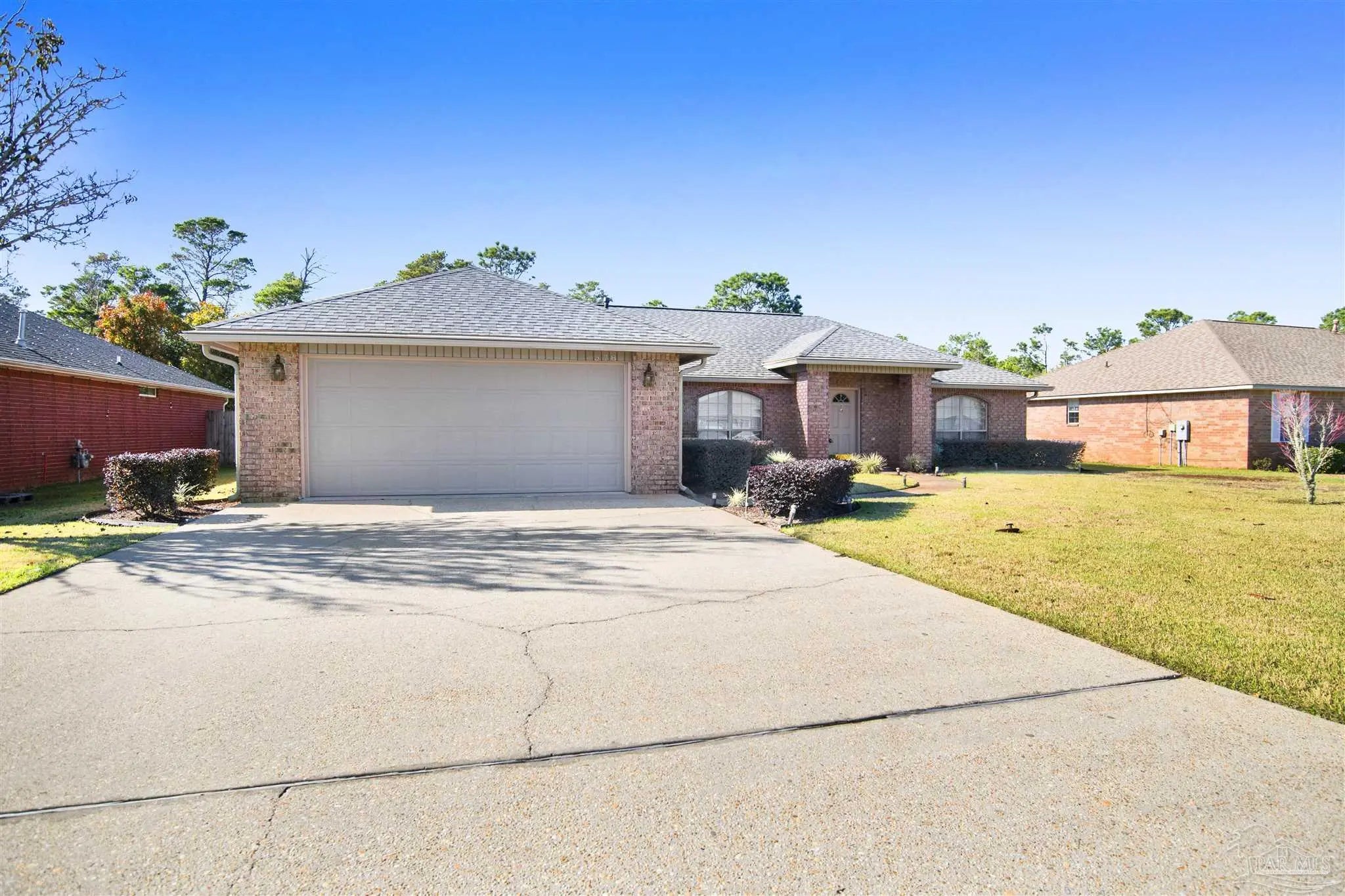 Welcome home to this beautiful 3BD/2BA all-brick residence located in the desirable Emerald Shores community near the back gate of NAS Pensacola! This home combines comfort, convenience, and modern upgradesjust minutes from the beach, shopping, and dining. Step inside to find a spacious split-bedroom layout featuring a large primary suite with a walk-in closet and luxurious walk-in tub. The bright, open Great Room offers cathedral ceilings, a gas fireplace, and stunning wood floors that flow throughout the main living spaces. The kitchen is a chefs dreamcomplete with granite countertops, tile backsplash, stainless steel appliances, a large corner pantry, breakfast bar, and a cozy breakfast nook that opens into the Great Room. Freshly painted interiors and professionally cleaned air ducts make this home move-in ready. The backyard is fully fenced and features an open patio overlooking a wooded area, perfect for grilling, entertaining, or simply relaxing. Additional features include a tankless hot water heater, security system, sprinkler system on a well, and beautiful wood flooring throughout most of the home. This property is pet friendly. No washer and dryer provided but hook ups are located inside the home. Property will be held off market up to 14 days with Property Holding Fee with approved app. Lease Prep Fee of $75 is due prior to move in. Approved pets require $400 pet fee per pet. Renters insurance is required.