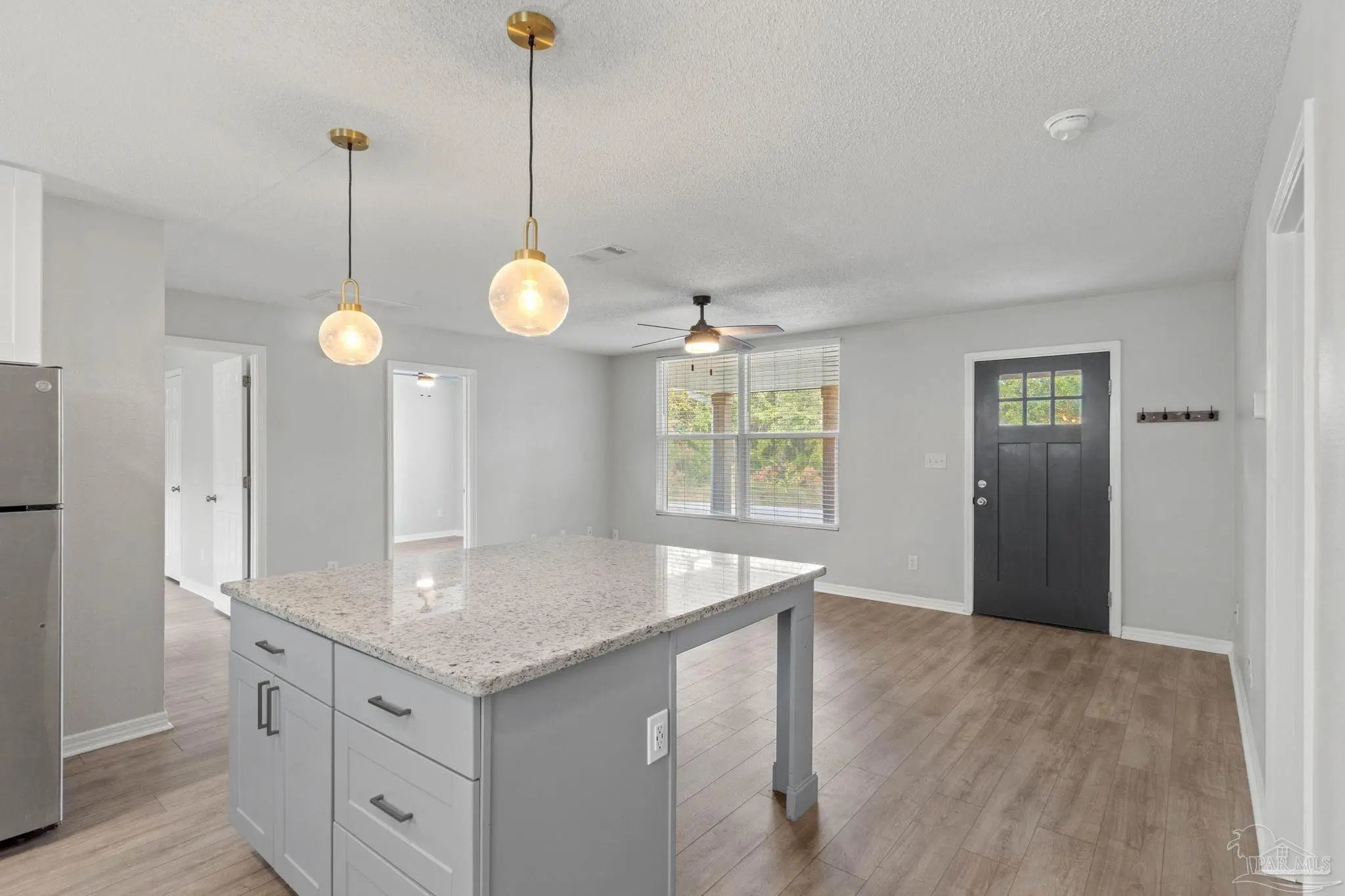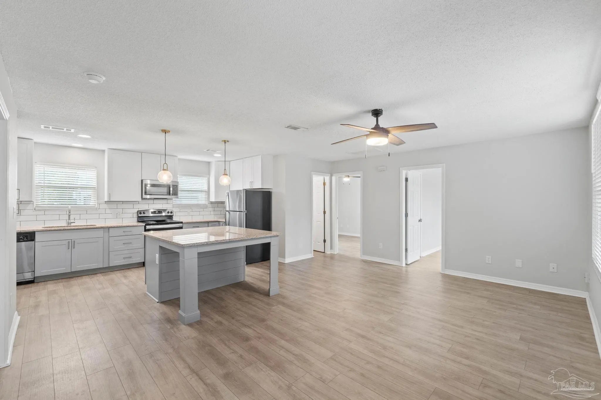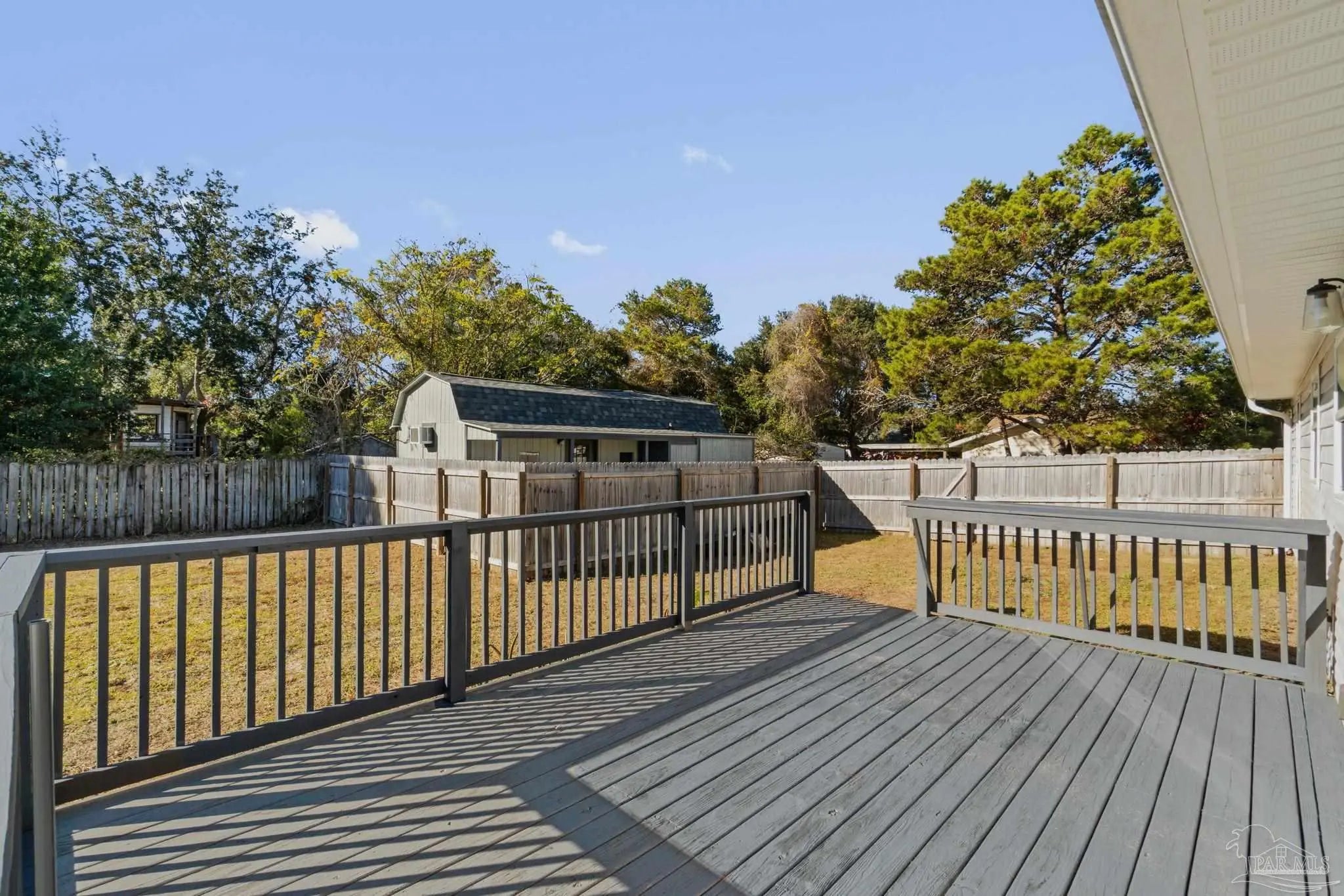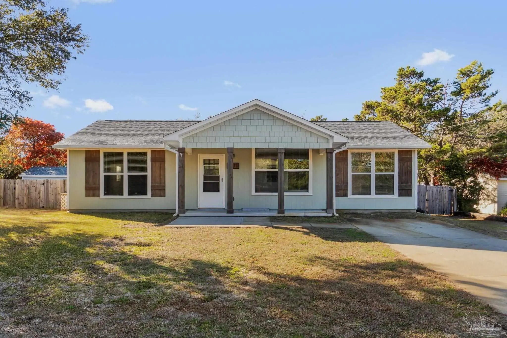 Welcome to 1671 Tuscon Court, a beautifully updated property located in Gulf Breeze. This 3-bedroom, 2-bath residence features modern finishes, functional living space, & a rare, detached shop that adds exceptional versatility rarely found at this price point. The home features a bright, open layout with an upgraded kitchen showcasing granite countertops, stainless steel appliances, & a large center island with room for seating, perfect for casual dining & entertaining. Contemporary cabinetry & finishes complement the space, & the washer & dryer convey, making this home truly move-in ready. The standout feature of this property is the detached shop with power, complete with its own bathroom & kitchenette. This space is ideal for a man cave, she-shed, workshop, home office, or hobby space. Enjoy the freedom of no HOA & a convenient location close to the Woodlawn Beach boat ramp & the new Soundside High School.