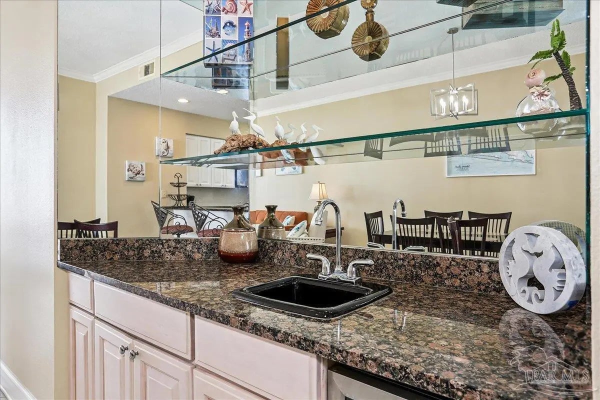 - Baseboards, Ceiling Fan(s), Crown Molding, High Ceilings, Wet Bar